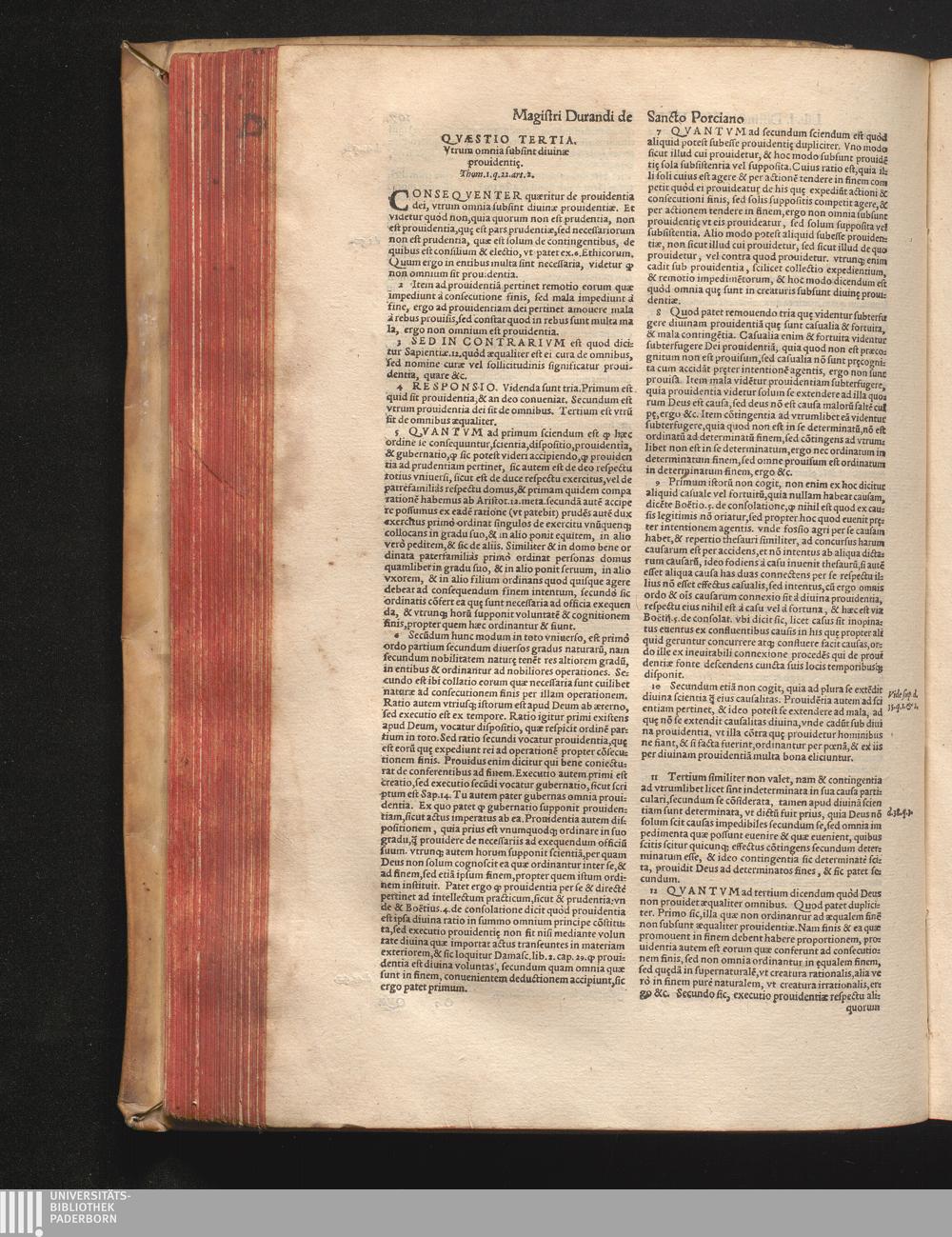 DN. DVRANDI|| à Sancto Portiano, in Senten=||tias Theologicas Petri Lombardi|| Commentariorum libri|| quatuor.|| / Primùm quidem per Nicolaum à Martimbos, eximium Nauarrensis|| Collegij Theologum, nunc verò denuo per alios quosdam|| non inferioris notæ Doctores quanta fieri po-||tuit cura diligentiáque emendati.|| Vná cum Auctoris Vita, & copiosissimo|| decisionum omnium|| Indice.||