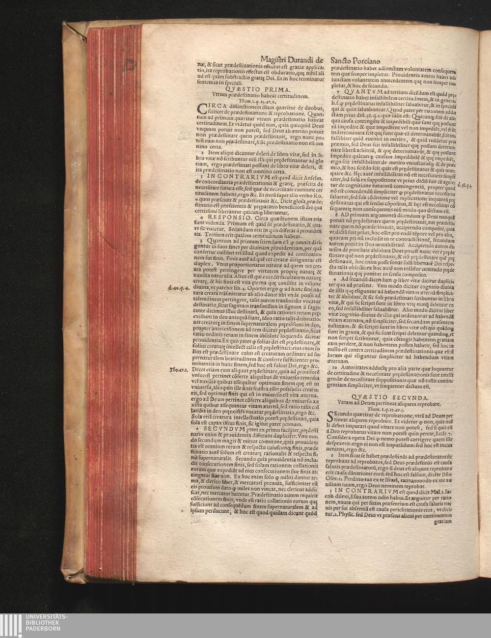 DN. DVRANDI|| à Sancto Portiano, in Senten=||tias Theologicas Petri Lombardi|| Commentariorum libri|| quatuor.|| / Primùm quidem per Nicolaum à Martimbos, eximium Nauarrensis|| Collegij Theologum, nunc verò denuo per alios quosdam|| non inferioris notæ Doctores quanta fieri po-||tuit cura diligentiáque emendati.|| Vná cum Auctoris Vita, & copiosissimo|| decisionum omnium|| Indice.||