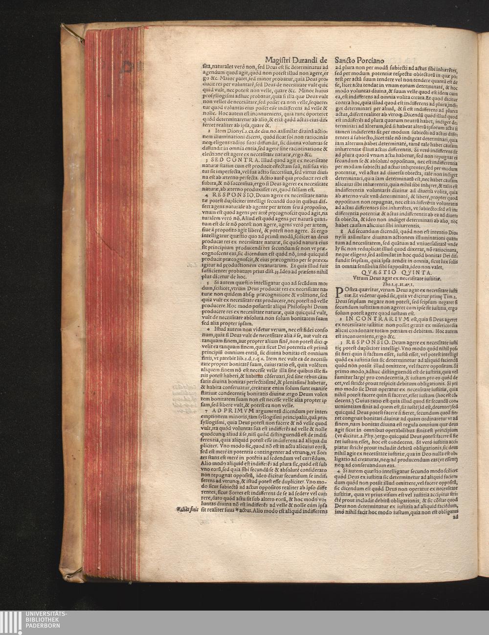 DN. DVRANDI|| à Sancto Portiano, in Senten=||tias Theologicas Petri Lombardi|| Commentariorum libri|| quatuor.|| / Primùm quidem per Nicolaum à Martimbos, eximium Nauarrensis|| Collegij Theologum, nunc verò denuo per alios quosdam|| non inferioris notæ Doctores quanta fieri po-||tuit cura diligentiáque emendati.|| Vná cum Auctoris Vita, & copiosissimo|| decisionum omnium|| Indice.||