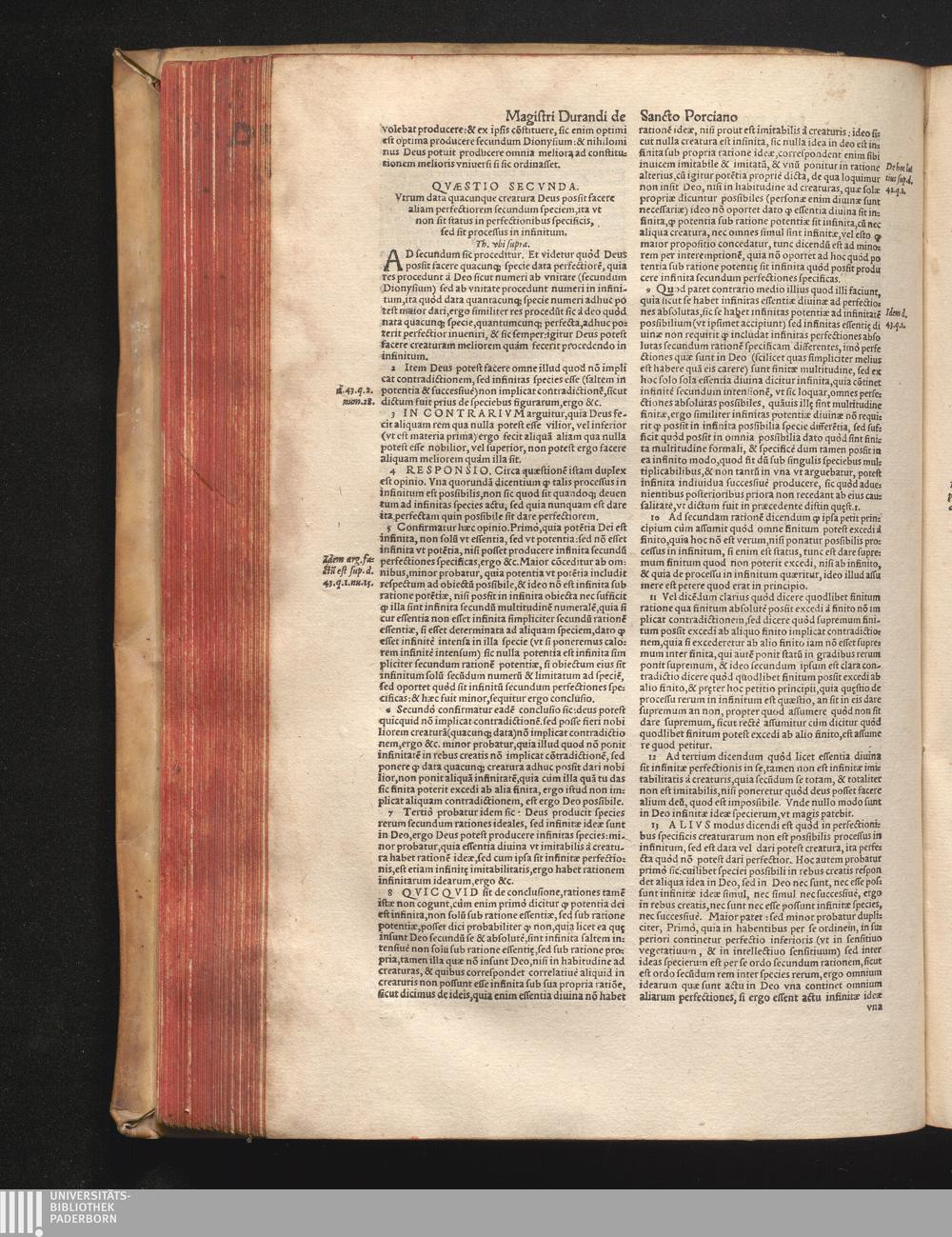 DN. DVRANDI|| à Sancto Portiano, in Senten=||tias Theologicas Petri Lombardi|| Commentariorum libri|| quatuor.|| / Primùm quidem per Nicolaum à Martimbos, eximium Nauarrensis|| Collegij Theologum, nunc verò denuo per alios quosdam|| non inferioris notæ Doctores quanta fieri po-||tuit cura diligentiáque emendati.|| Vná cum Auctoris Vita, & copiosissimo|| decisionum omnium|| Indice.||