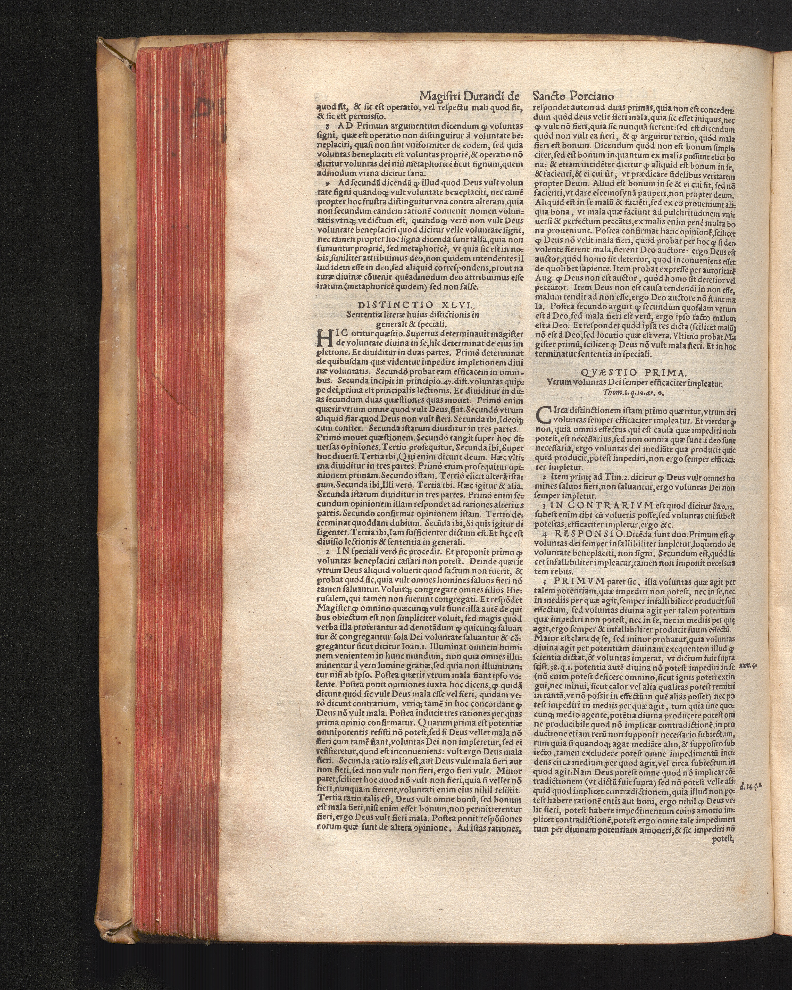 DN. DVRANDI|| à Sancto Portiano, in Senten=||tias Theologicas Petri Lombardi|| Commentariorum libri|| quatuor.|| / Primùm quidem per Nicolaum à Martimbos, eximium Nauarrensis|| Collegij Theologum, nunc verò denuo per alios quosdam|| non inferioris notæ Doctores quanta fieri po-||tuit cura diligentiáque emendati.|| Vná cum Auctoris Vita, & copiosissimo|| decisionum omnium|| Indice.||