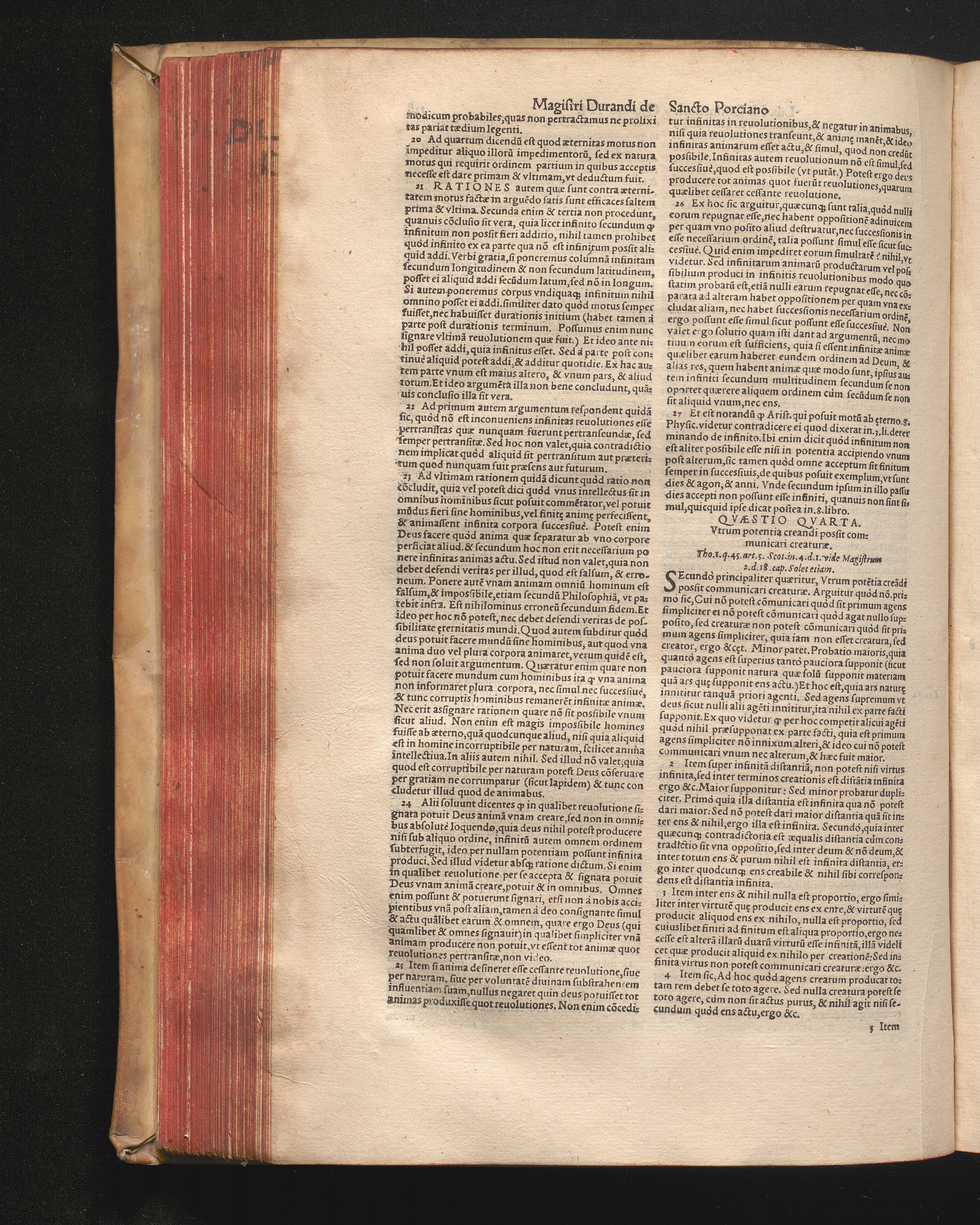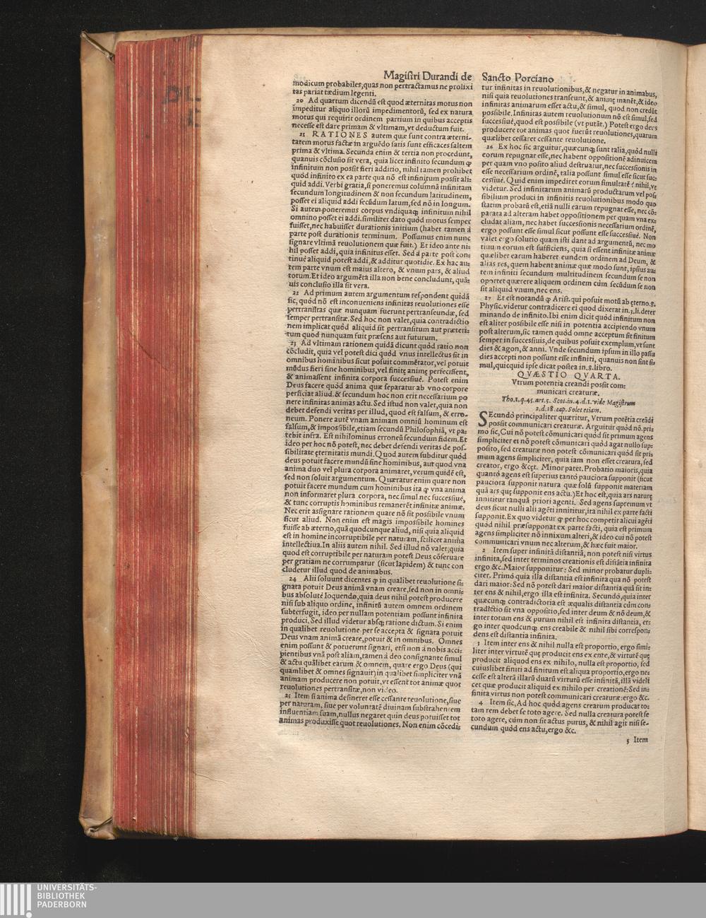 DN. DVRANDI|| à Sancto Portiano, in Senten=||tias Theologicas Petri Lombardi|| Commentariorum libri|| quatuor.|| / Primùm quidem per Nicolaum à Martimbos, eximium Nauarrensis|| Collegij Theologum, nunc verò denuo per alios quosdam|| non inferioris notæ Doctores quanta fieri po-||tuit cura diligentiáque emendati.|| Vná cum Auctoris Vita, & copiosissimo|| decisionum omnium|| Indice.||
