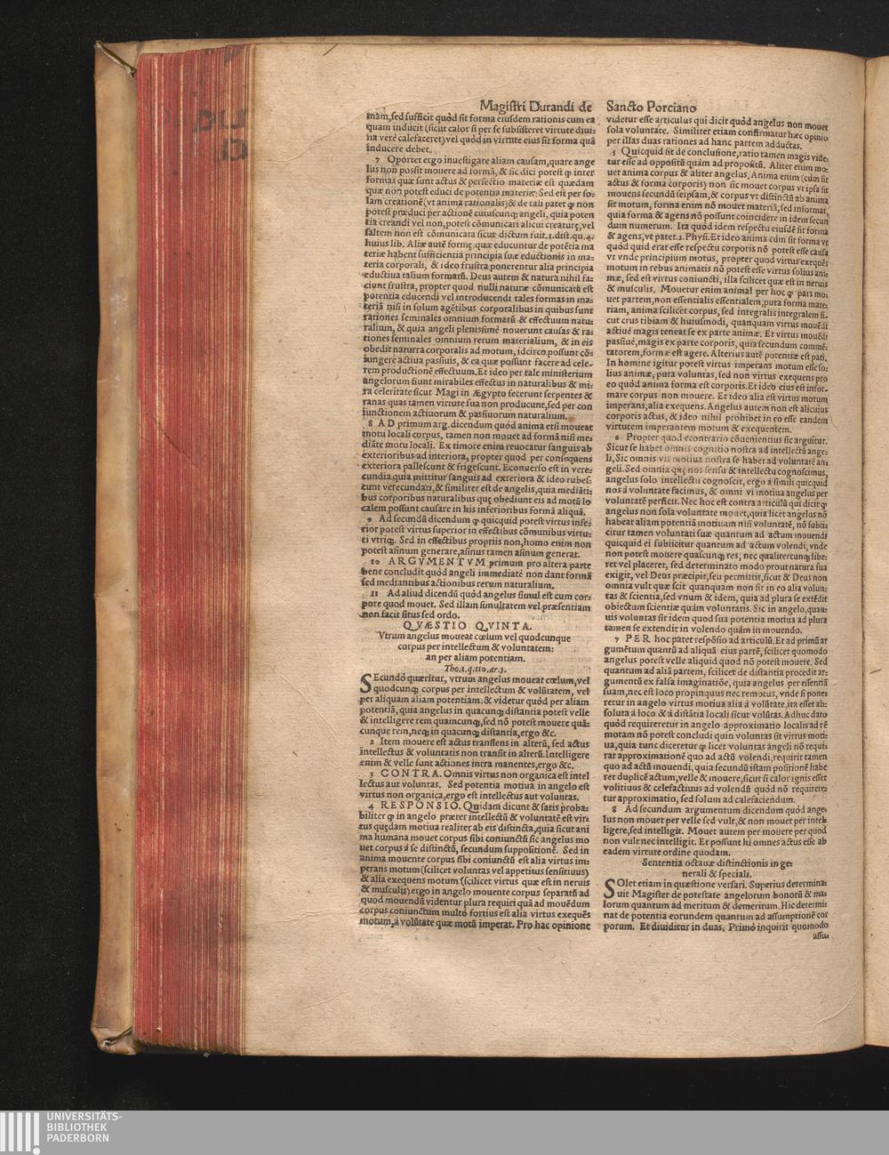 DN. DVRANDI|| à Sancto Portiano, in Senten=||tias Theologicas Petri Lombardi|| Commentariorum libri|| quatuor.|| / Primùm quidem per Nicolaum à Martimbos, eximium Nauarrensis|| Collegij Theologum, nunc verò denuo per alios quosdam|| non inferioris notæ Doctores quanta fieri po-||tuit cura diligentiáque emendati.|| Vná cum Auctoris Vita, & copiosissimo|| decisionum omnium|| Indice.||