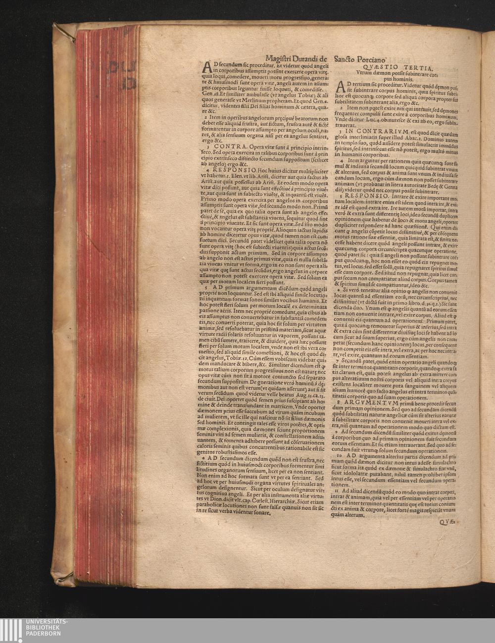 DN. DVRANDI|| à Sancto Portiano, in Senten=||tias Theologicas Petri Lombardi|| Commentariorum libri|| quatuor.|| / Primùm quidem per Nicolaum à Martimbos, eximium Nauarrensis|| Collegij Theologum, nunc verò denuo per alios quosdam|| non inferioris notæ Doctores quanta fieri po-||tuit cura diligentiáque emendati.|| Vná cum Auctoris Vita, & copiosissimo|| decisionum omnium|| Indice.||