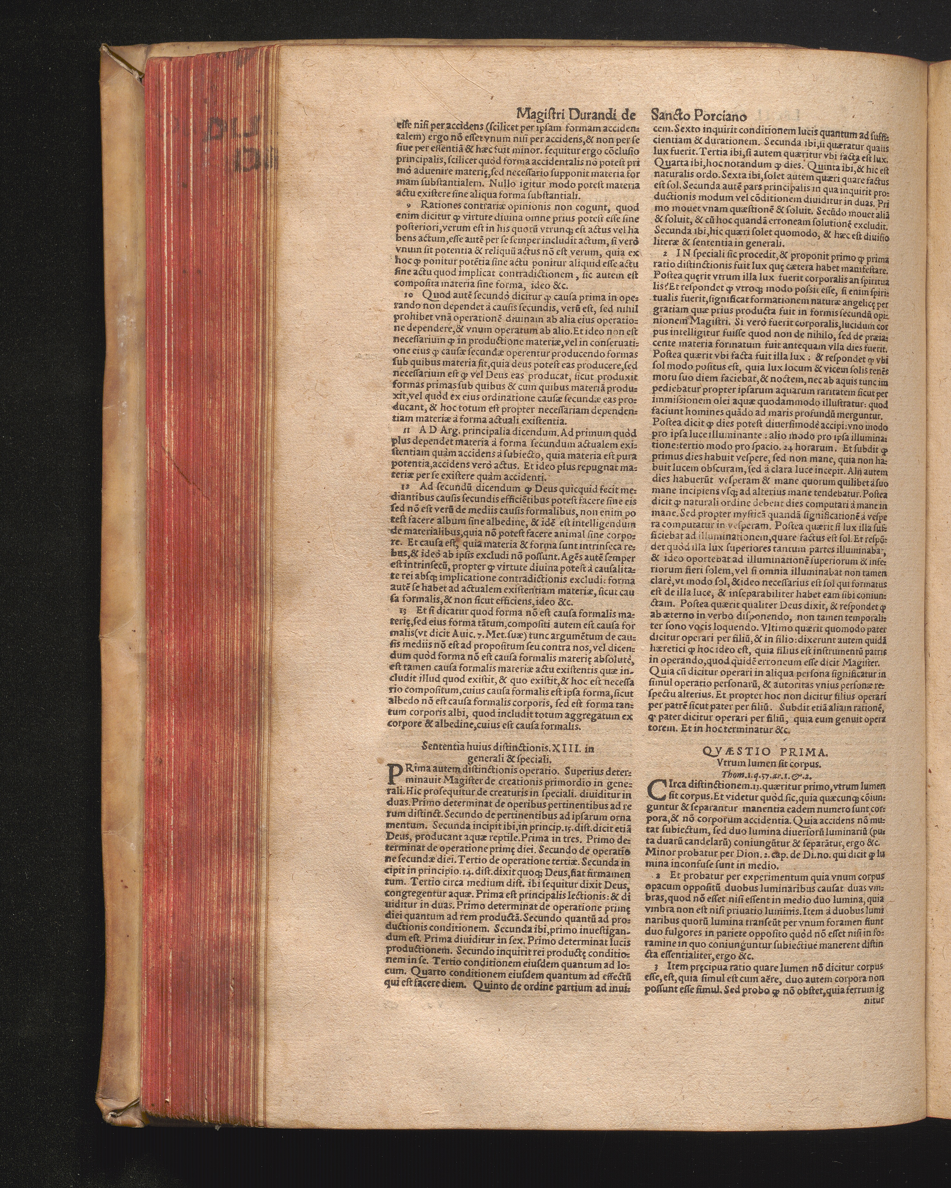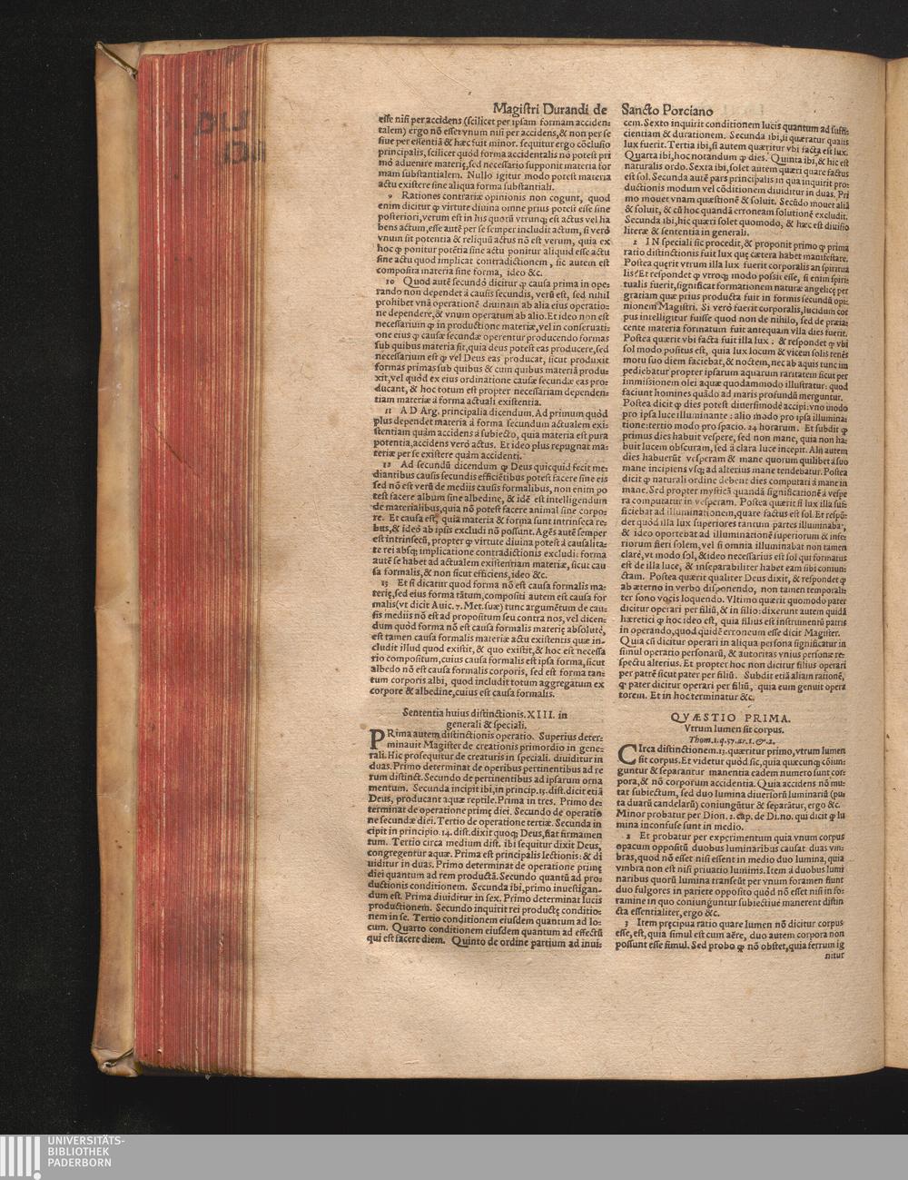 DN. DVRANDI|| à Sancto Portiano, in Senten=||tias Theologicas Petri Lombardi|| Commentariorum libri|| quatuor.|| / Primùm quidem per Nicolaum à Martimbos, eximium Nauarrensis|| Collegij Theologum, nunc verò denuo per alios quosdam|| non inferioris notæ Doctores quanta fieri po-||tuit cura diligentiáque emendati.|| Vná cum Auctoris Vita, & copiosissimo|| decisionum omnium|| Indice.||