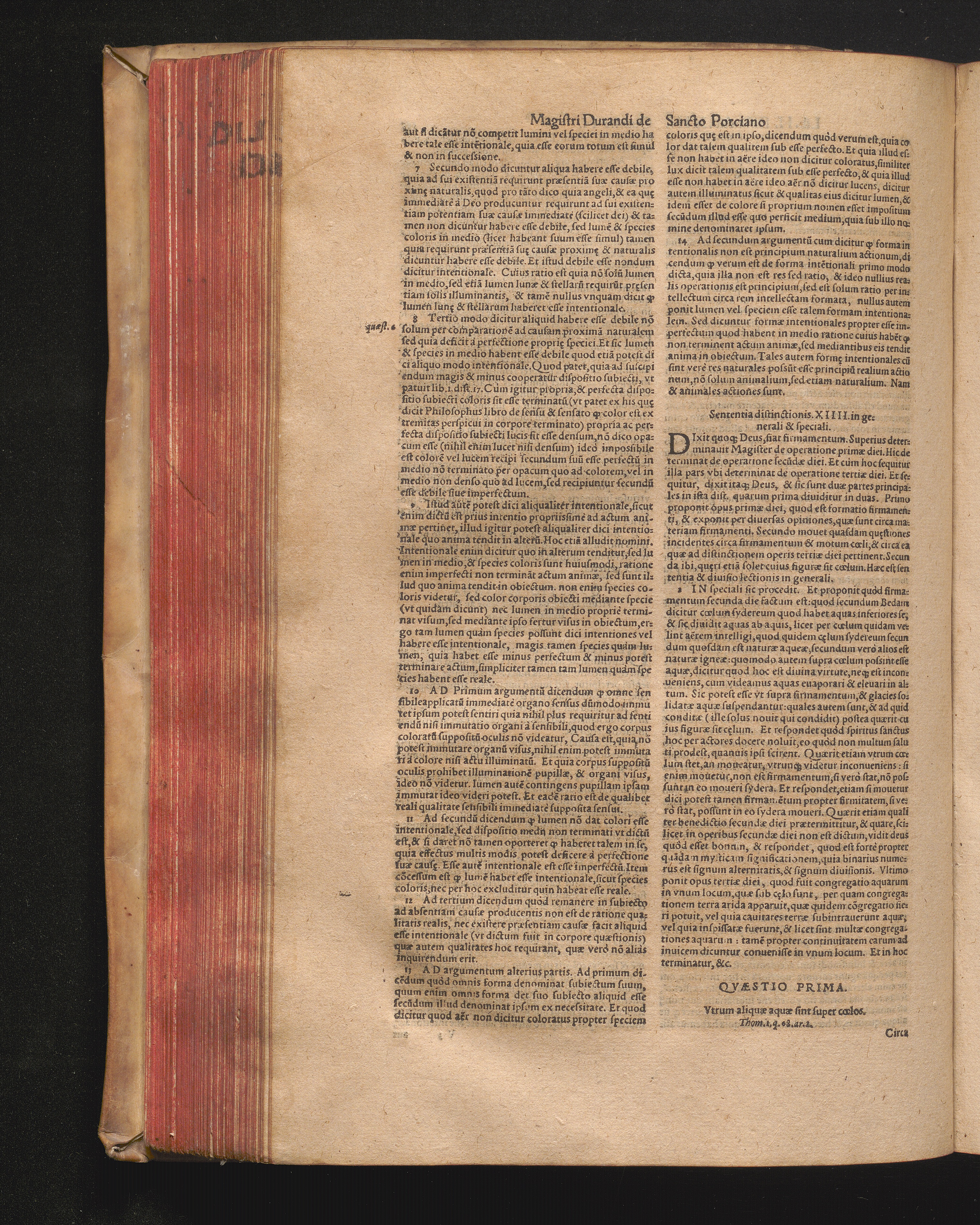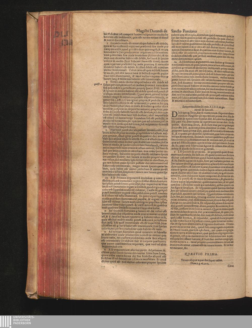 DN. DVRANDI|| à Sancto Portiano, in Senten=||tias Theologicas Petri Lombardi|| Commentariorum libri|| quatuor.|| / Primùm quidem per Nicolaum à Martimbos, eximium Nauarrensis|| Collegij Theologum, nunc verò denuo per alios quosdam|| non inferioris notæ Doctores quanta fieri po-||tuit cura diligentiáque emendati.|| Vná cum Auctoris Vita, & copiosissimo|| decisionum omnium|| Indice.||