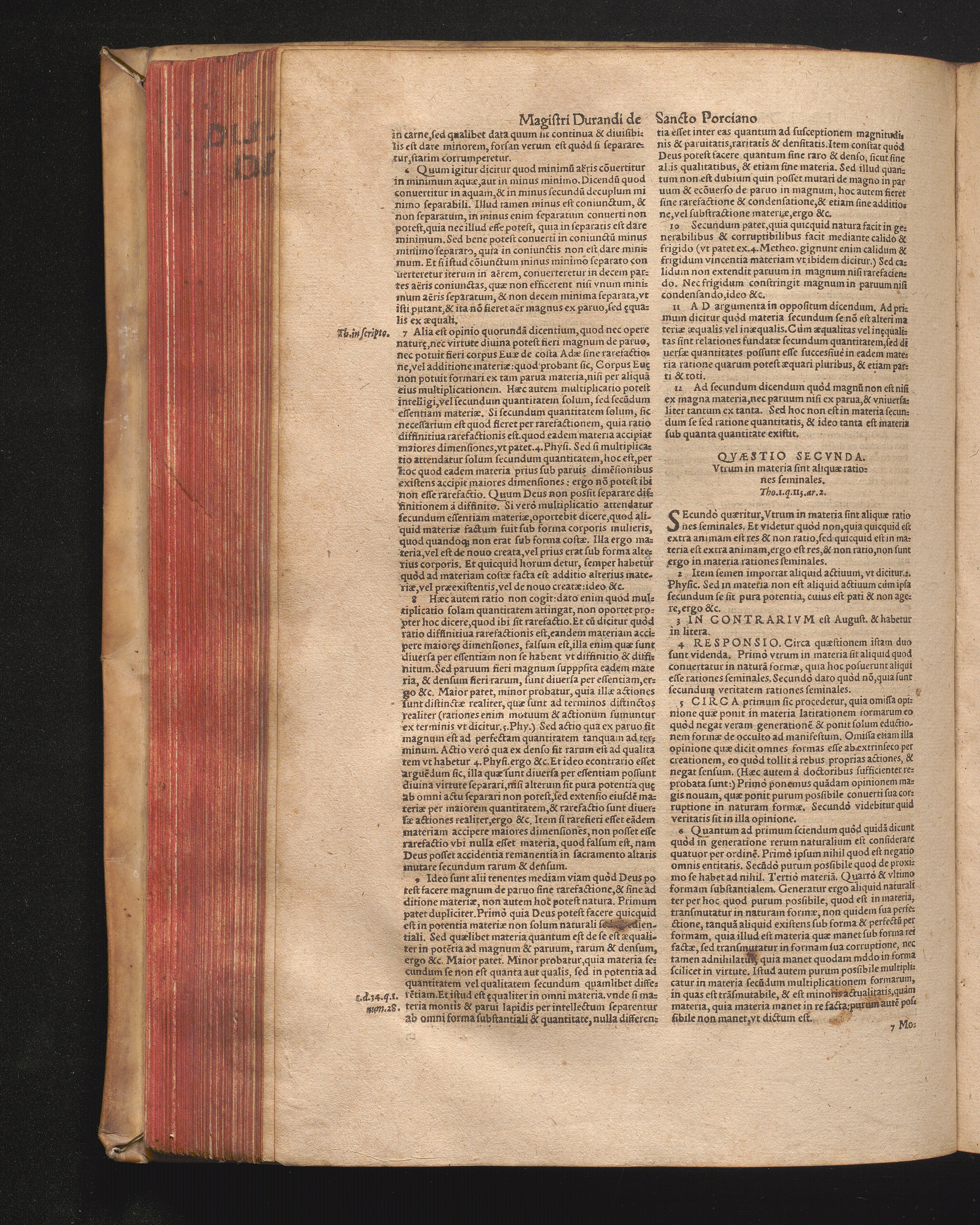 DN. DVRANDI|| à Sancto Portiano, in Senten=||tias Theologicas Petri Lombardi|| Commentariorum libri|| quatuor.|| / Primùm quidem per Nicolaum à Martimbos, eximium Nauarrensis|| Collegij Theologum, nunc verò denuo per alios quosdam|| non inferioris notæ Doctores quanta fieri po-||tuit cura diligentiáque emendati.|| Vná cum Auctoris Vita, & copiosissimo|| decisionum omnium|| Indice.||