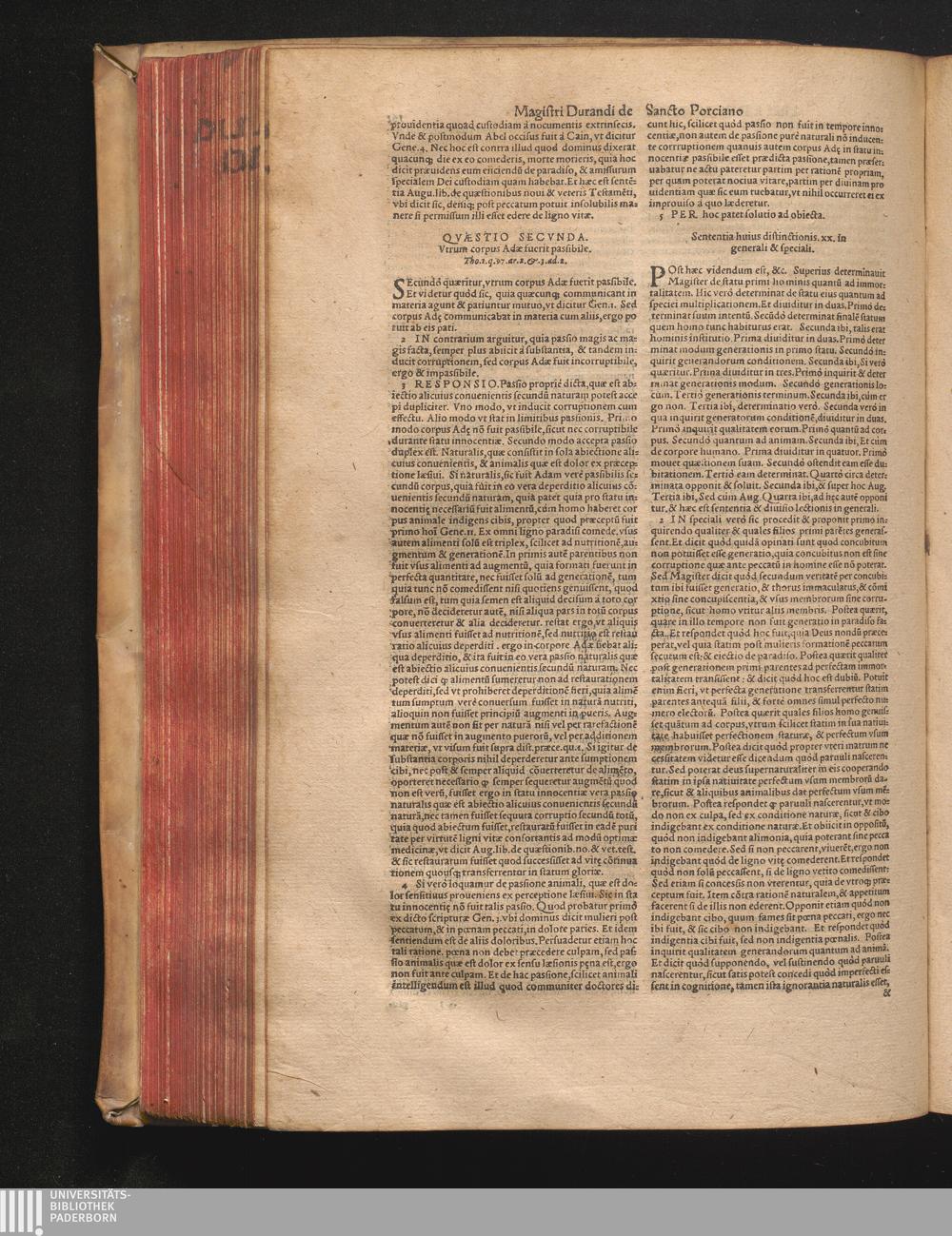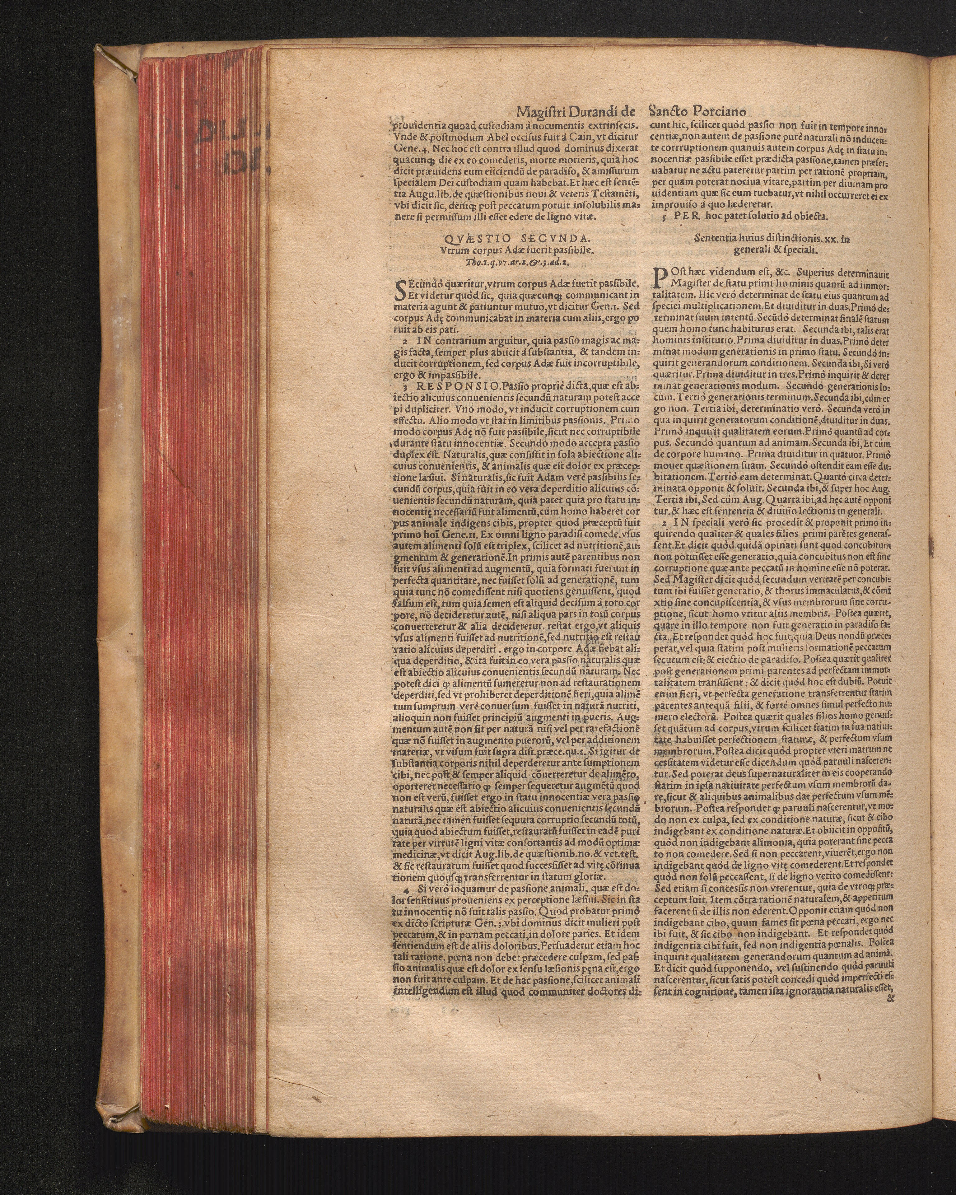 DN. DVRANDI|| à Sancto Portiano, in Senten=||tias Theologicas Petri Lombardi|| Commentariorum libri|| quatuor.|| / Primùm quidem per Nicolaum à Martimbos, eximium Nauarrensis|| Collegij Theologum, nunc verò denuo per alios quosdam|| non inferioris notæ Doctores quanta fieri po-||tuit cura diligentiáque emendati.|| Vná cum Auctoris Vita, & copiosissimo|| decisionum omnium|| Indice.||