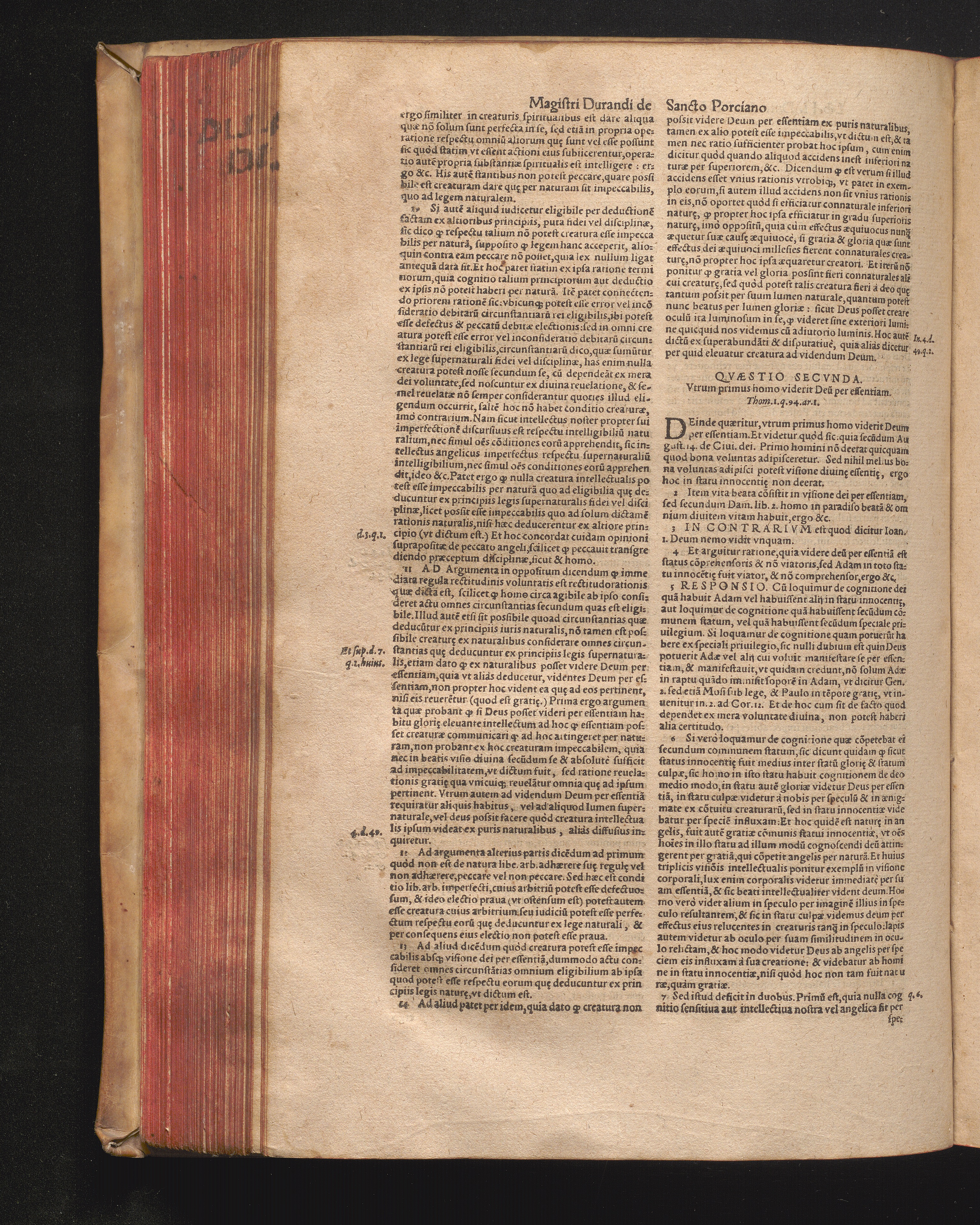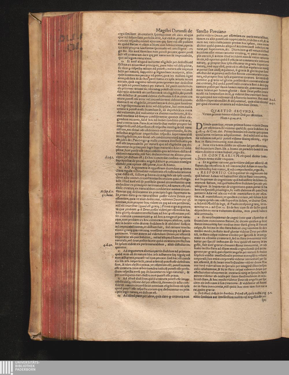 DN. DVRANDI|| à Sancto Portiano, in Senten=||tias Theologicas Petri Lombardi|| Commentariorum libri|| quatuor.|| / Primùm quidem per Nicolaum à Martimbos, eximium Nauarrensis|| Collegij Theologum, nunc verò denuo per alios quosdam|| non inferioris notæ Doctores quanta fieri po-||tuit cura diligentiáque emendati.|| Vná cum Auctoris Vita, & copiosissimo|| decisionum omnium|| Indice.||