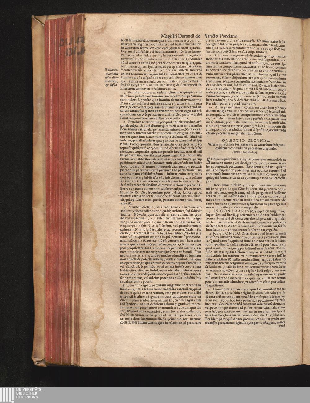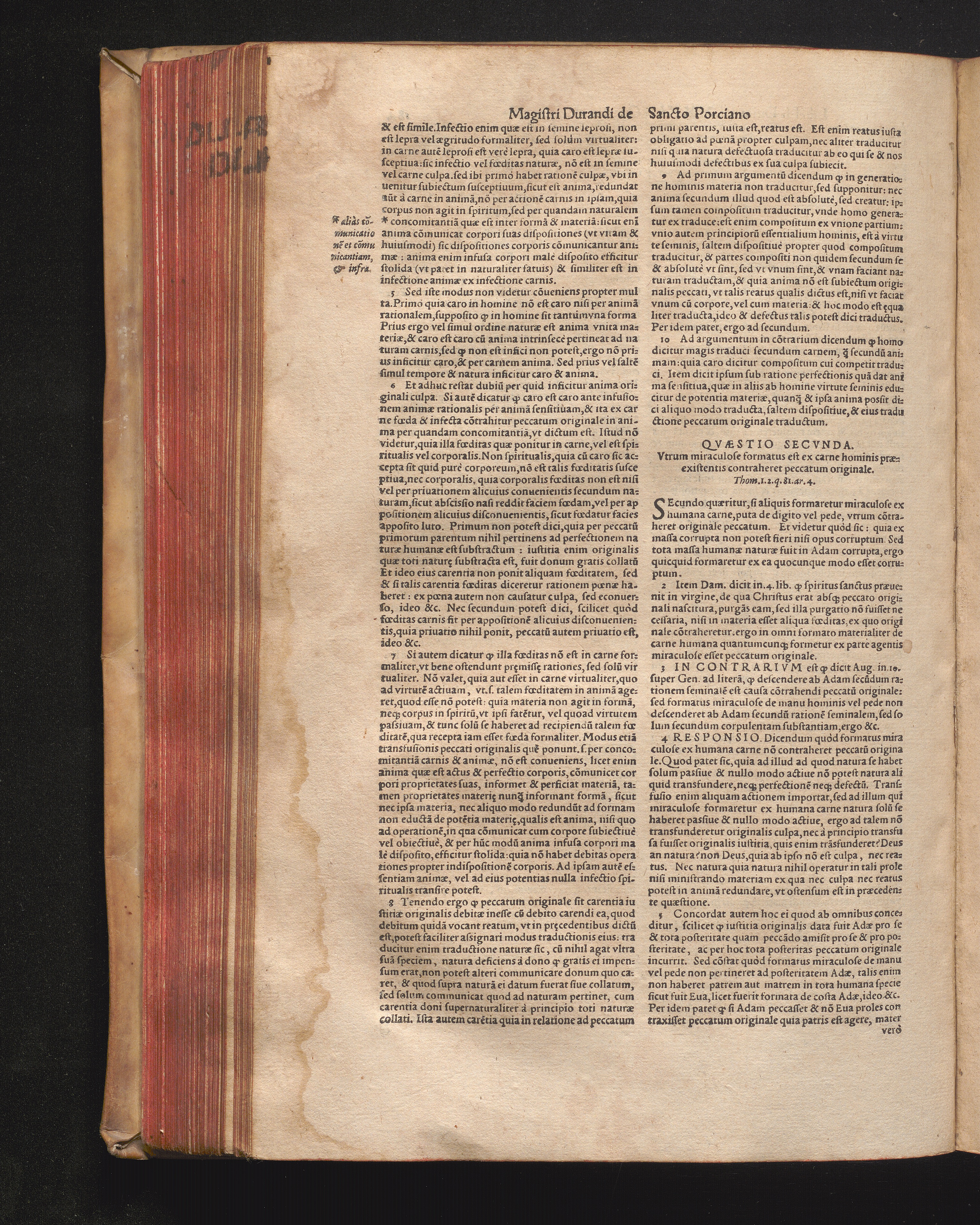 DN. DVRANDI|| à Sancto Portiano, in Senten=||tias Theologicas Petri Lombardi|| Commentariorum libri|| quatuor.|| / Primùm quidem per Nicolaum à Martimbos, eximium Nauarrensis|| Collegij Theologum, nunc verò denuo per alios quosdam|| non inferioris notæ Doctores quanta fieri po-||tuit cura diligentiáque emendati.|| Vná cum Auctoris Vita, & copiosissimo|| decisionum omnium|| Indice.||