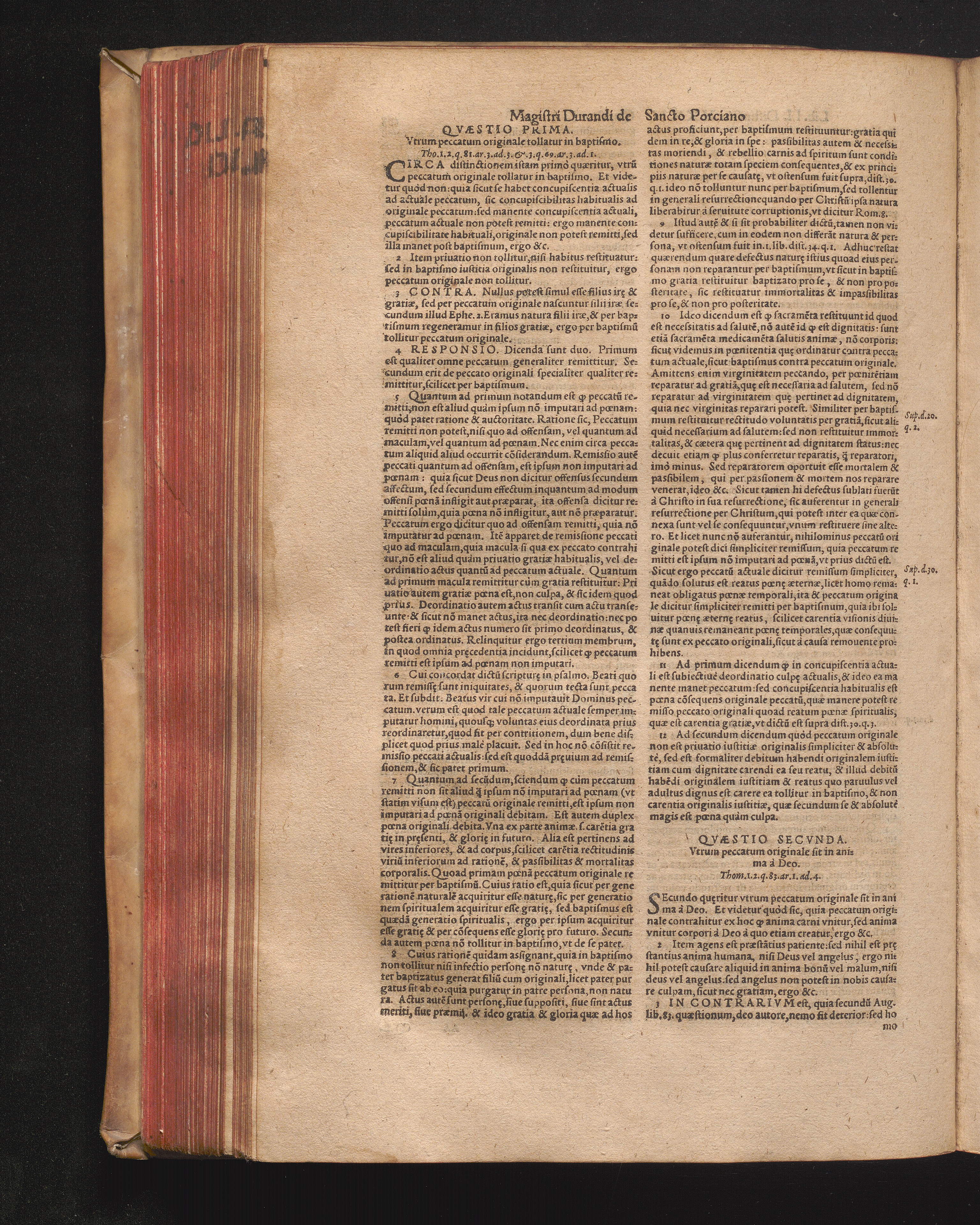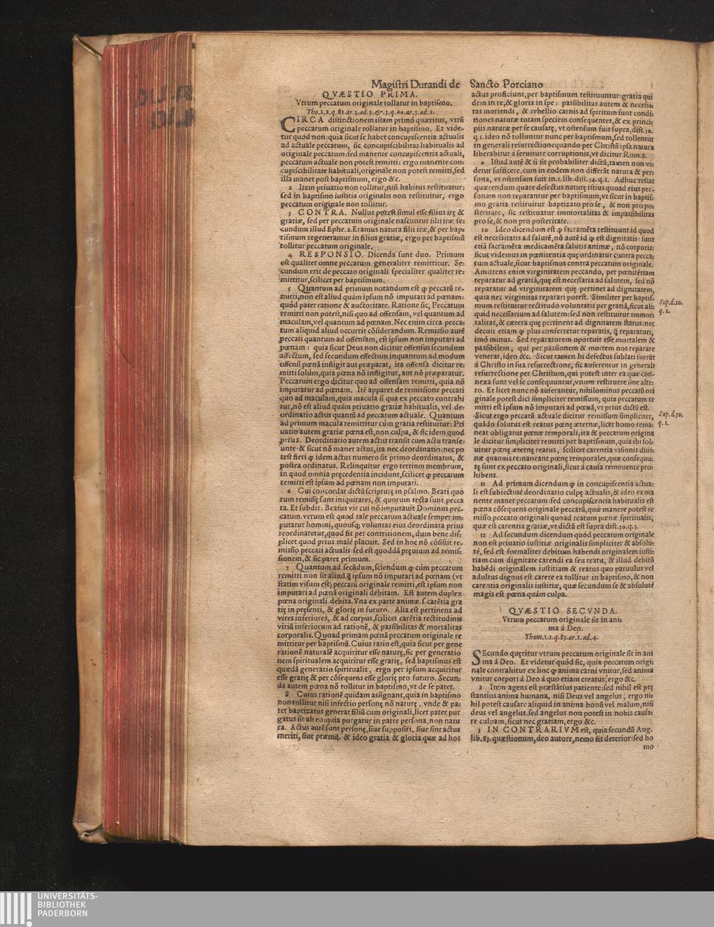 DN. DVRANDI|| à Sancto Portiano, in Senten=||tias Theologicas Petri Lombardi|| Commentariorum libri|| quatuor.|| / Primùm quidem per Nicolaum à Martimbos, eximium Nauarrensis|| Collegij Theologum, nunc verò denuo per alios quosdam|| non inferioris notæ Doctores quanta fieri po-||tuit cura diligentiáque emendati.|| Vná cum Auctoris Vita, & copiosissimo|| decisionum omnium|| Indice.||