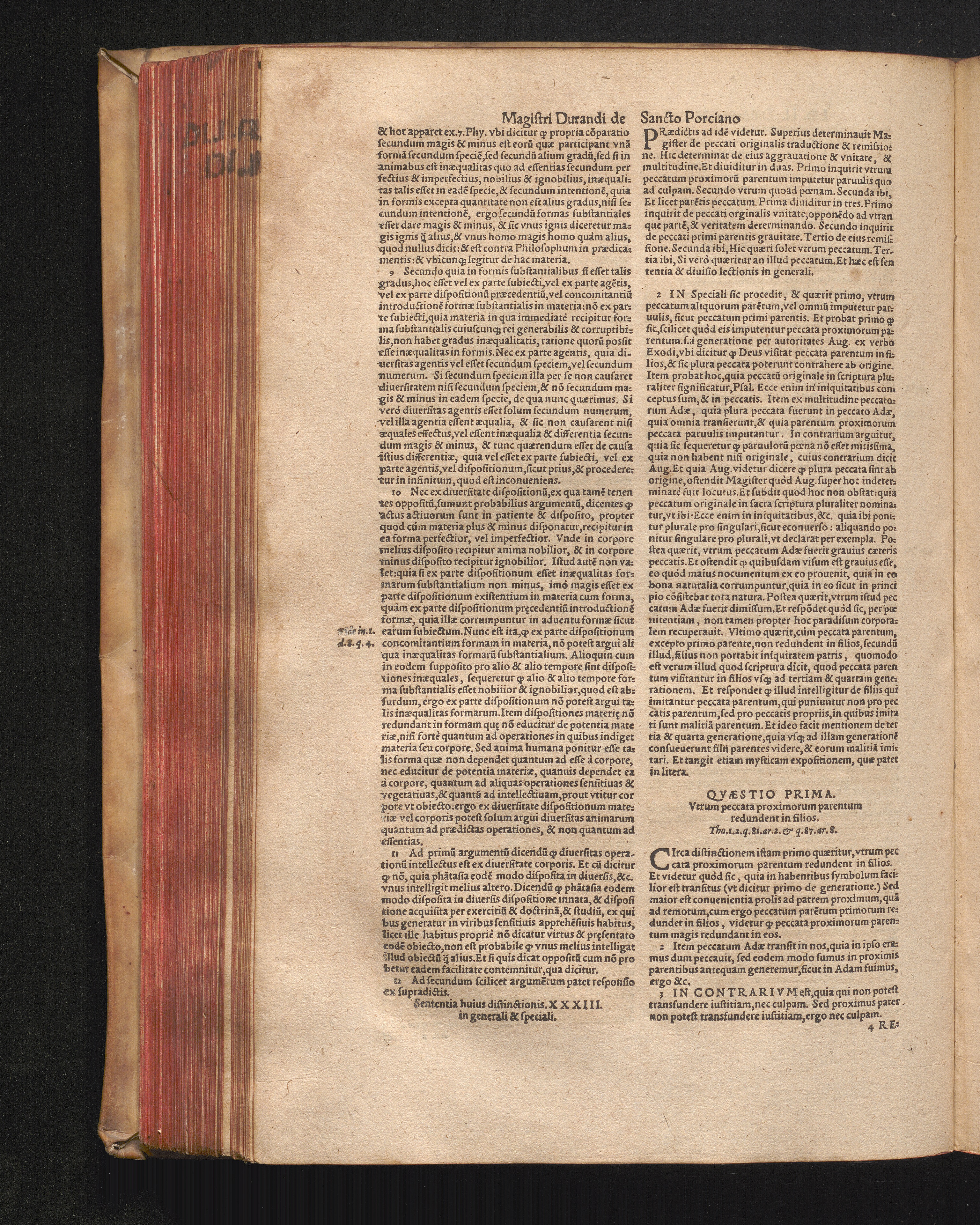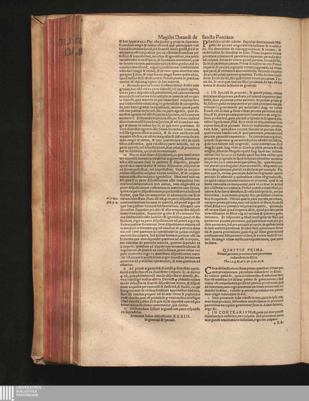 DN. DVRANDI|| à Sancto Portiano, in Senten=||tias Theologicas Petri Lombardi|| Commentariorum libri|| quatuor.|| / Primùm quidem per Nicolaum à Martimbos, eximium Nauarrensis|| Collegij Theologum, nunc verò denuo per alios quosdam|| non inferioris notæ Doctores quanta fieri po-||tuit cura diligentiáque emendati.|| Vná cum Auctoris Vita, & copiosissimo|| decisionum omnium|| Indice.||