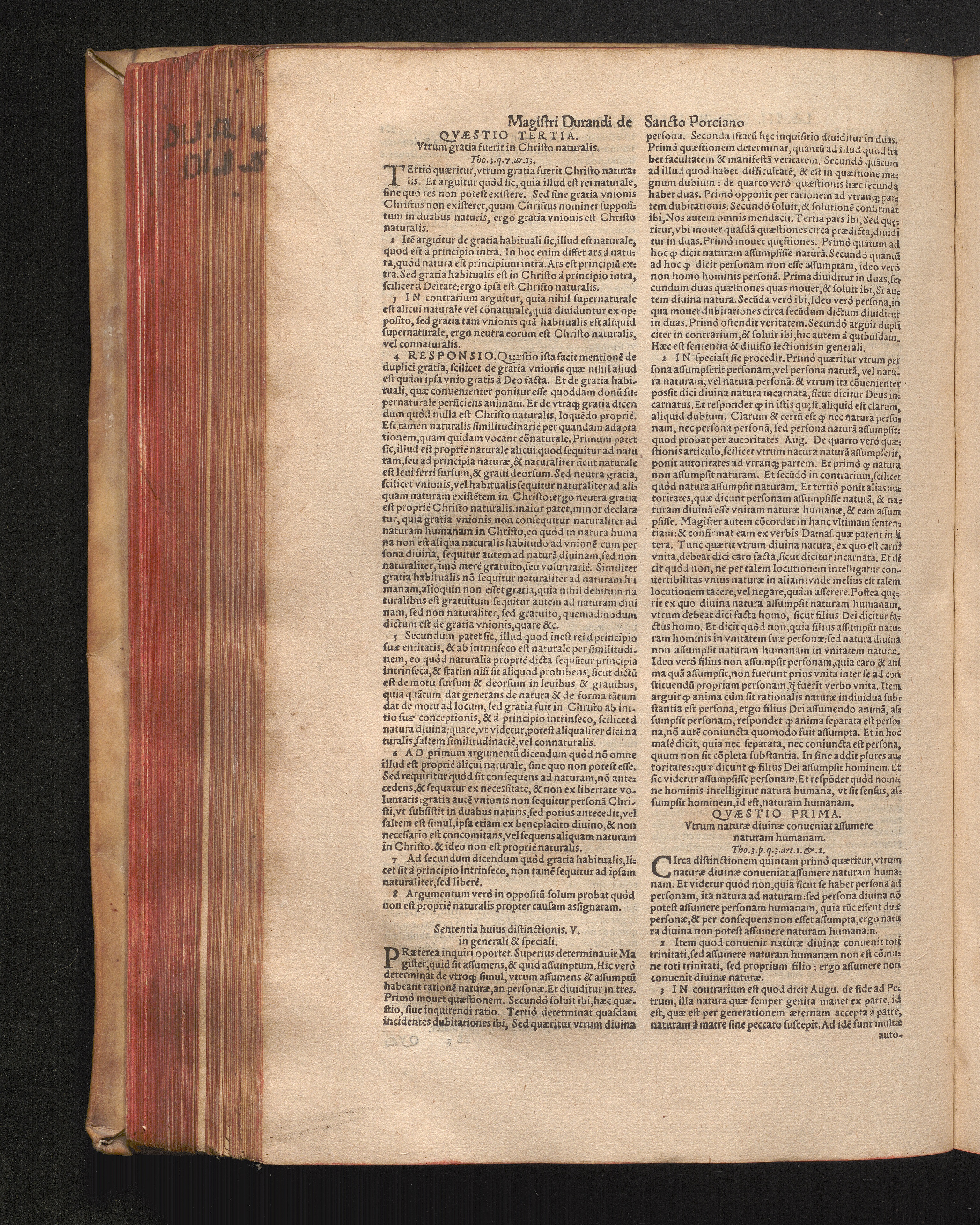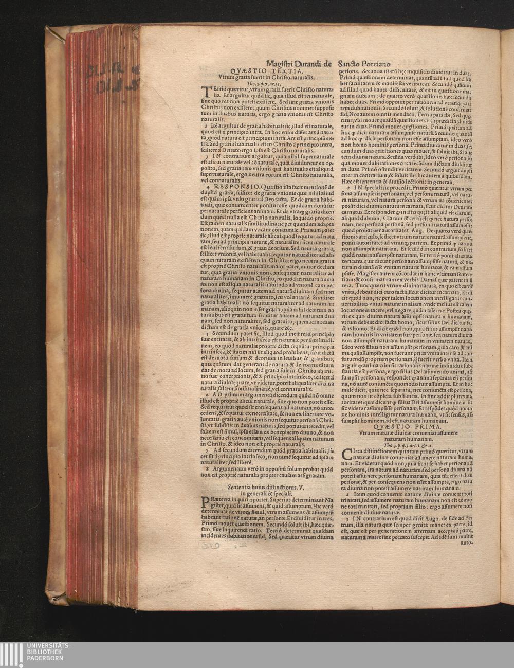DN. DVRANDI|| à Sancto Portiano, in Senten=||tias Theologicas Petri Lombardi|| Commentariorum libri|| quatuor.|| / Primùm quidem per Nicolaum à Martimbos, eximium Nauarrensis|| Collegij Theologum, nunc verò denuo per alios quosdam|| non inferioris notæ Doctores quanta fieri po-||tuit cura diligentiáque emendati.|| Vná cum Auctoris Vita, & copiosissimo|| decisionum omnium|| Indice.||