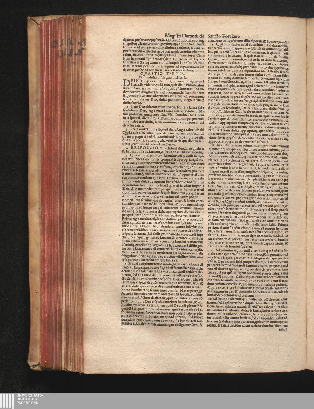 DN. DVRANDI|| à Sancto Portiano, in Senten=||tias Theologicas Petri Lombardi|| Commentariorum libri|| quatuor.|| / Primùm quidem per Nicolaum à Martimbos, eximium Nauarrensis|| Collegij Theologum, nunc verò denuo per alios quosdam|| non inferioris notæ Doctores quanta fieri po-||tuit cura diligentiáque emendati.|| Vná cum Auctoris Vita, & copiosissimo|| decisionum omnium|| Indice.||