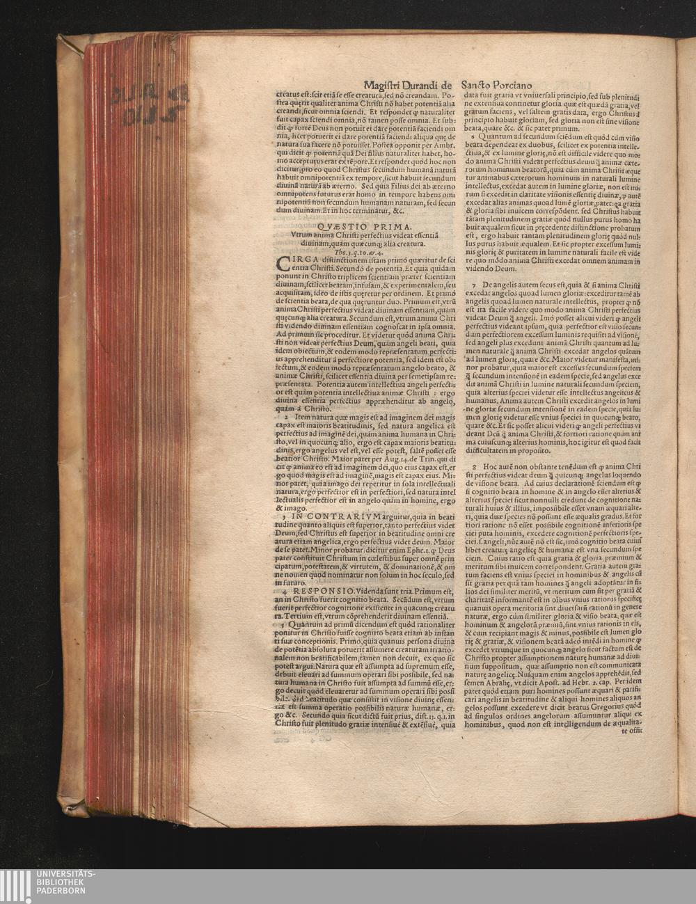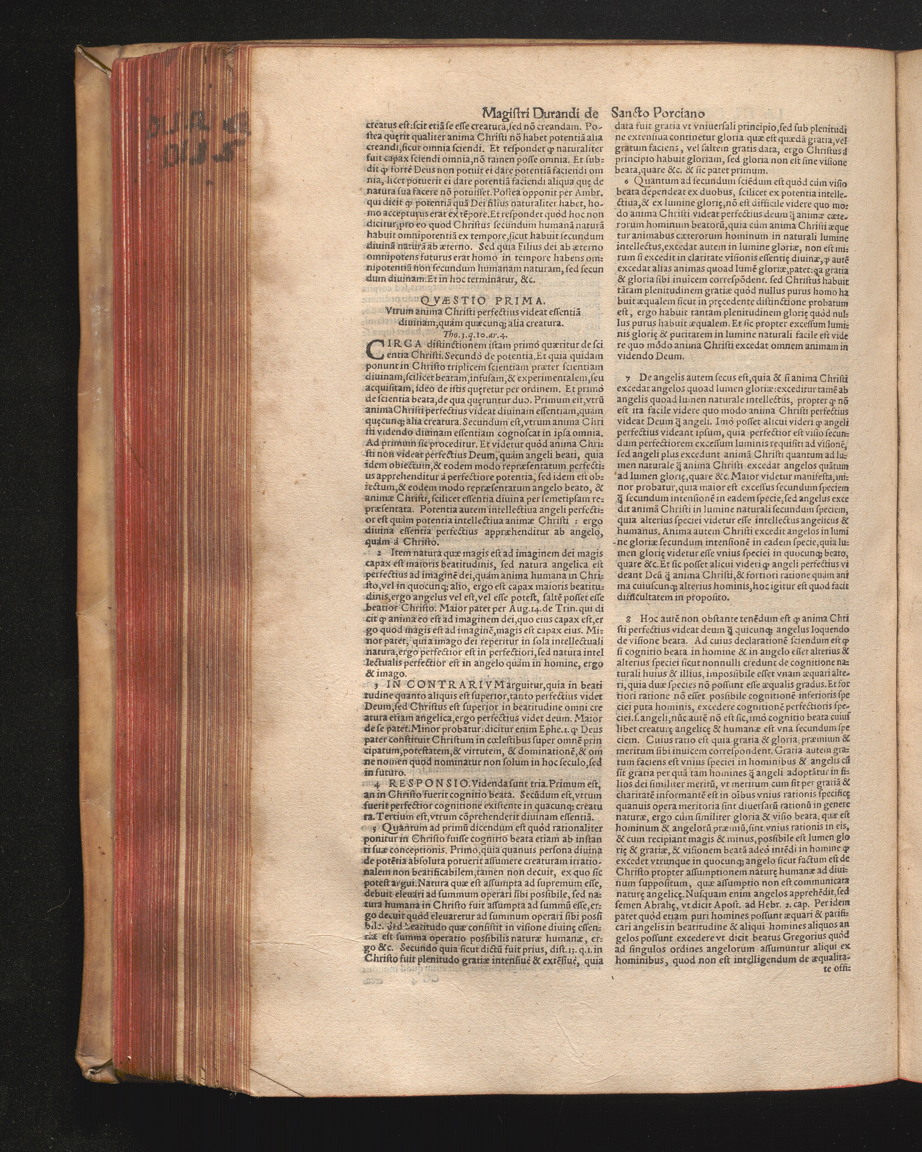 DN. DVRANDI|| à Sancto Portiano, in Senten=||tias Theologicas Petri Lombardi|| Commentariorum libri|| quatuor.|| / Primùm quidem per Nicolaum à Martimbos, eximium Nauarrensis|| Collegij Theologum, nunc verò denuo per alios quosdam|| non inferioris notæ Doctores quanta fieri po-||tuit cura diligentiáque emendati.|| Vná cum Auctoris Vita, & copiosissimo|| decisionum omnium|| Indice.||