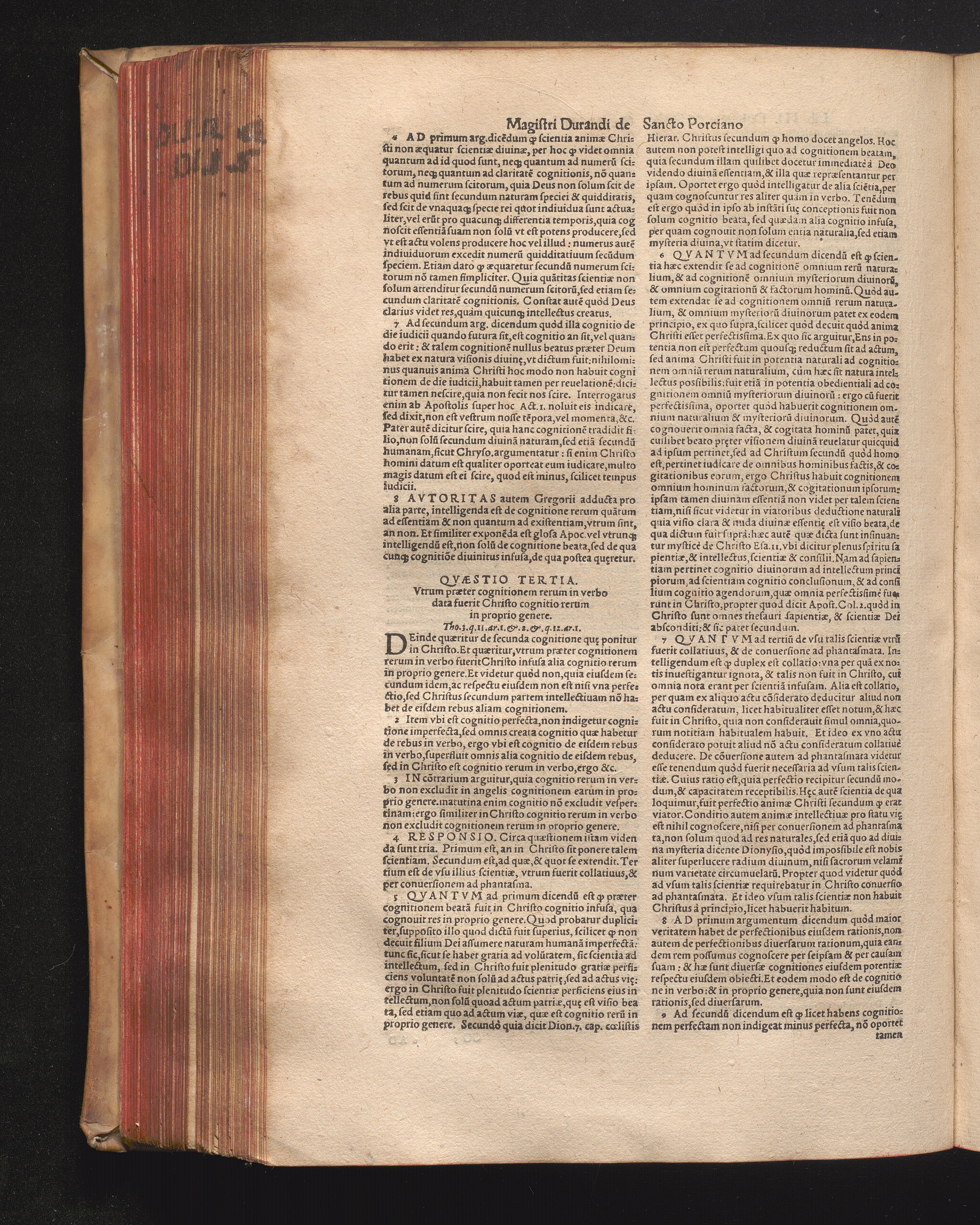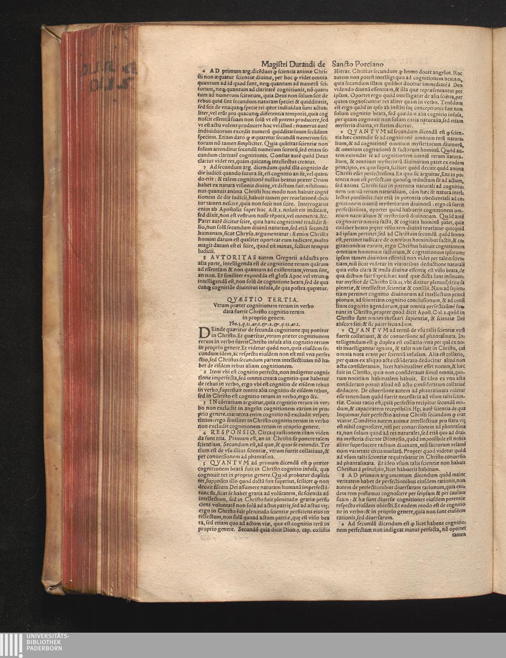 DN. DVRANDI|| à Sancto Portiano, in Senten=||tias Theologicas Petri Lombardi|| Commentariorum libri|| quatuor.|| / Primùm quidem per Nicolaum à Martimbos, eximium Nauarrensis|| Collegij Theologum, nunc verò denuo per alios quosdam|| non inferioris notæ Doctores quanta fieri po-||tuit cura diligentiáque emendati.|| Vná cum Auctoris Vita, & copiosissimo|| decisionum omnium|| Indice.||