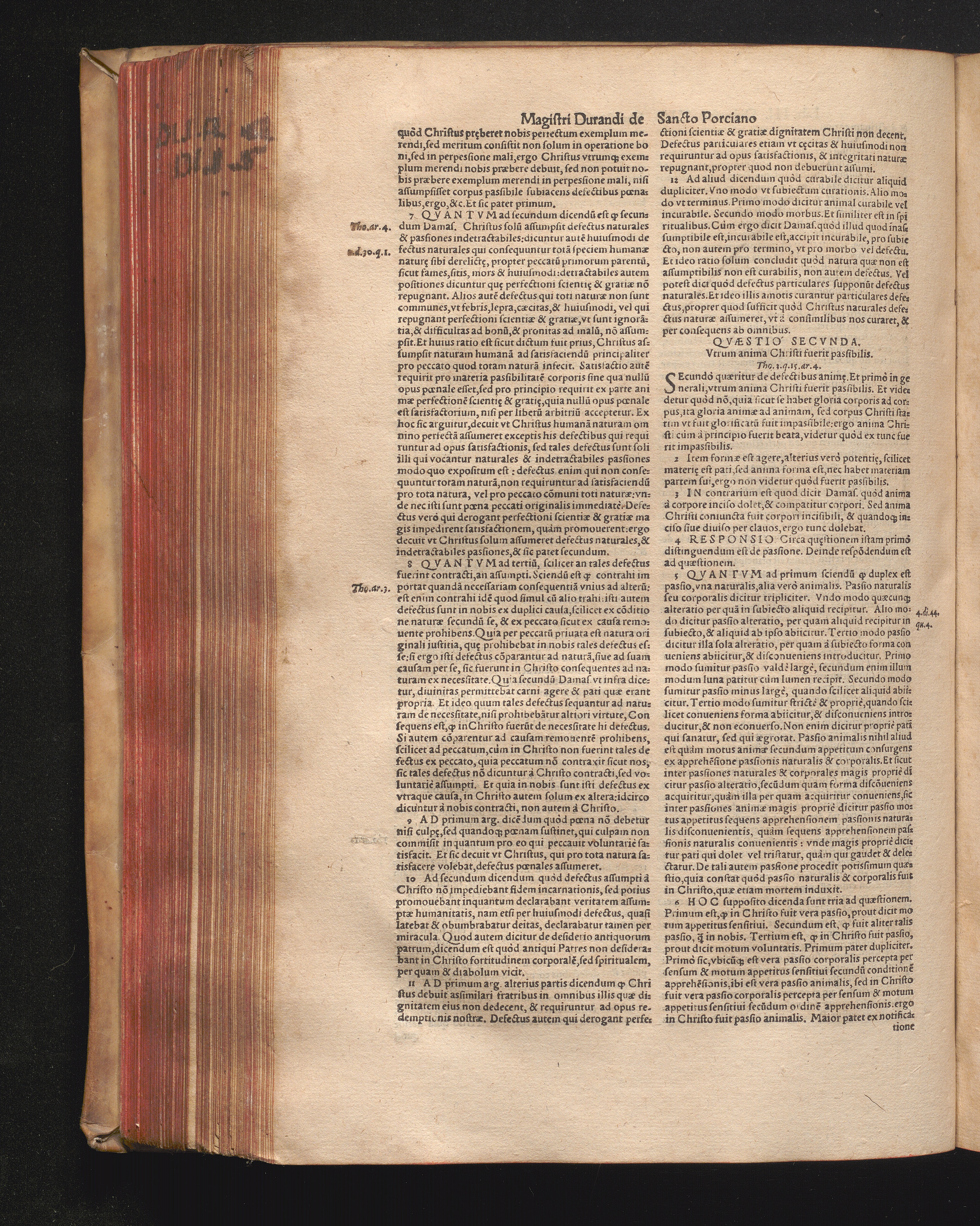 DN. DVRANDI|| à Sancto Portiano, in Senten=||tias Theologicas Petri Lombardi|| Commentariorum libri|| quatuor.|| / Primùm quidem per Nicolaum à Martimbos, eximium Nauarrensis|| Collegij Theologum, nunc verò denuo per alios quosdam|| non inferioris notæ Doctores quanta fieri po-||tuit cura diligentiáque emendati.|| Vná cum Auctoris Vita, & copiosissimo|| decisionum omnium|| Indice.||