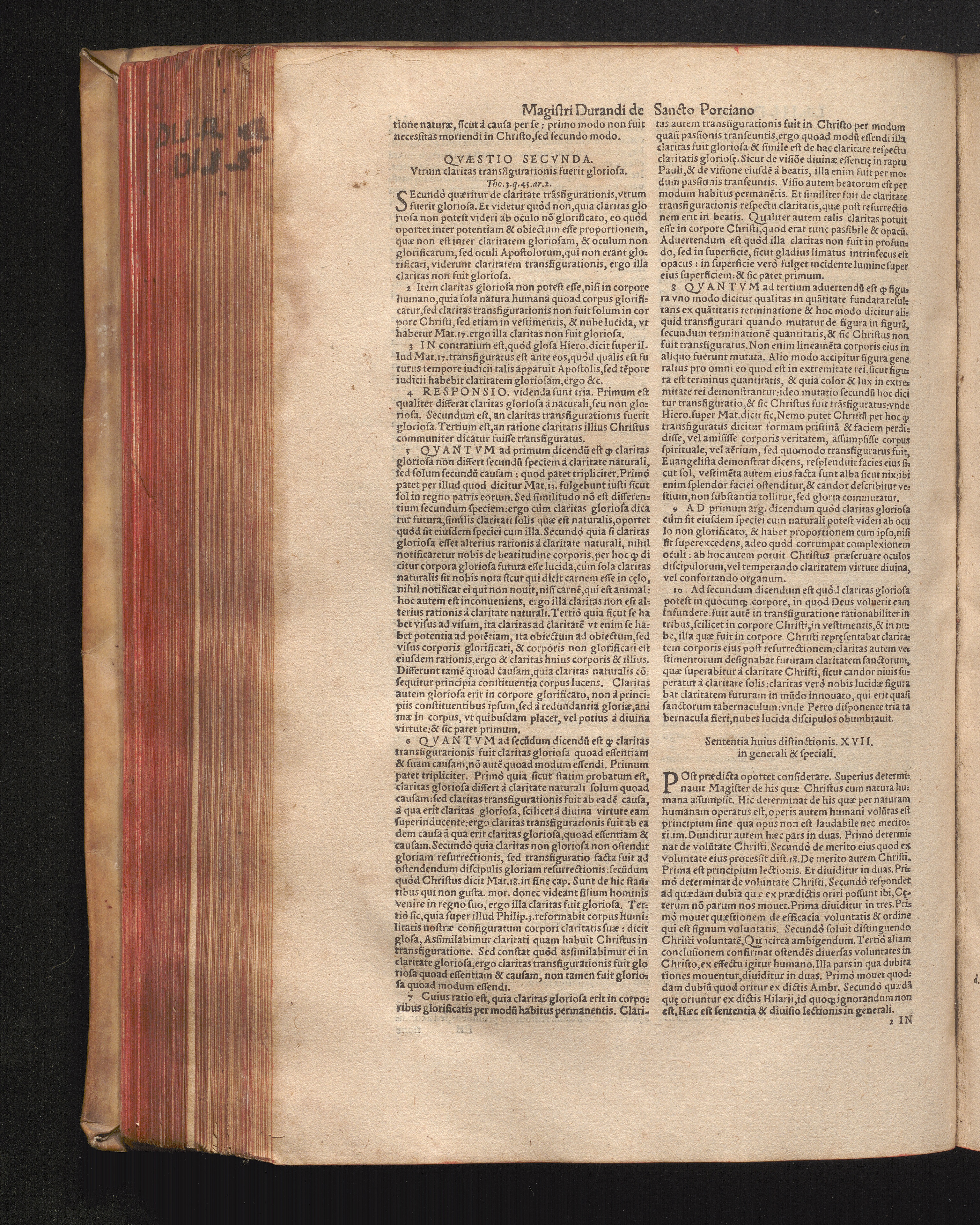 DN. DVRANDI|| à Sancto Portiano, in Senten=||tias Theologicas Petri Lombardi|| Commentariorum libri|| quatuor.|| / Primùm quidem per Nicolaum à Martimbos, eximium Nauarrensis|| Collegij Theologum, nunc verò denuo per alios quosdam|| non inferioris notæ Doctores quanta fieri po-||tuit cura diligentiáque emendati.|| Vná cum Auctoris Vita, & copiosissimo|| decisionum omnium|| Indice.||