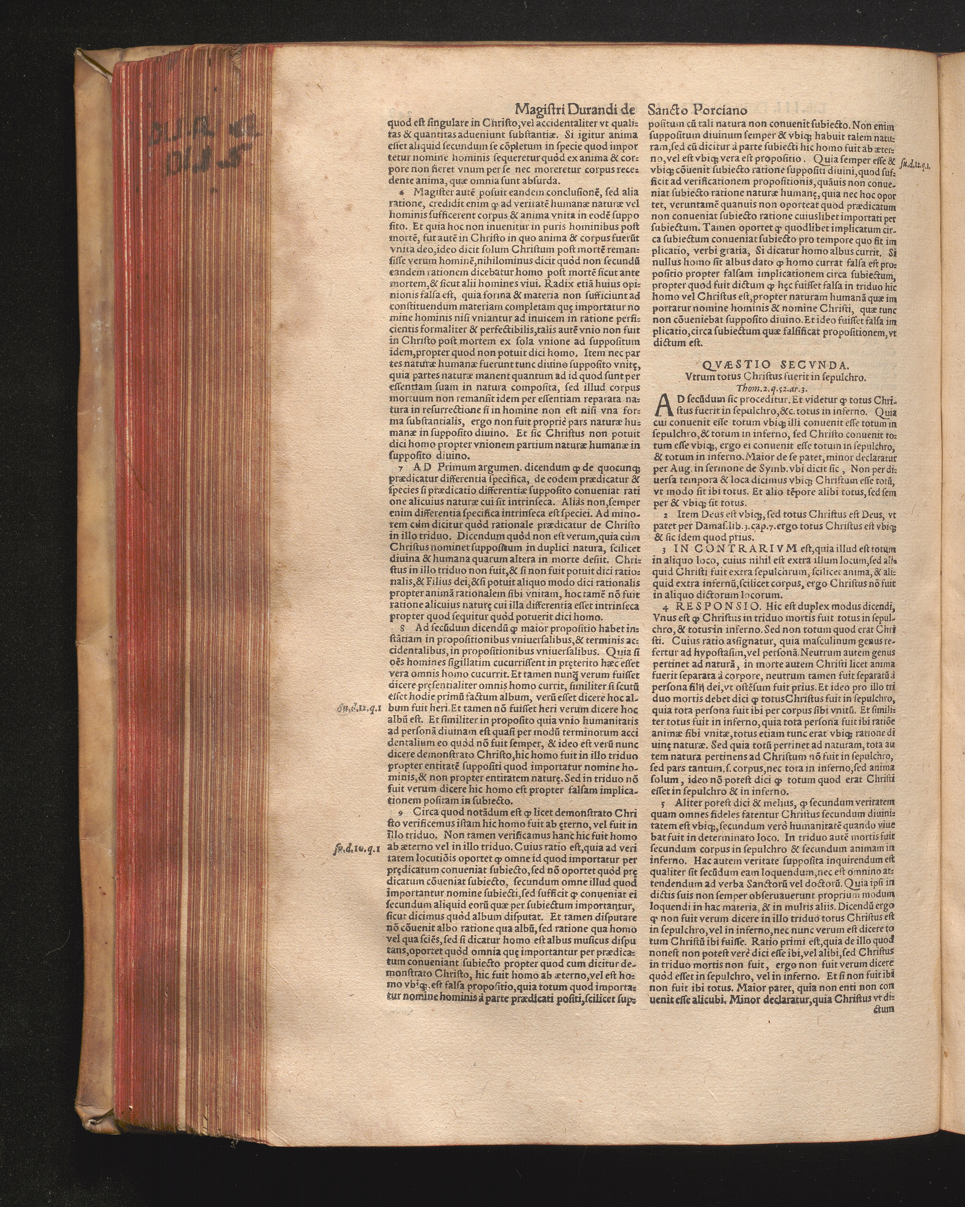 DN. DVRANDI|| à Sancto Portiano, in Senten=||tias Theologicas Petri Lombardi|| Commentariorum libri|| quatuor.|| / Primùm quidem per Nicolaum à Martimbos, eximium Nauarrensis|| Collegij Theologum, nunc verò denuo per alios quosdam|| non inferioris notæ Doctores quanta fieri po-||tuit cura diligentiáque emendati.|| Vná cum Auctoris Vita, & copiosissimo|| decisionum omnium|| Indice.||
