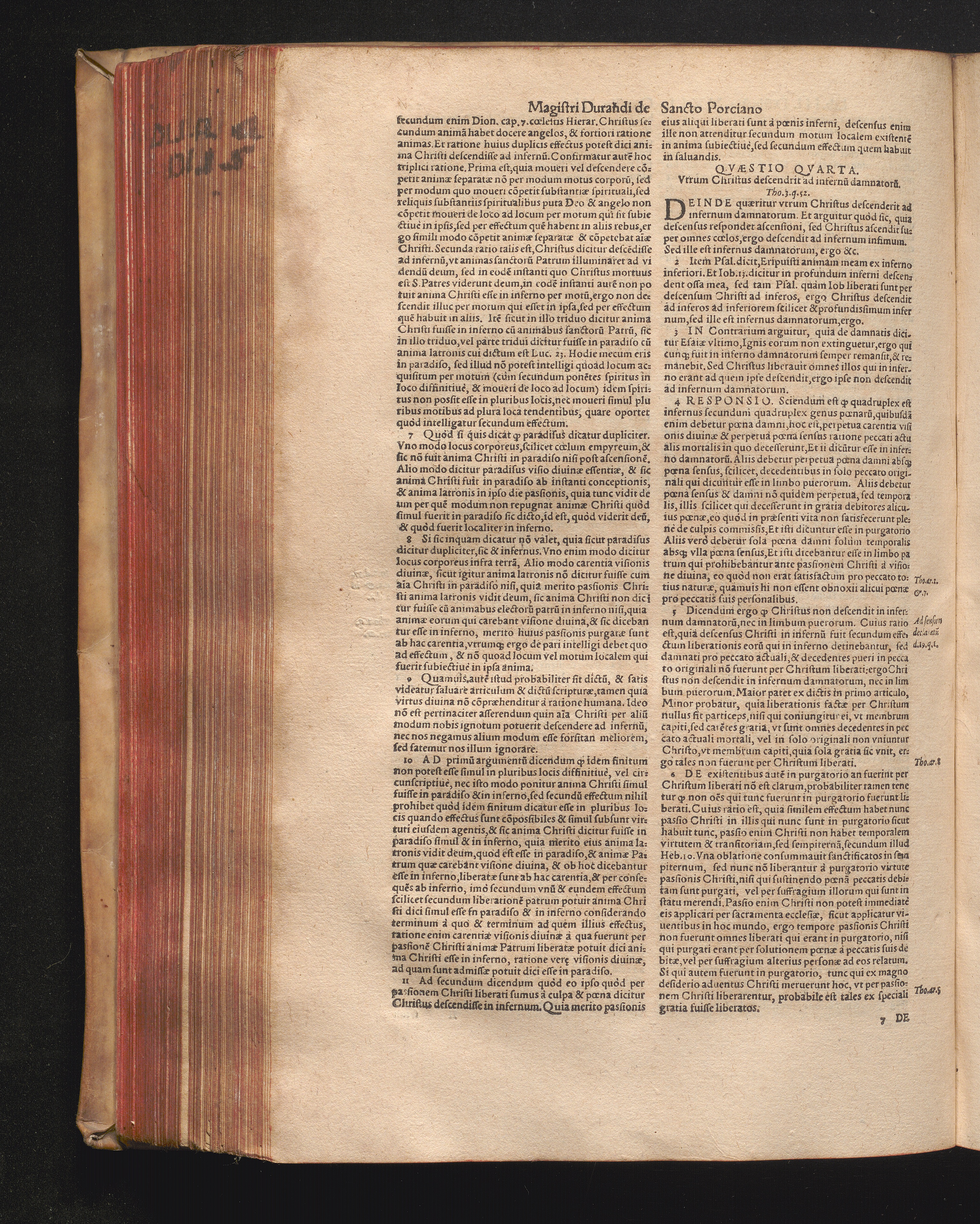 DN. DVRANDI|| à Sancto Portiano, in Senten=||tias Theologicas Petri Lombardi|| Commentariorum libri|| quatuor.|| / Primùm quidem per Nicolaum à Martimbos, eximium Nauarrensis|| Collegij Theologum, nunc verò denuo per alios quosdam|| non inferioris notæ Doctores quanta fieri po-||tuit cura diligentiáque emendati.|| Vná cum Auctoris Vita, & copiosissimo|| decisionum omnium|| Indice.||