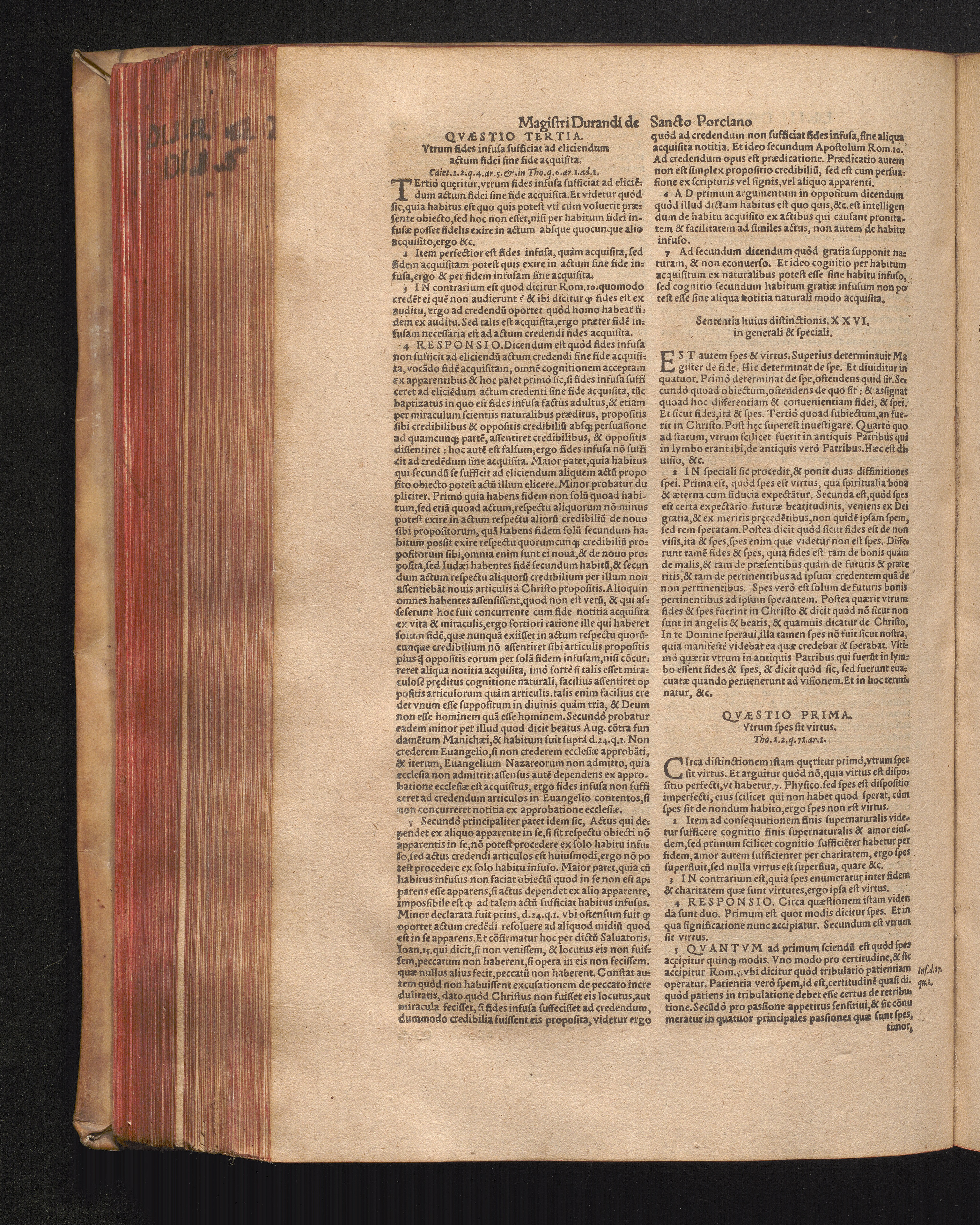 DN. DVRANDI|| à Sancto Portiano, in Senten=||tias Theologicas Petri Lombardi|| Commentariorum libri|| quatuor.|| / Primùm quidem per Nicolaum à Martimbos, eximium Nauarrensis|| Collegij Theologum, nunc verò denuo per alios quosdam|| non inferioris notæ Doctores quanta fieri po-||tuit cura diligentiáque emendati.|| Vná cum Auctoris Vita, & copiosissimo|| decisionum omnium|| Indice.||