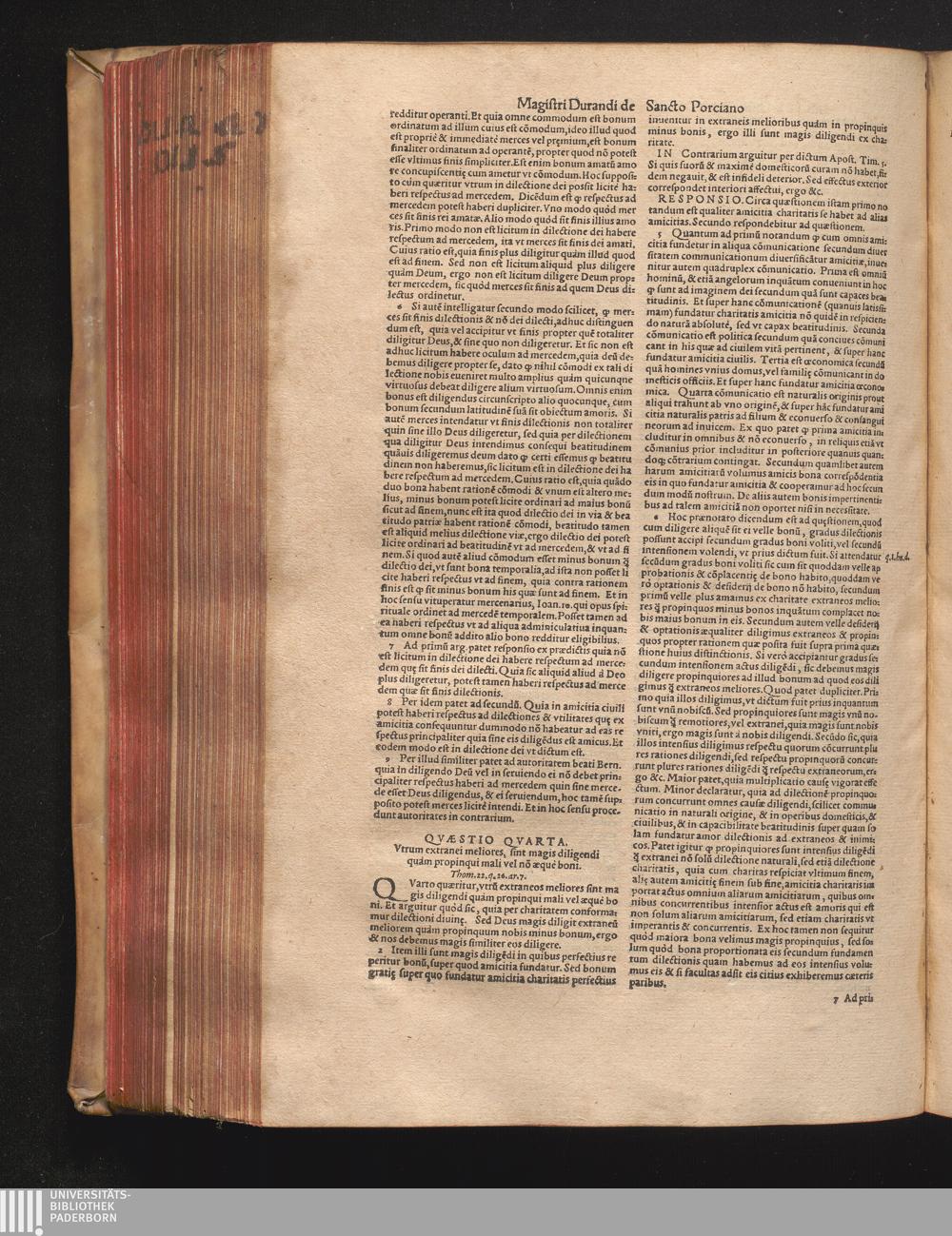 DN. DVRANDI|| à Sancto Portiano, in Senten=||tias Theologicas Petri Lombardi|| Commentariorum libri|| quatuor.|| / Primùm quidem per Nicolaum à Martimbos, eximium Nauarrensis|| Collegij Theologum, nunc verò denuo per alios quosdam|| non inferioris notæ Doctores quanta fieri po-||tuit cura diligentiáque emendati.|| Vná cum Auctoris Vita, & copiosissimo|| decisionum omnium|| Indice.||