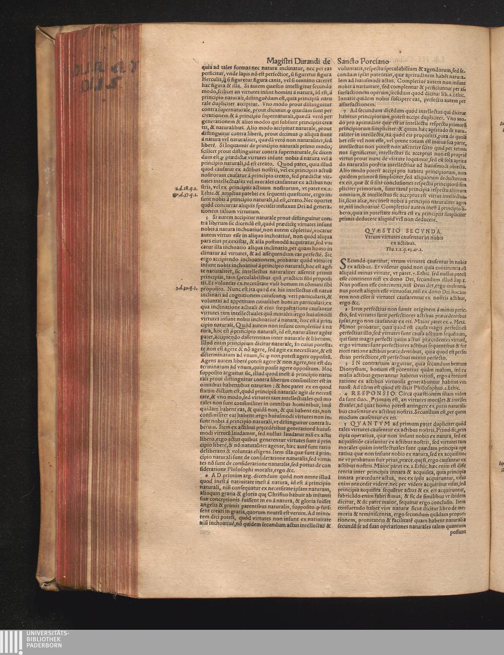 DN. DVRANDI|| à Sancto Portiano, in Senten=||tias Theologicas Petri Lombardi|| Commentariorum libri|| quatuor.|| / Primùm quidem per Nicolaum à Martimbos, eximium Nauarrensis|| Collegij Theologum, nunc verò denuo per alios quosdam|| non inferioris notæ Doctores quanta fieri po-||tuit cura diligentiáque emendati.|| Vná cum Auctoris Vita, & copiosissimo|| decisionum omnium|| Indice.||