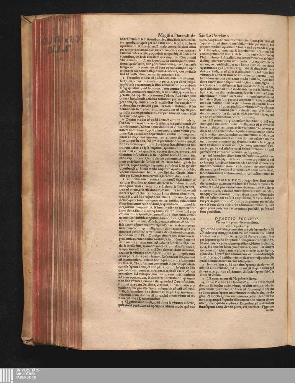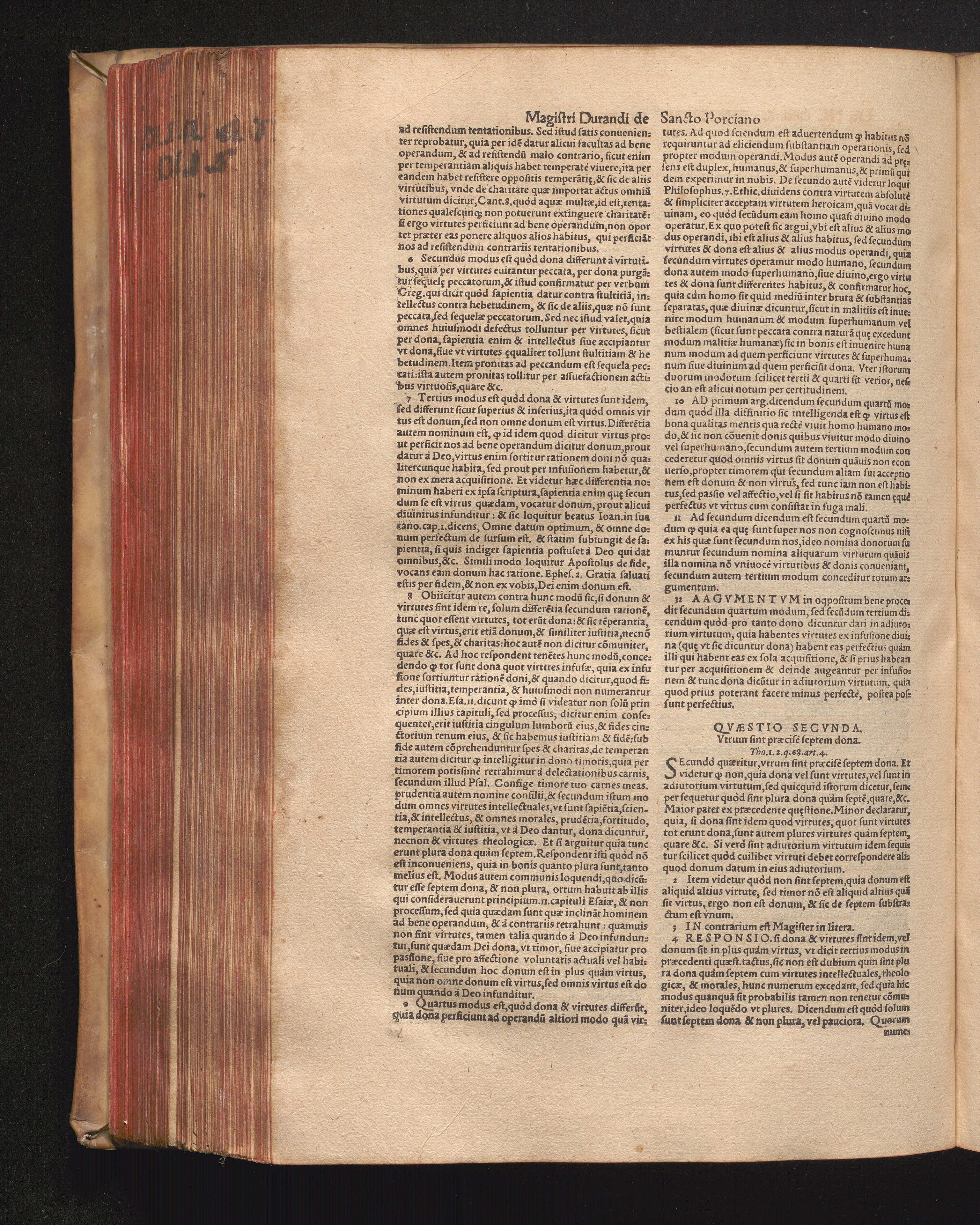 DN. DVRANDI|| à Sancto Portiano, in Senten=||tias Theologicas Petri Lombardi|| Commentariorum libri|| quatuor.|| / Primùm quidem per Nicolaum à Martimbos, eximium Nauarrensis|| Collegij Theologum, nunc verò denuo per alios quosdam|| non inferioris notæ Doctores quanta fieri po-||tuit cura diligentiáque emendati.|| Vná cum Auctoris Vita, & copiosissimo|| decisionum omnium|| Indice.||