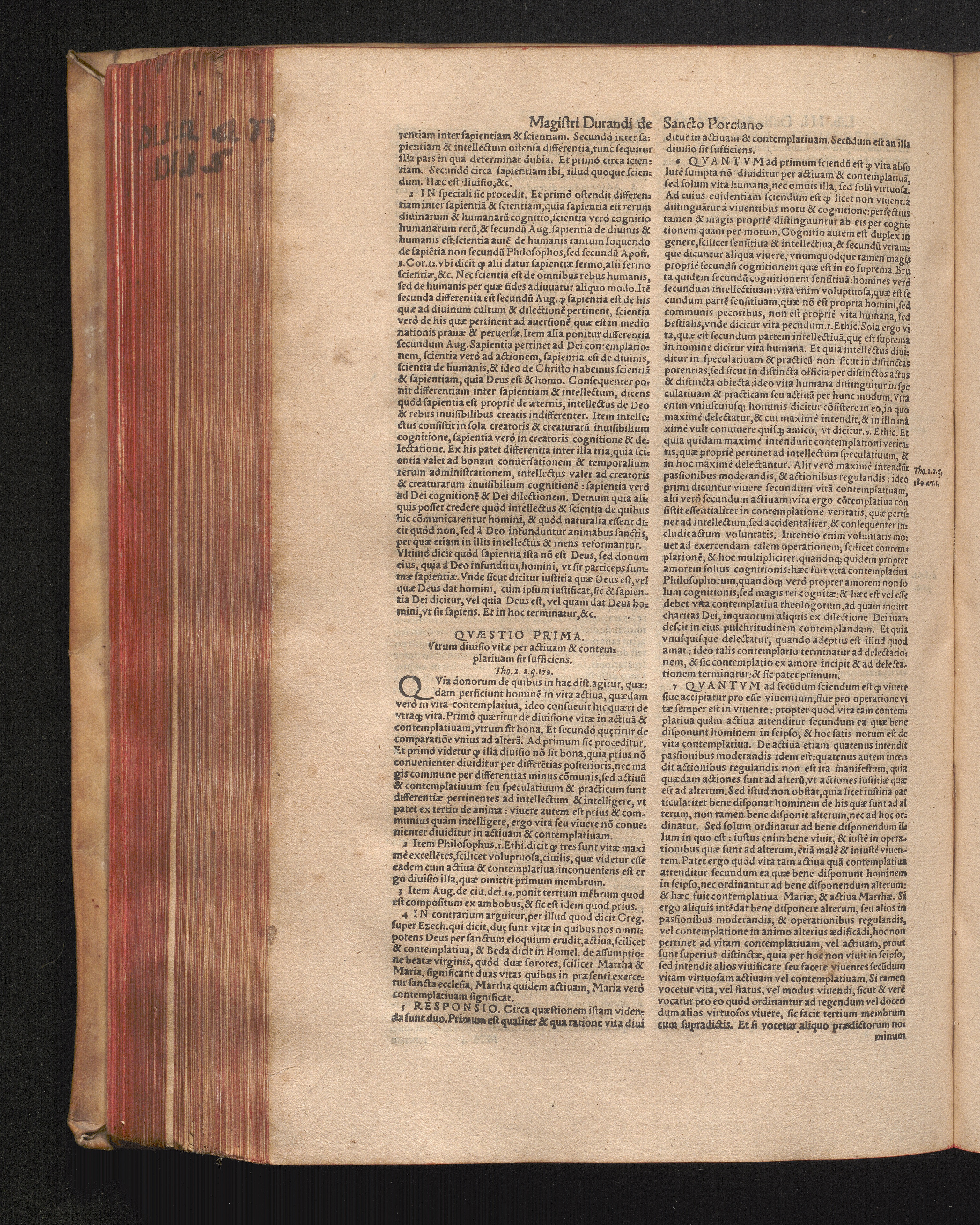 DN. DVRANDI|| à Sancto Portiano, in Senten=||tias Theologicas Petri Lombardi|| Commentariorum libri|| quatuor.|| / Primùm quidem per Nicolaum à Martimbos, eximium Nauarrensis|| Collegij Theologum, nunc verò denuo per alios quosdam|| non inferioris notæ Doctores quanta fieri po-||tuit cura diligentiáque emendati.|| Vná cum Auctoris Vita, & copiosissimo|| decisionum omnium|| Indice.||