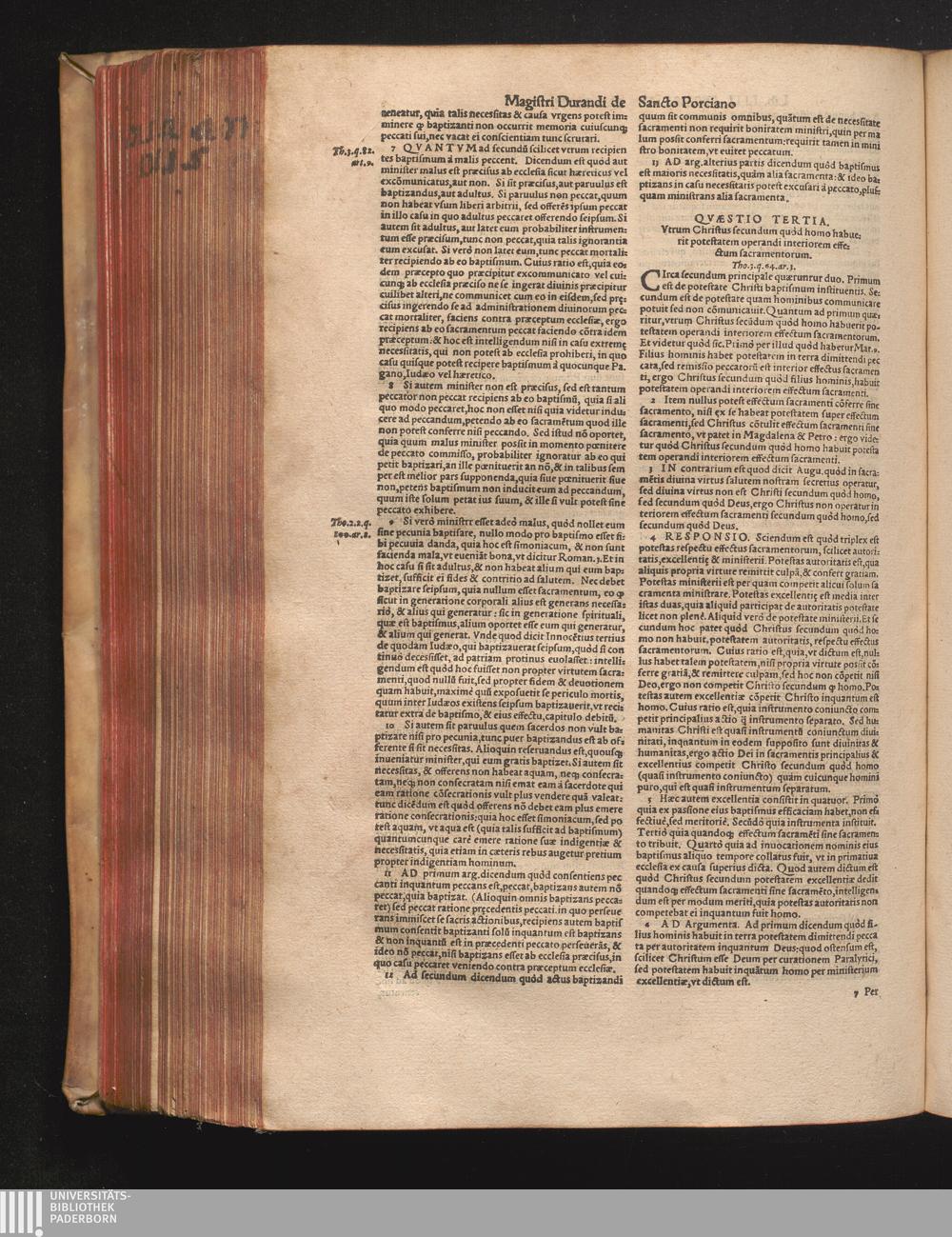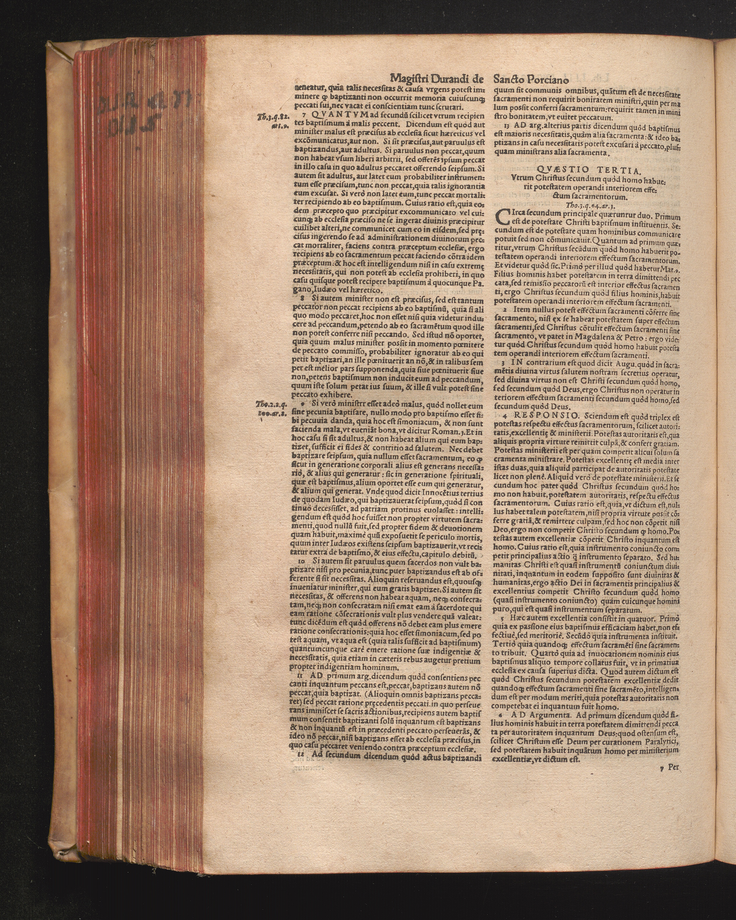 DN. DVRANDI|| à Sancto Portiano, in Senten=||tias Theologicas Petri Lombardi|| Commentariorum libri|| quatuor.|| / Primùm quidem per Nicolaum à Martimbos, eximium Nauarrensis|| Collegij Theologum, nunc verò denuo per alios quosdam|| non inferioris notæ Doctores quanta fieri po-||tuit cura diligentiáque emendati.|| Vná cum Auctoris Vita, & copiosissimo|| decisionum omnium|| Indice.||