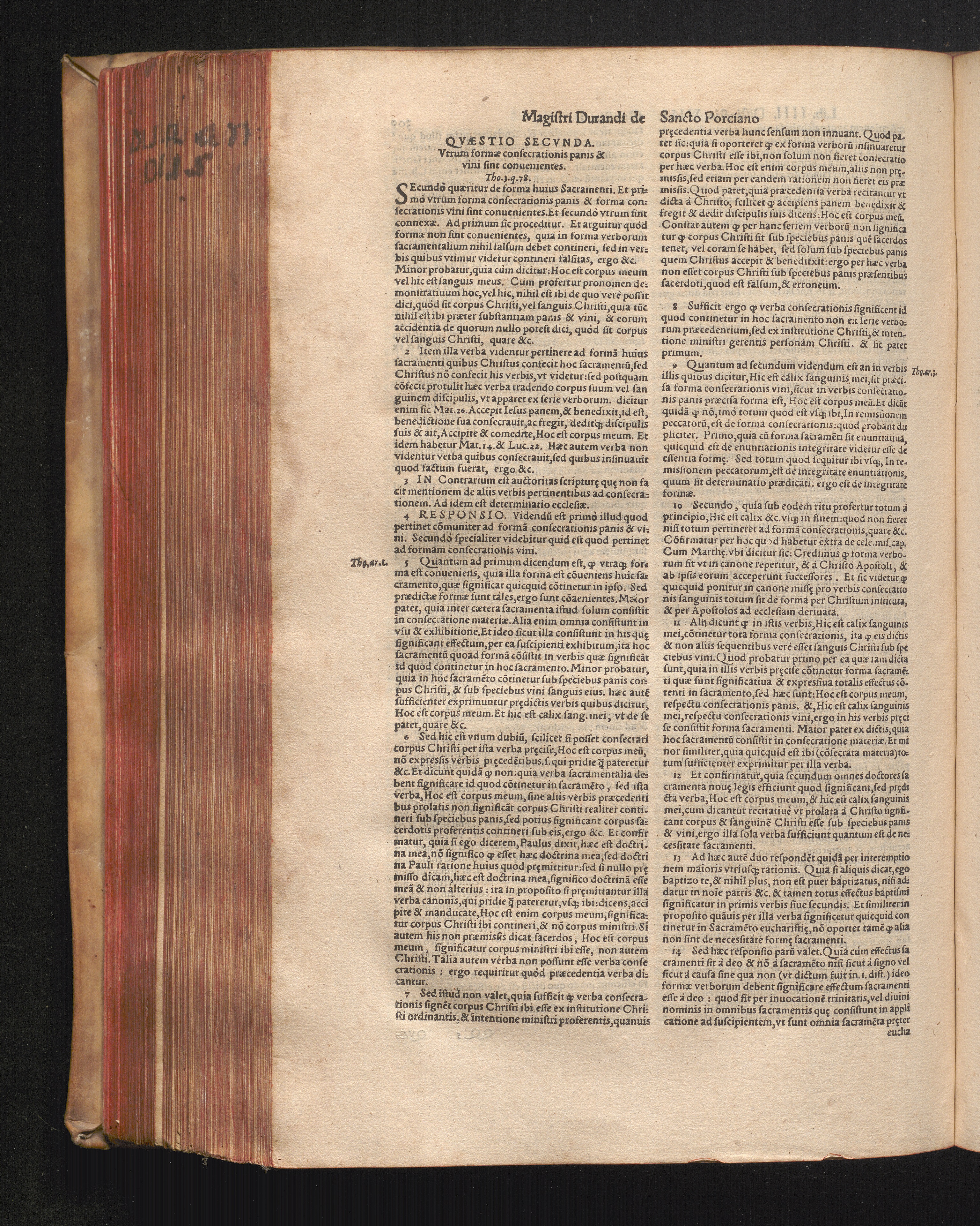 DN. DVRANDI|| à Sancto Portiano, in Senten=||tias Theologicas Petri Lombardi|| Commentariorum libri|| quatuor.|| / Primùm quidem per Nicolaum à Martimbos, eximium Nauarrensis|| Collegij Theologum, nunc verò denuo per alios quosdam|| non inferioris notæ Doctores quanta fieri po-||tuit cura diligentiáque emendati.|| Vná cum Auctoris Vita, & copiosissimo|| decisionum omnium|| Indice.||