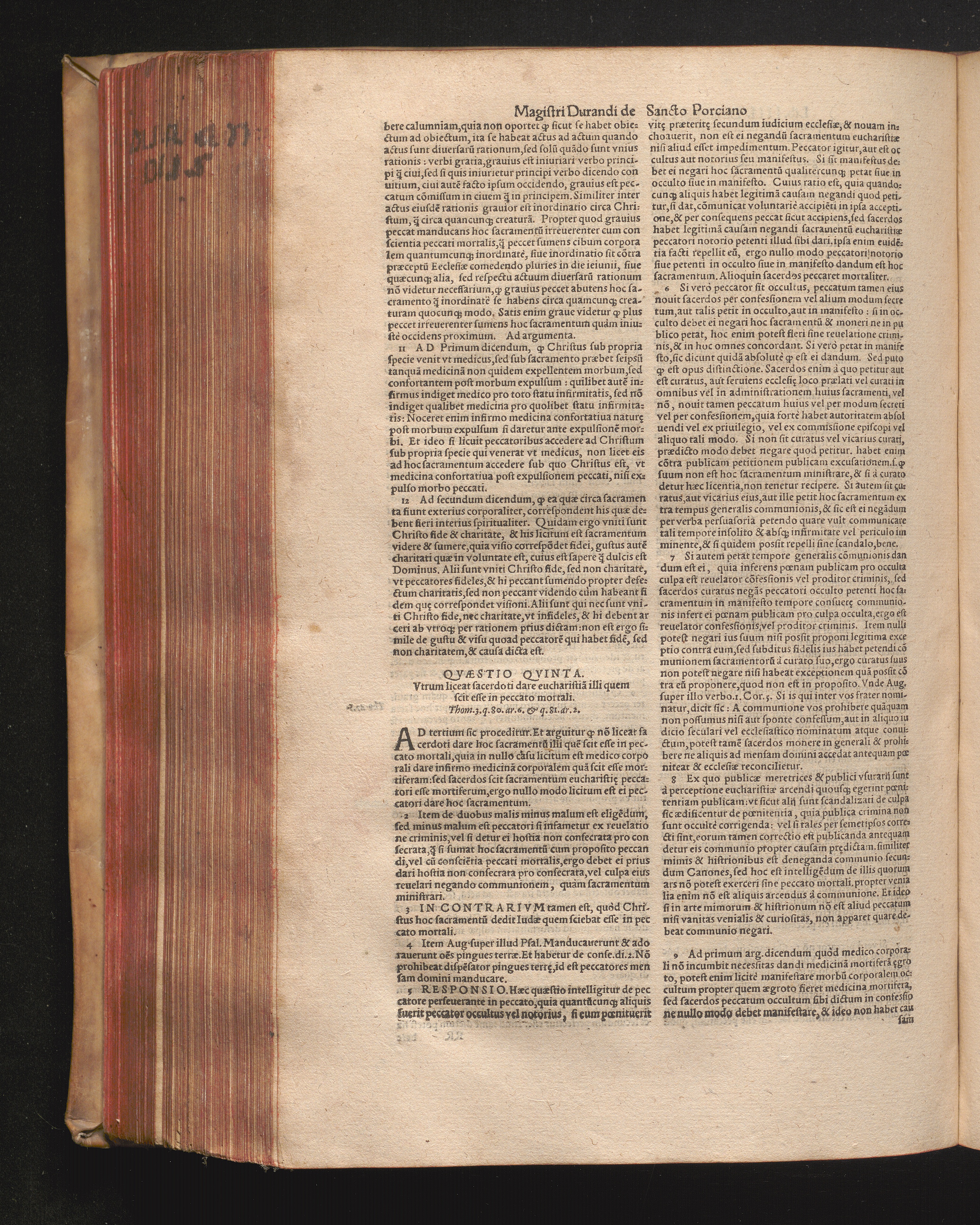 DN. DVRANDI|| à Sancto Portiano, in Senten=||tias Theologicas Petri Lombardi|| Commentariorum libri|| quatuor.|| / Primùm quidem per Nicolaum à Martimbos, eximium Nauarrensis|| Collegij Theologum, nunc verò denuo per alios quosdam|| non inferioris notæ Doctores quanta fieri po-||tuit cura diligentiáque emendati.|| Vná cum Auctoris Vita, & copiosissimo|| decisionum omnium|| Indice.||