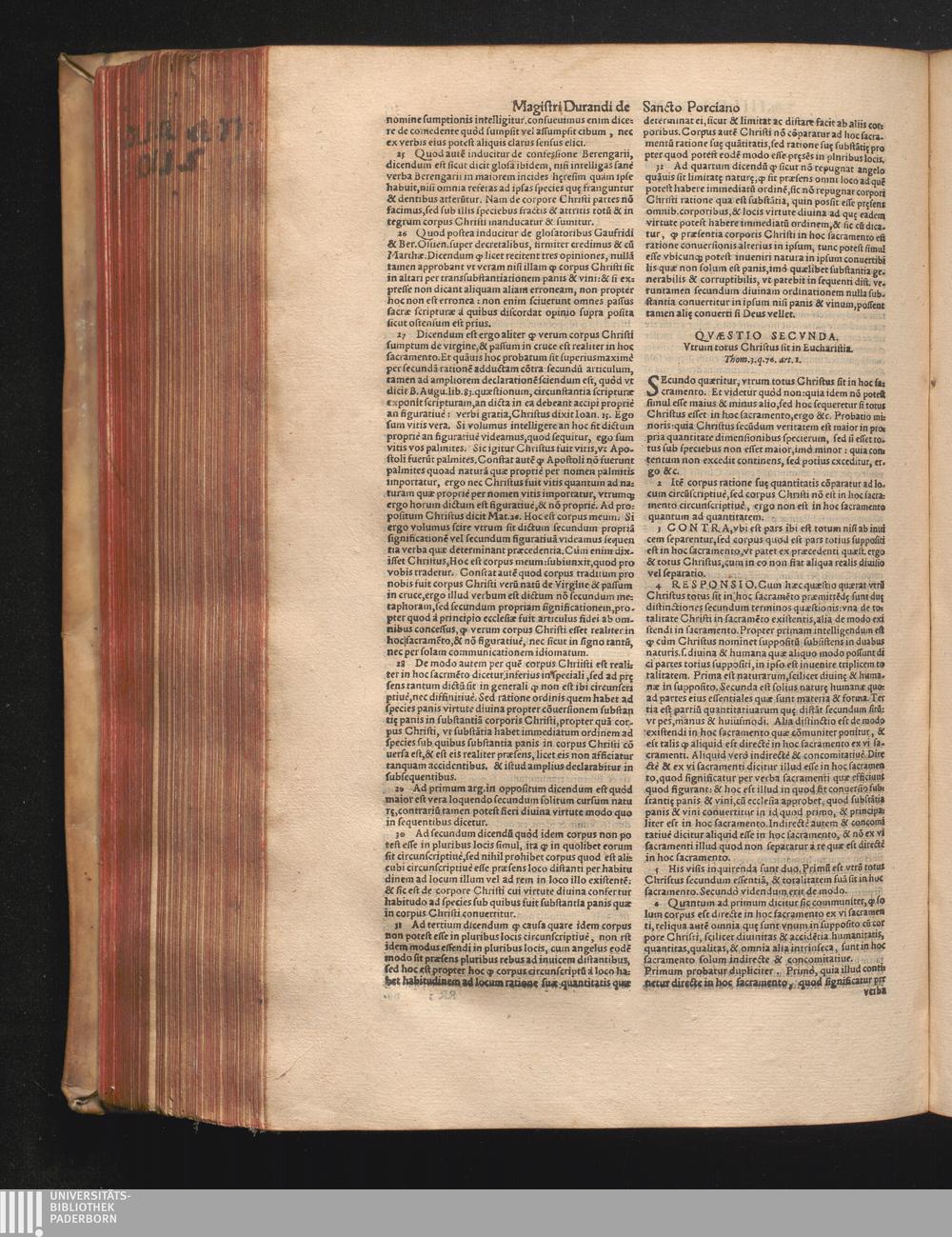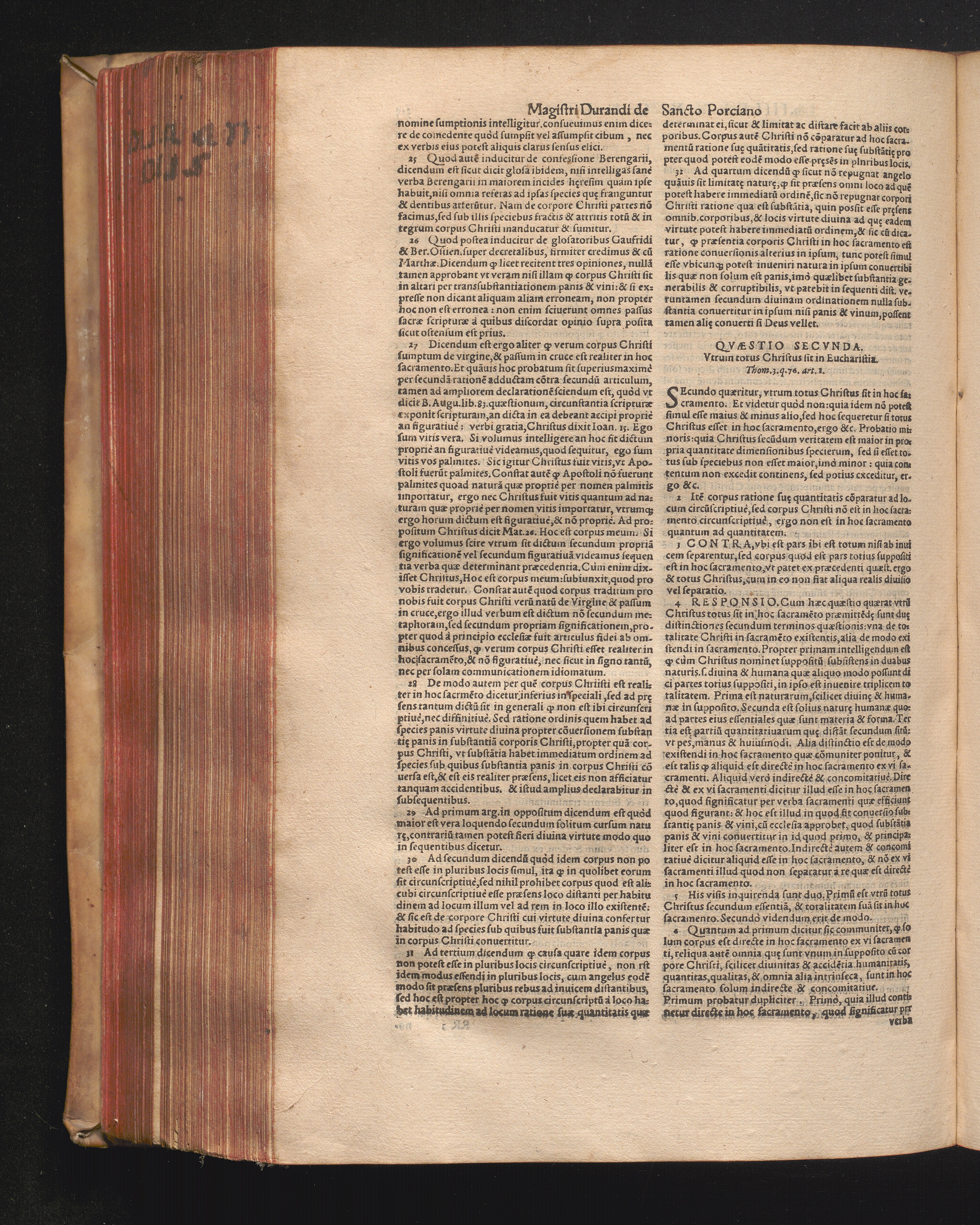 DN. DVRANDI|| à Sancto Portiano, in Senten=||tias Theologicas Petri Lombardi|| Commentariorum libri|| quatuor.|| / Primùm quidem per Nicolaum à Martimbos, eximium Nauarrensis|| Collegij Theologum, nunc verò denuo per alios quosdam|| non inferioris notæ Doctores quanta fieri po-||tuit cura diligentiáque emendati.|| Vná cum Auctoris Vita, & copiosissimo|| decisionum omnium|| Indice.||