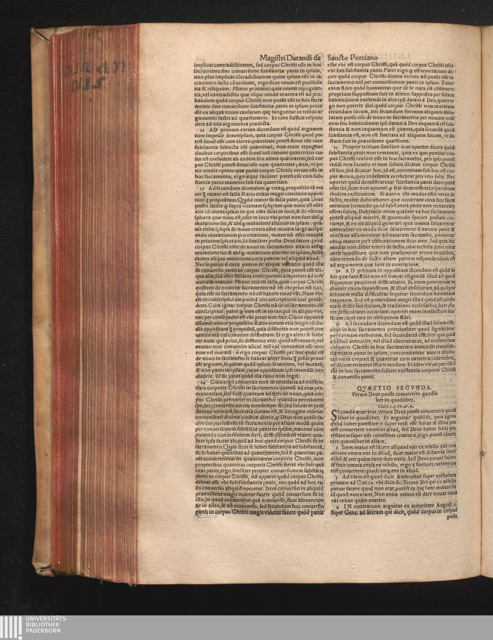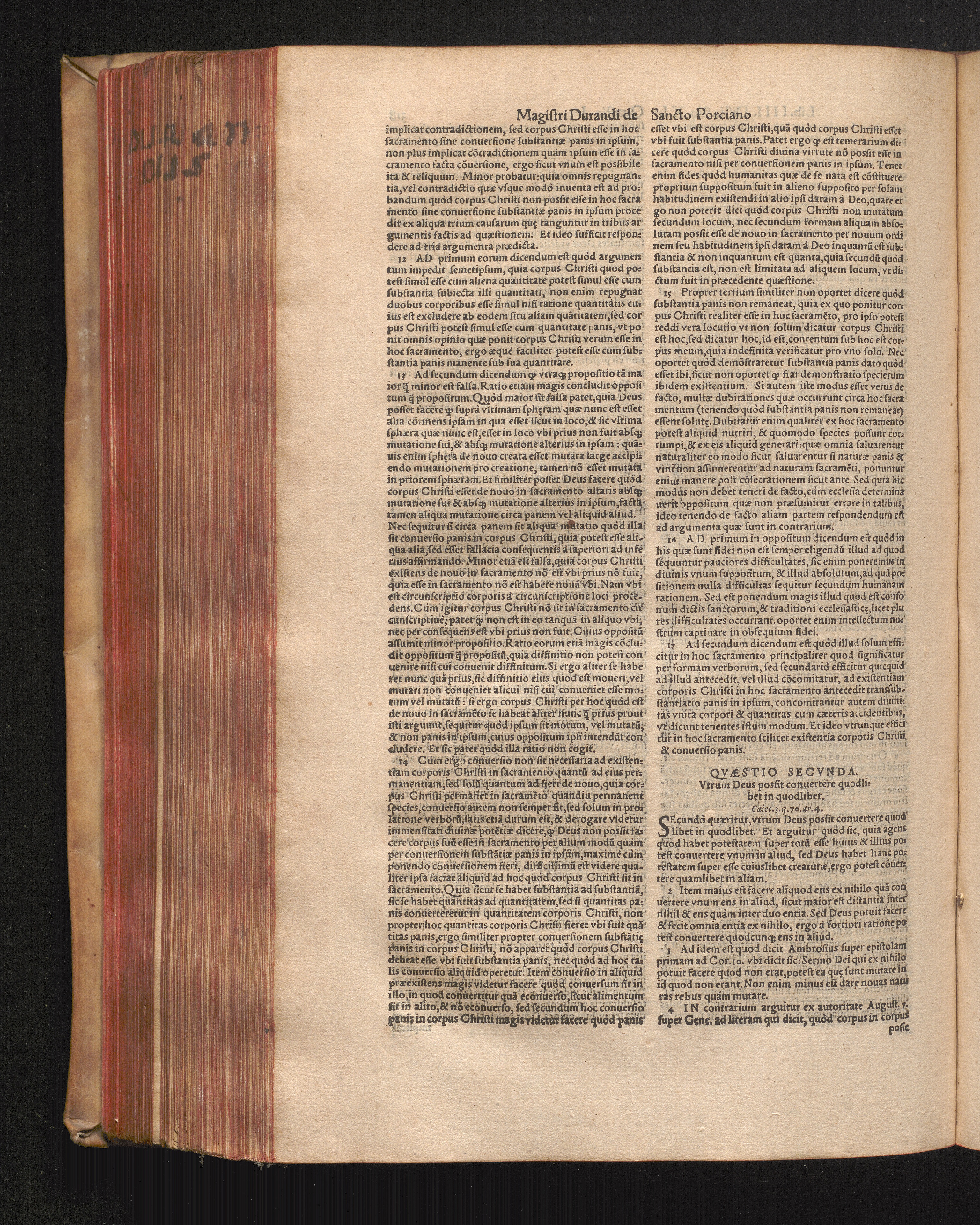 DN. DVRANDI|| à Sancto Portiano, in Senten=||tias Theologicas Petri Lombardi|| Commentariorum libri|| quatuor.|| / Primùm quidem per Nicolaum à Martimbos, eximium Nauarrensis|| Collegij Theologum, nunc verò denuo per alios quosdam|| non inferioris notæ Doctores quanta fieri po-||tuit cura diligentiáque emendati.|| Vná cum Auctoris Vita, & copiosissimo|| decisionum omnium|| Indice.||