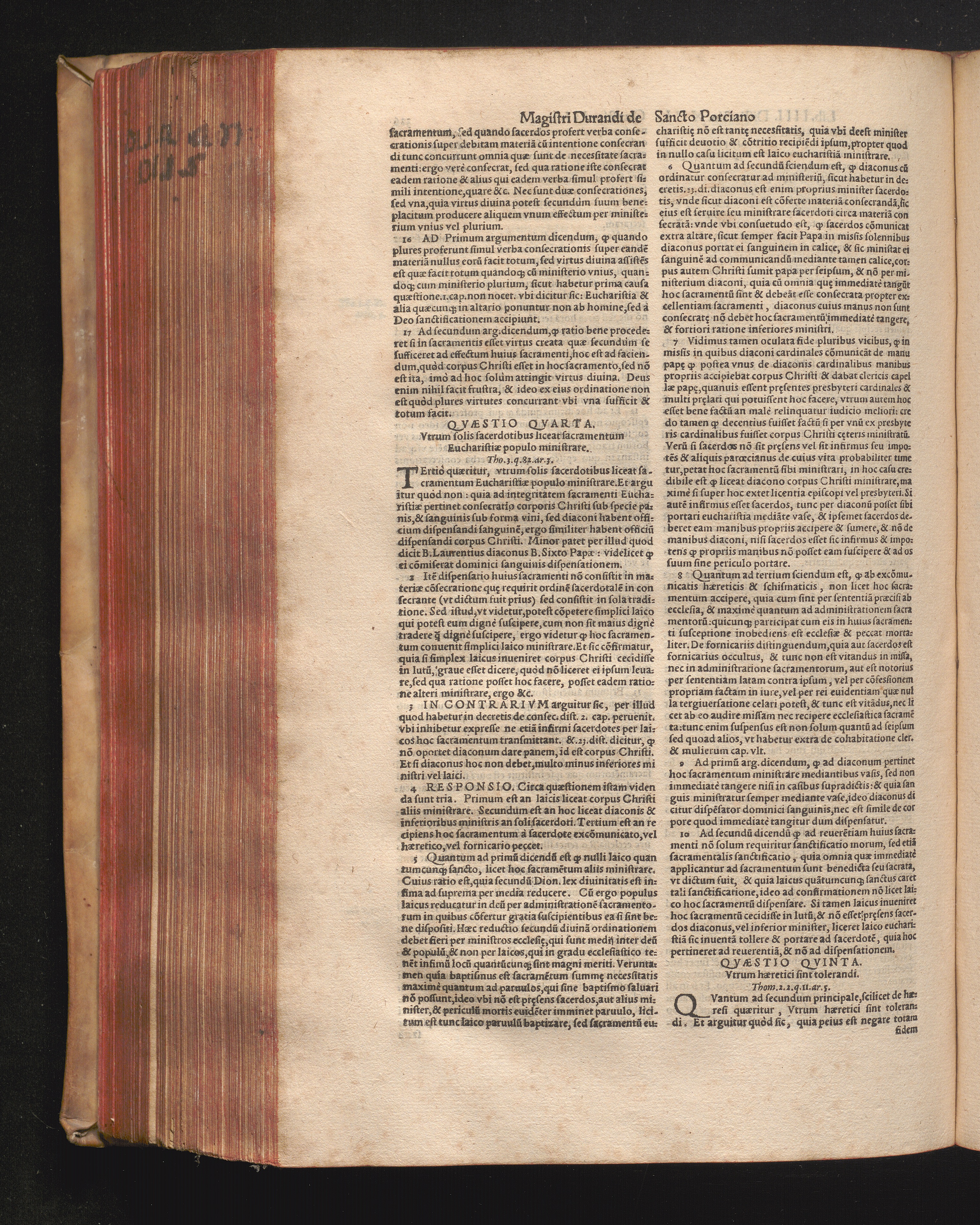 DN. DVRANDI|| à Sancto Portiano, in Senten=||tias Theologicas Petri Lombardi|| Commentariorum libri|| quatuor.|| / Primùm quidem per Nicolaum à Martimbos, eximium Nauarrensis|| Collegij Theologum, nunc verò denuo per alios quosdam|| non inferioris notæ Doctores quanta fieri po-||tuit cura diligentiáque emendati.|| Vná cum Auctoris Vita, & copiosissimo|| decisionum omnium|| Indice.||