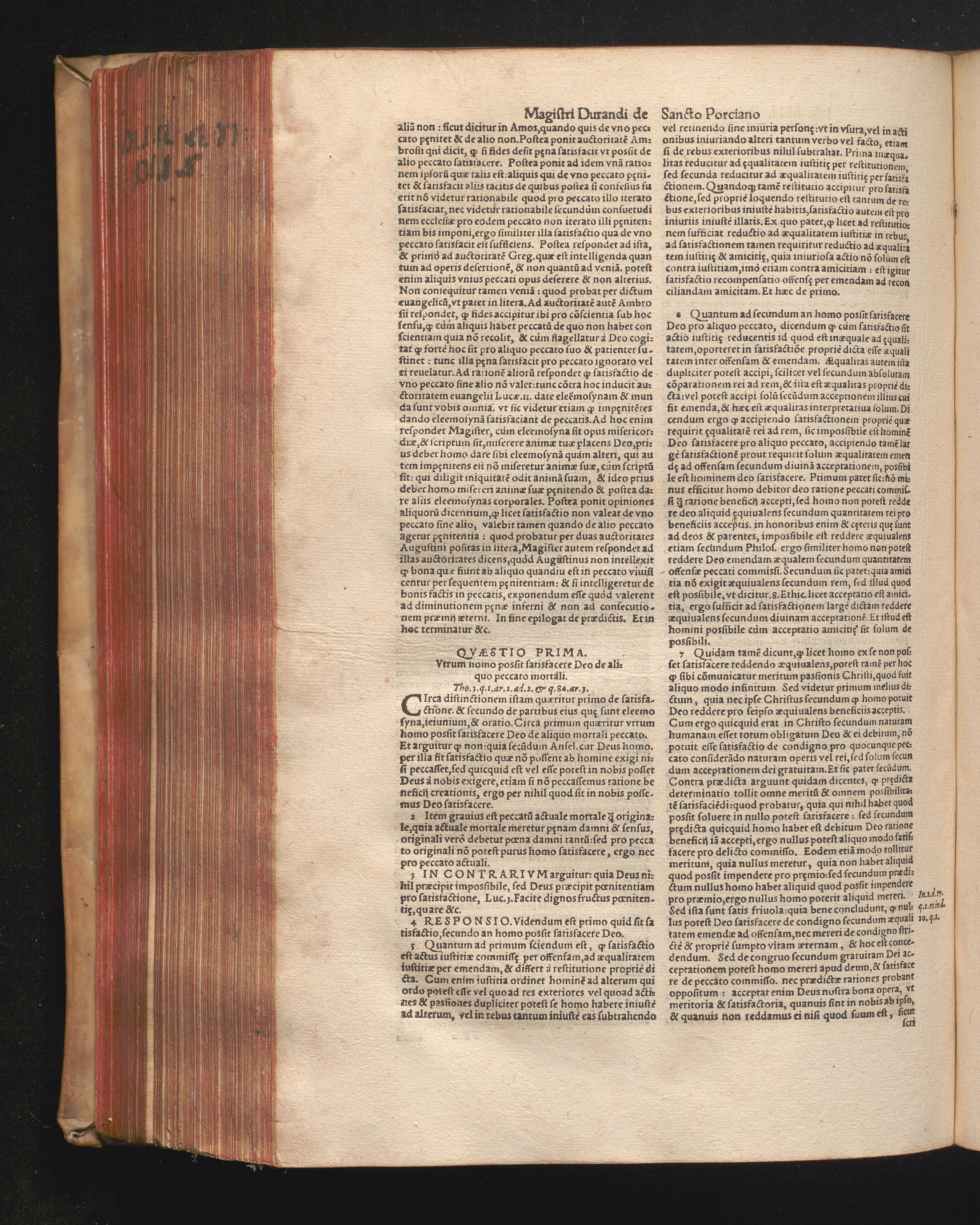 DN. DVRANDI|| à Sancto Portiano, in Senten=||tias Theologicas Petri Lombardi|| Commentariorum libri|| quatuor.|| / Primùm quidem per Nicolaum à Martimbos, eximium Nauarrensis|| Collegij Theologum, nunc verò denuo per alios quosdam|| non inferioris notæ Doctores quanta fieri po-||tuit cura diligentiáque emendati.|| Vná cum Auctoris Vita, & copiosissimo|| decisionum omnium|| Indice.||