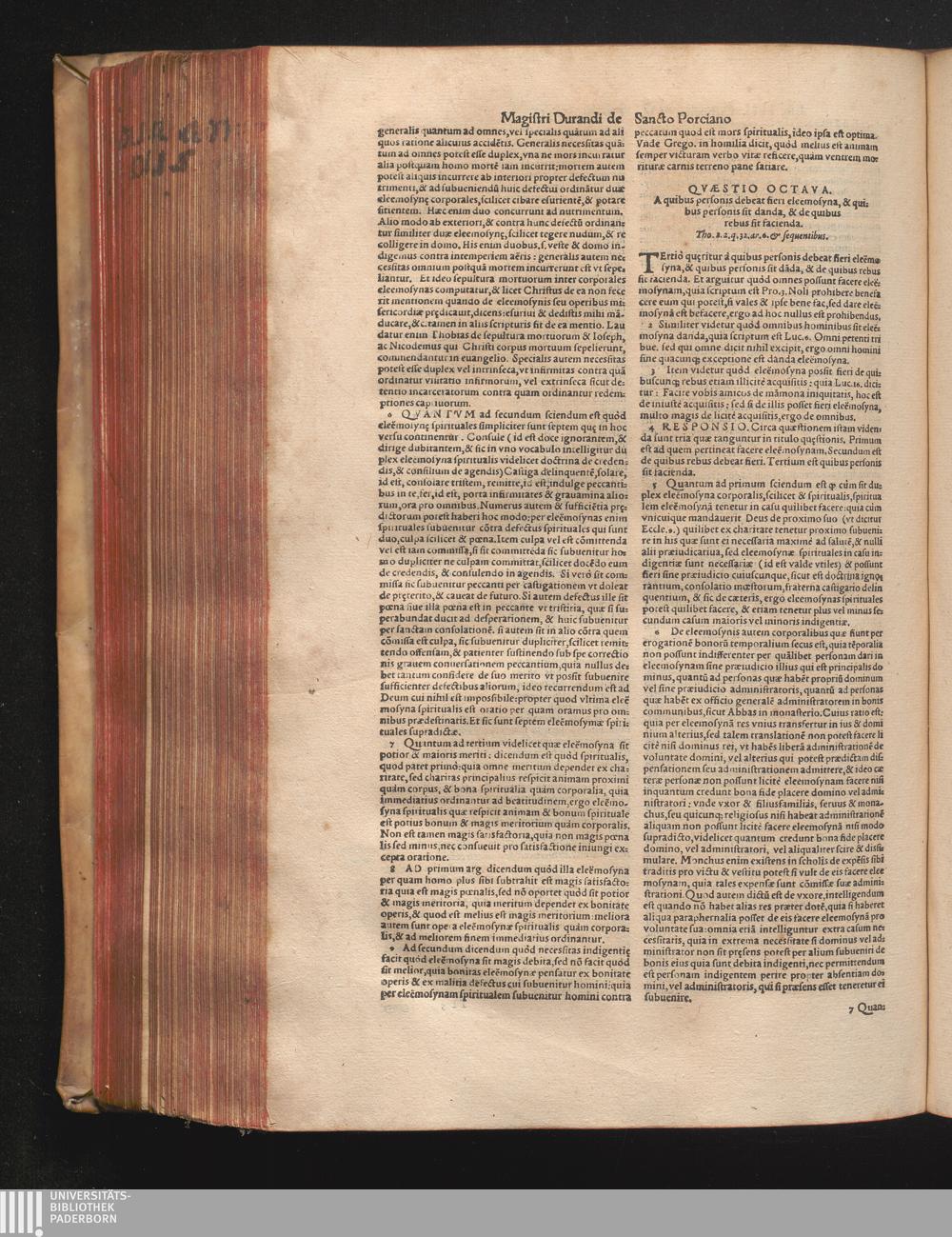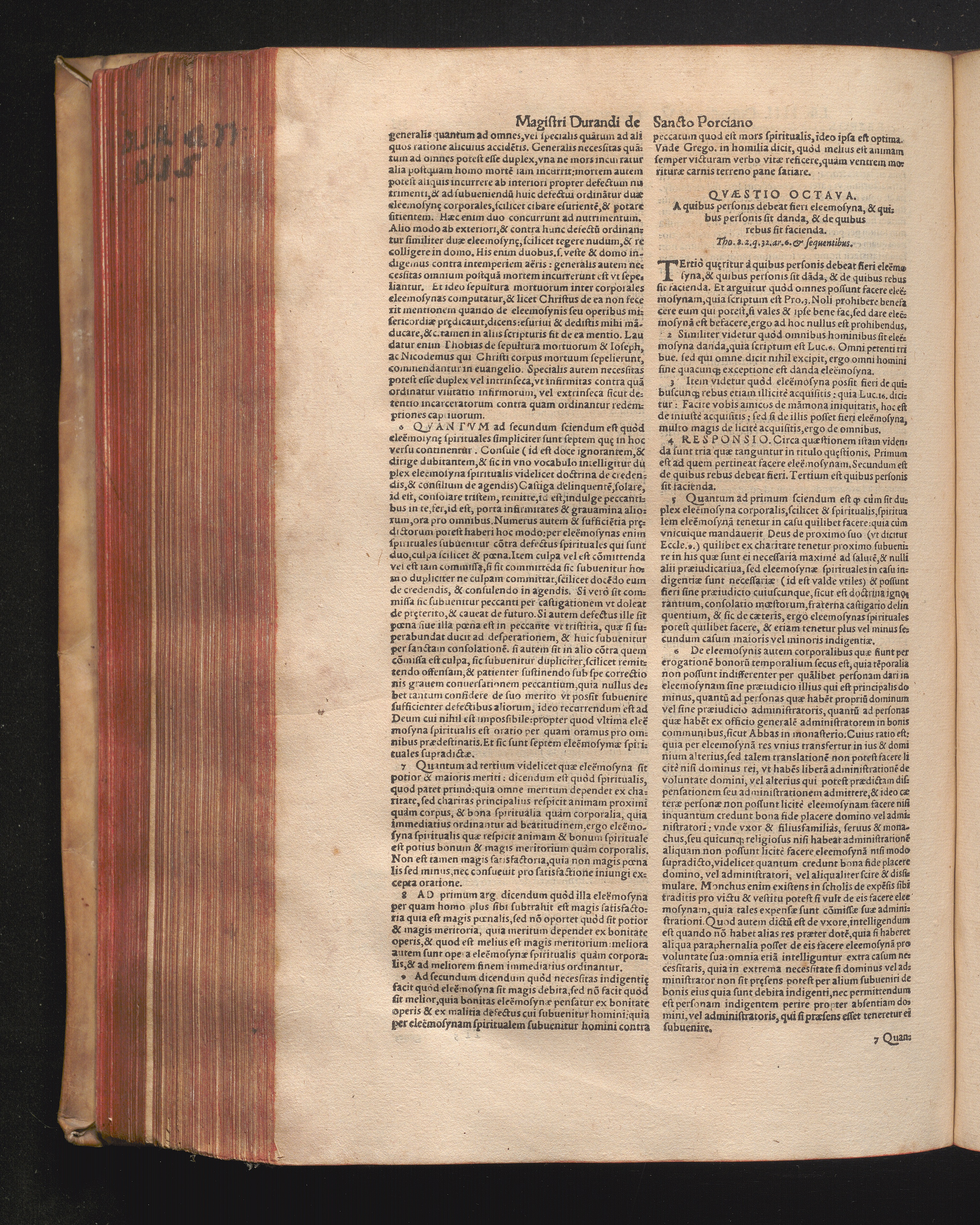 DN. DVRANDI|| à Sancto Portiano, in Senten=||tias Theologicas Petri Lombardi|| Commentariorum libri|| quatuor.|| / Primùm quidem per Nicolaum à Martimbos, eximium Nauarrensis|| Collegij Theologum, nunc verò denuo per alios quosdam|| non inferioris notæ Doctores quanta fieri po-||tuit cura diligentiáque emendati.|| Vná cum Auctoris Vita, & copiosissimo|| decisionum omnium|| Indice.||