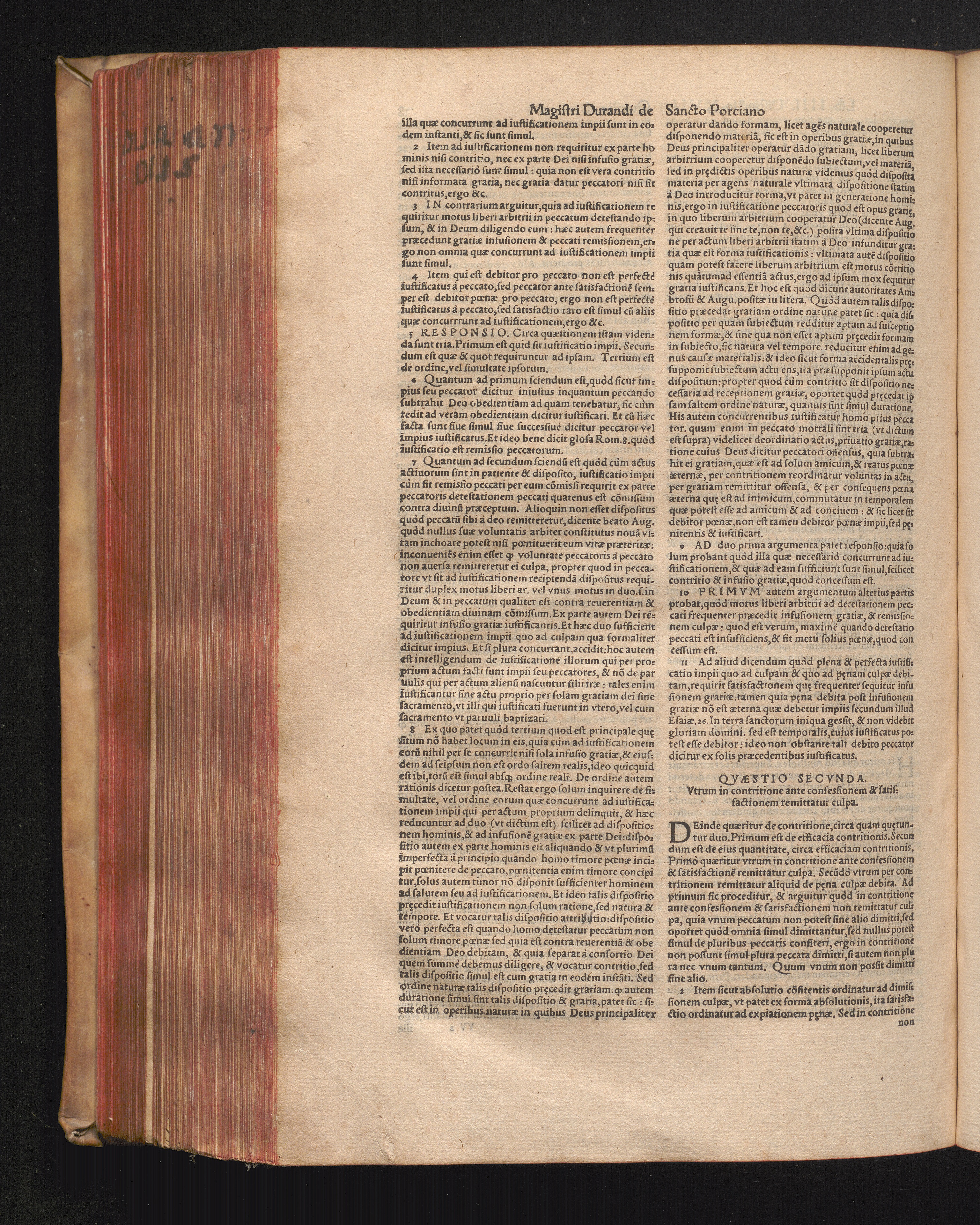 DN. DVRANDI|| à Sancto Portiano, in Senten=||tias Theologicas Petri Lombardi|| Commentariorum libri|| quatuor.|| / Primùm quidem per Nicolaum à Martimbos, eximium Nauarrensis|| Collegij Theologum, nunc verò denuo per alios quosdam|| non inferioris notæ Doctores quanta fieri po-||tuit cura diligentiáque emendati.|| Vná cum Auctoris Vita, & copiosissimo|| decisionum omnium|| Indice.||