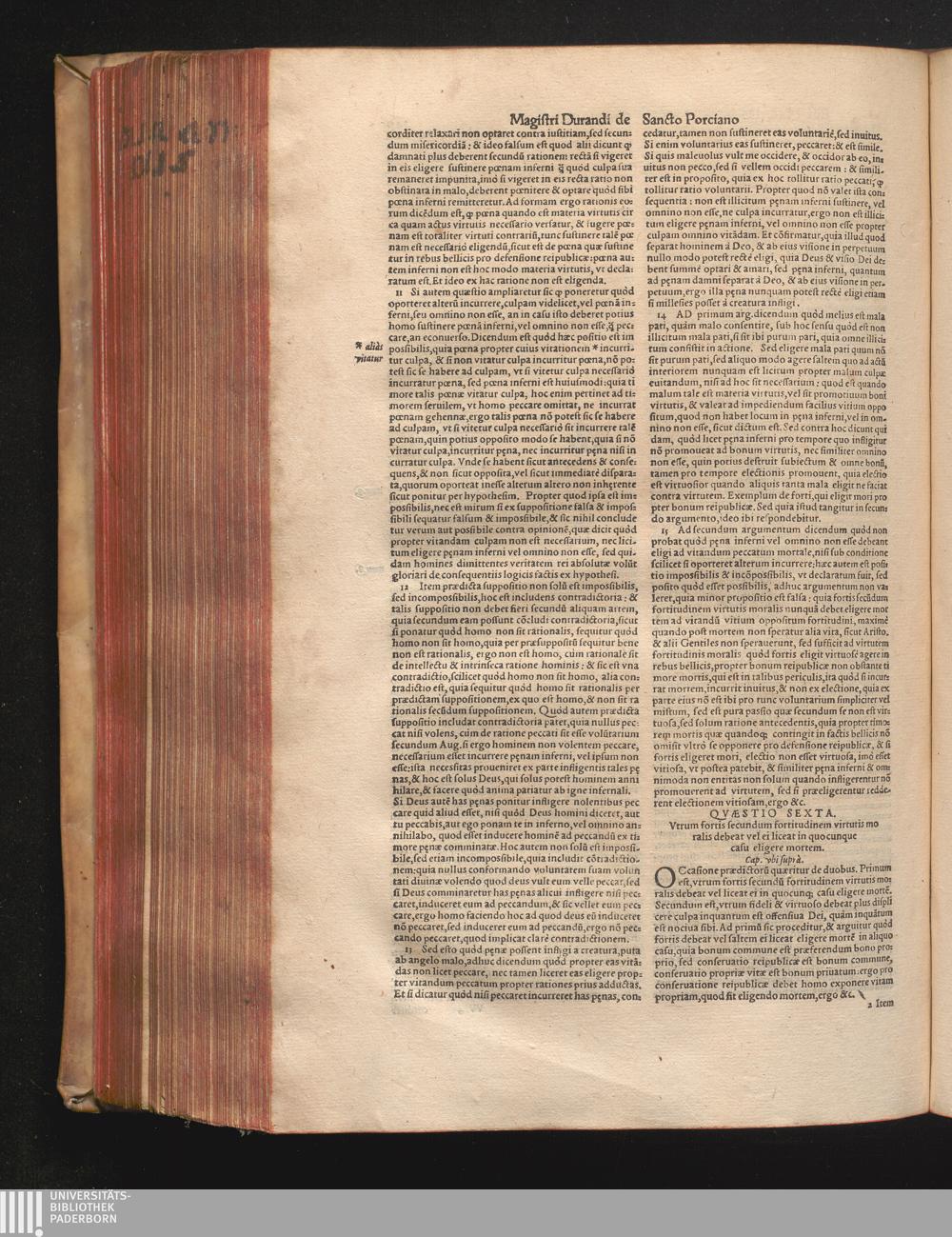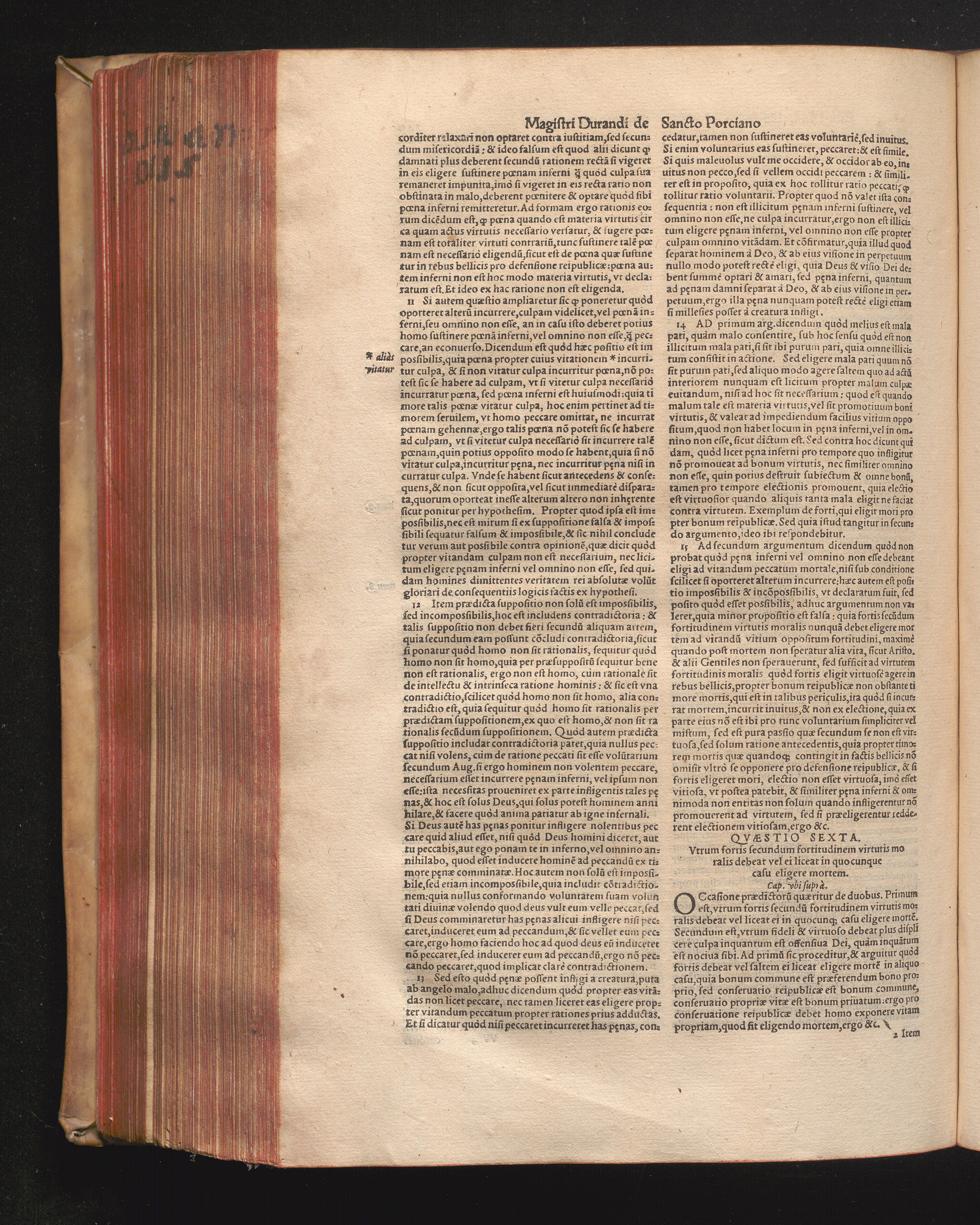 DN. DVRANDI|| à Sancto Portiano, in Senten=||tias Theologicas Petri Lombardi|| Commentariorum libri|| quatuor.|| / Primùm quidem per Nicolaum à Martimbos, eximium Nauarrensis|| Collegij Theologum, nunc verò denuo per alios quosdam|| non inferioris notæ Doctores quanta fieri po-||tuit cura diligentiáque emendati.|| Vná cum Auctoris Vita, & copiosissimo|| decisionum omnium|| Indice.||