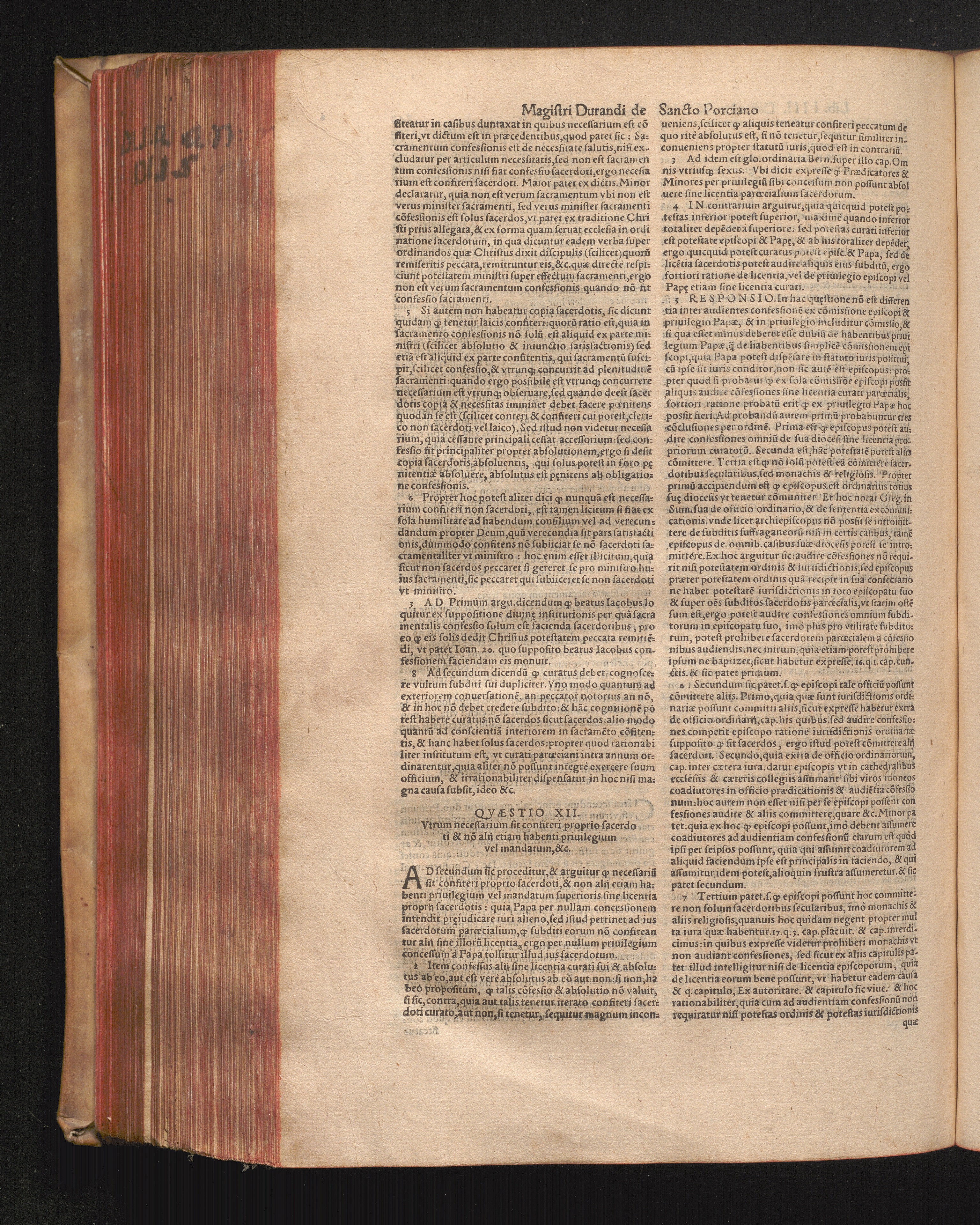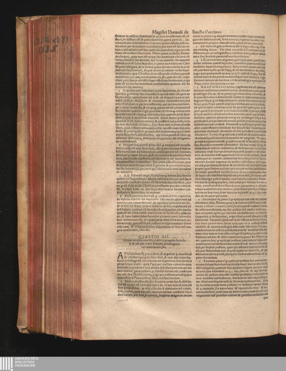 DN. DVRANDI|| à Sancto Portiano, in Senten=||tias Theologicas Petri Lombardi|| Commentariorum libri|| quatuor.|| / Primùm quidem per Nicolaum à Martimbos, eximium Nauarrensis|| Collegij Theologum, nunc verò denuo per alios quosdam|| non inferioris notæ Doctores quanta fieri po-||tuit cura diligentiáque emendati.|| Vná cum Auctoris Vita, & copiosissimo|| decisionum omnium|| Indice.||