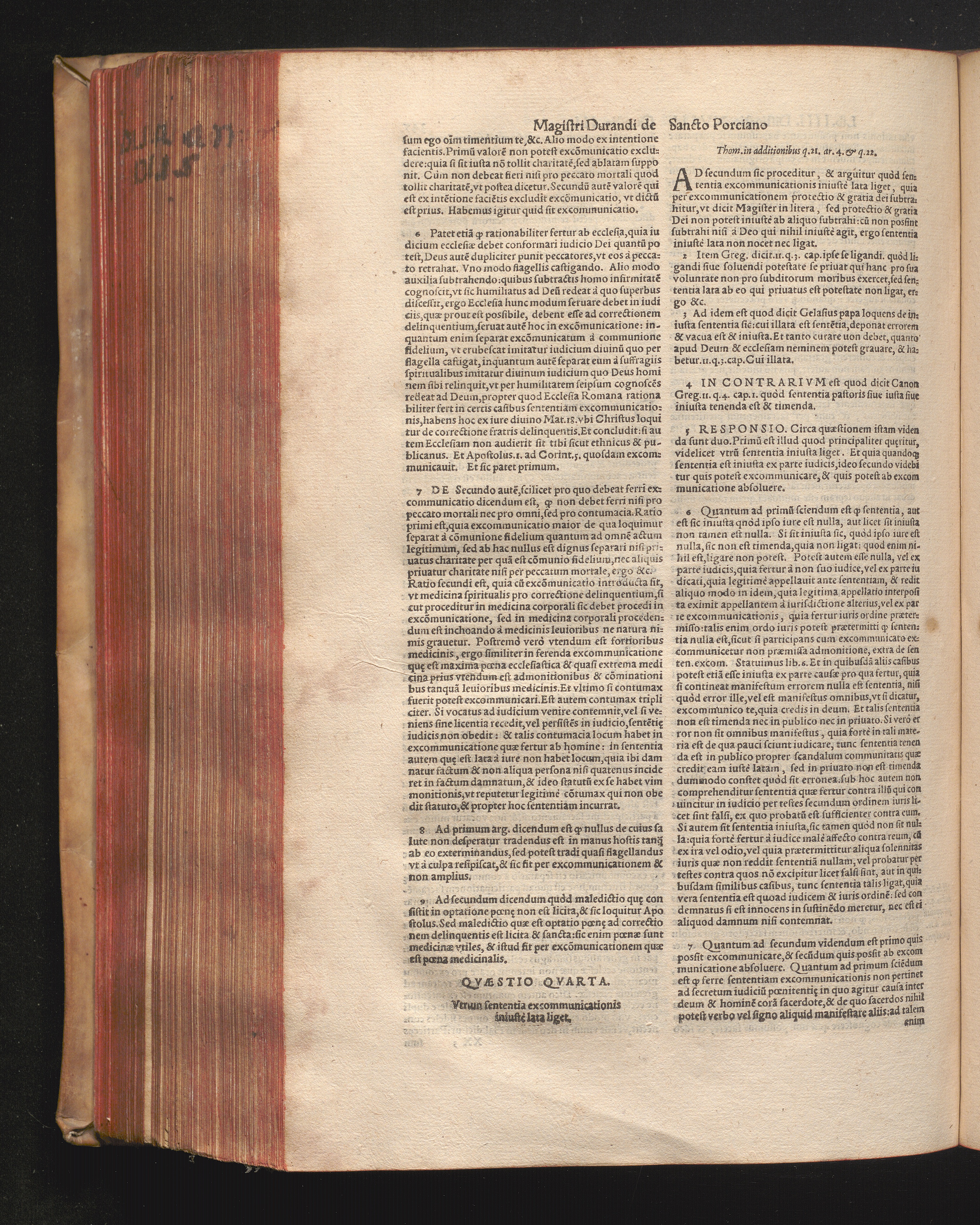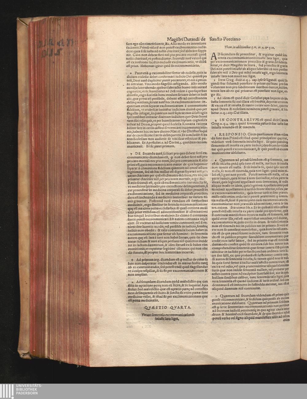 DN. DVRANDI|| à Sancto Portiano, in Senten=||tias Theologicas Petri Lombardi|| Commentariorum libri|| quatuor.|| / Primùm quidem per Nicolaum à Martimbos, eximium Nauarrensis|| Collegij Theologum, nunc verò denuo per alios quosdam|| non inferioris notæ Doctores quanta fieri po-||tuit cura diligentiáque emendati.|| Vná cum Auctoris Vita, & copiosissimo|| decisionum omnium|| Indice.||