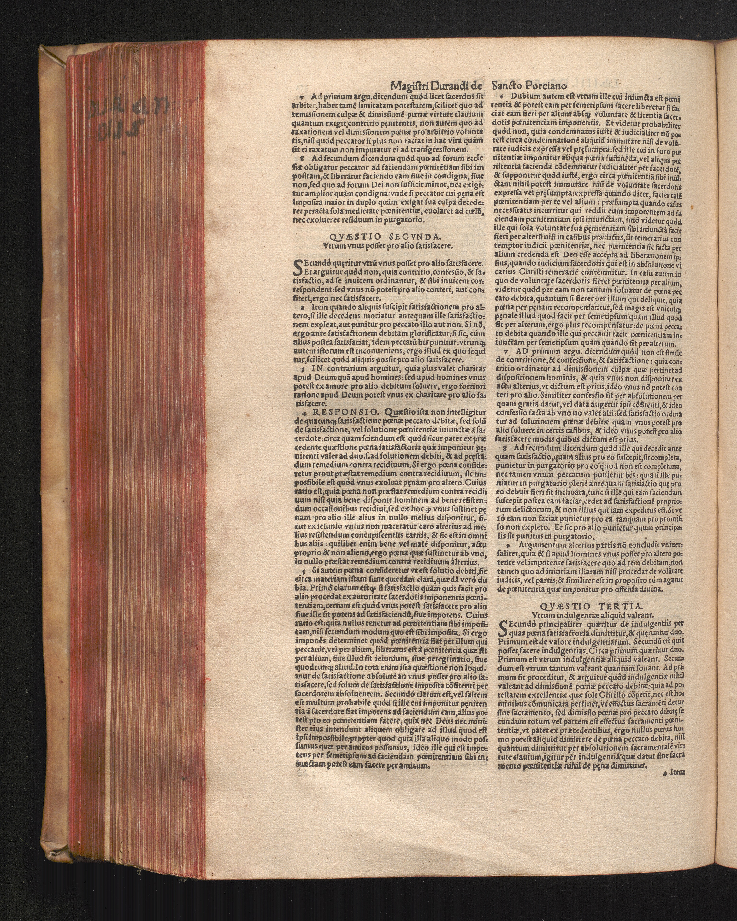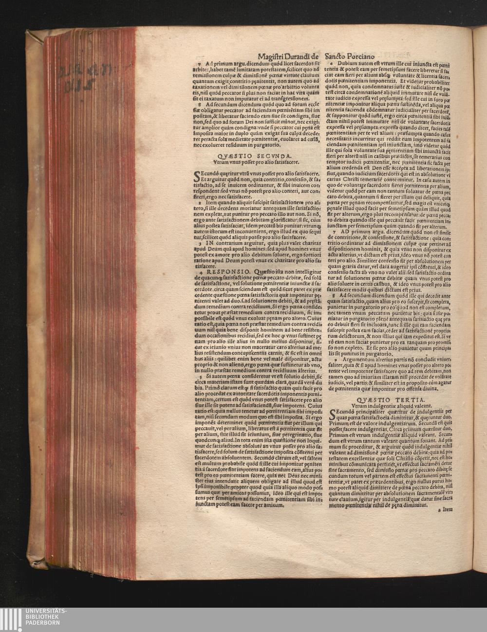DN. DVRANDI|| à Sancto Portiano, in Senten=||tias Theologicas Petri Lombardi|| Commentariorum libri|| quatuor.|| / Primùm quidem per Nicolaum à Martimbos, eximium Nauarrensis|| Collegij Theologum, nunc verò denuo per alios quosdam|| non inferioris notæ Doctores quanta fieri po-||tuit cura diligentiáque emendati.|| Vná cum Auctoris Vita, & copiosissimo|| decisionum omnium|| Indice.||