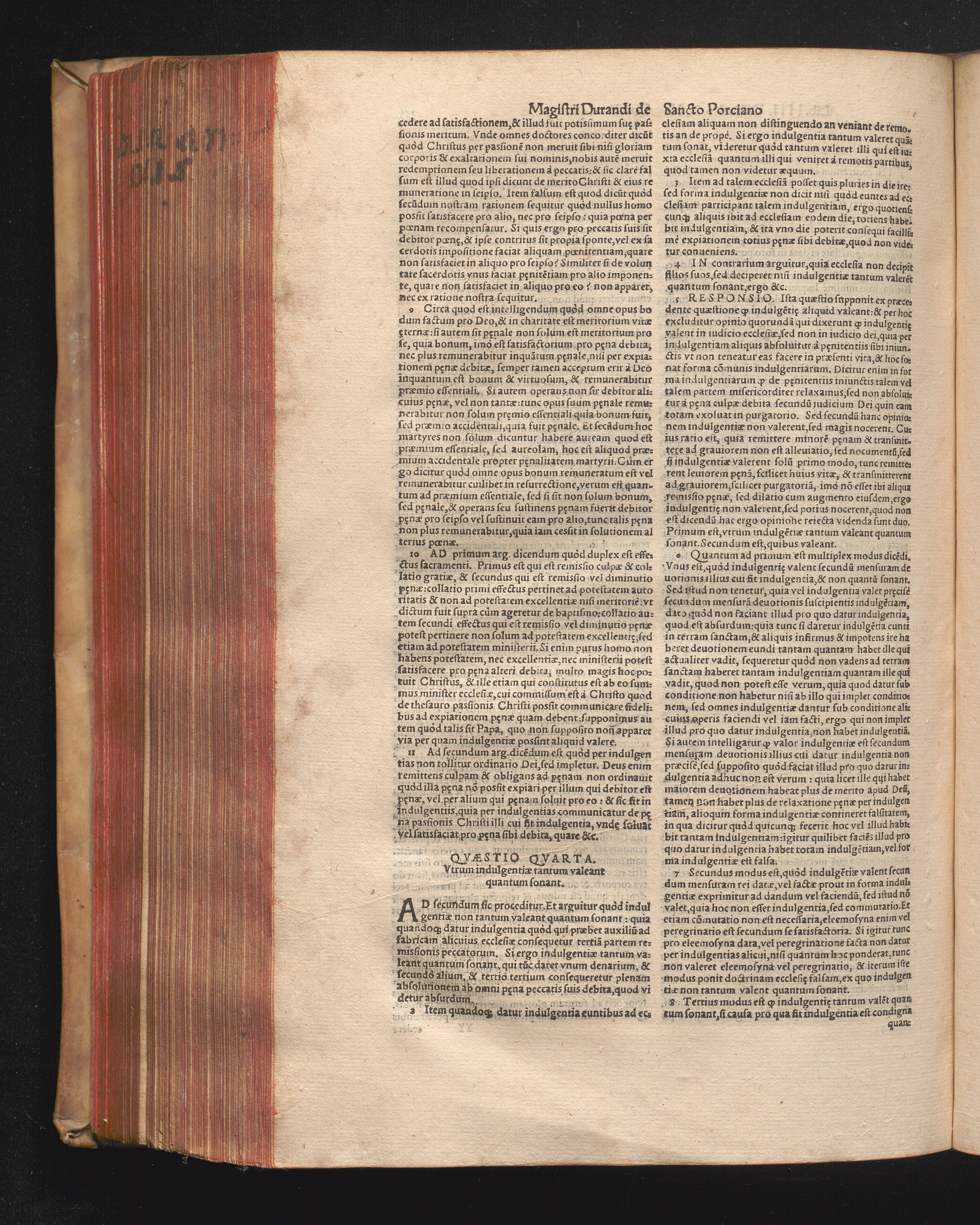 DN. DVRANDI|| à Sancto Portiano, in Senten=||tias Theologicas Petri Lombardi|| Commentariorum libri|| quatuor.|| / Primùm quidem per Nicolaum à Martimbos, eximium Nauarrensis|| Collegij Theologum, nunc verò denuo per alios quosdam|| non inferioris notæ Doctores quanta fieri po-||tuit cura diligentiáque emendati.|| Vná cum Auctoris Vita, & copiosissimo|| decisionum omnium|| Indice.||