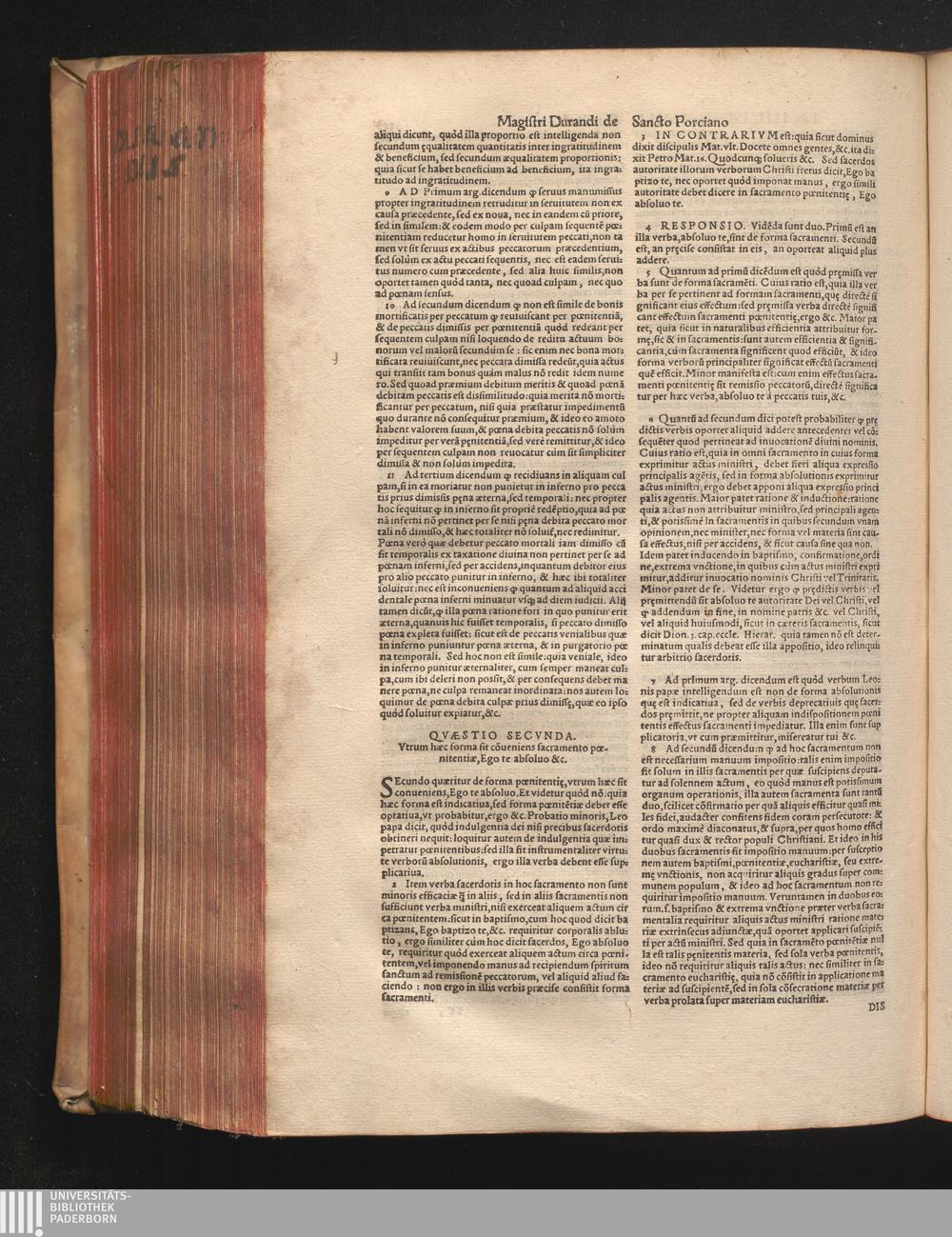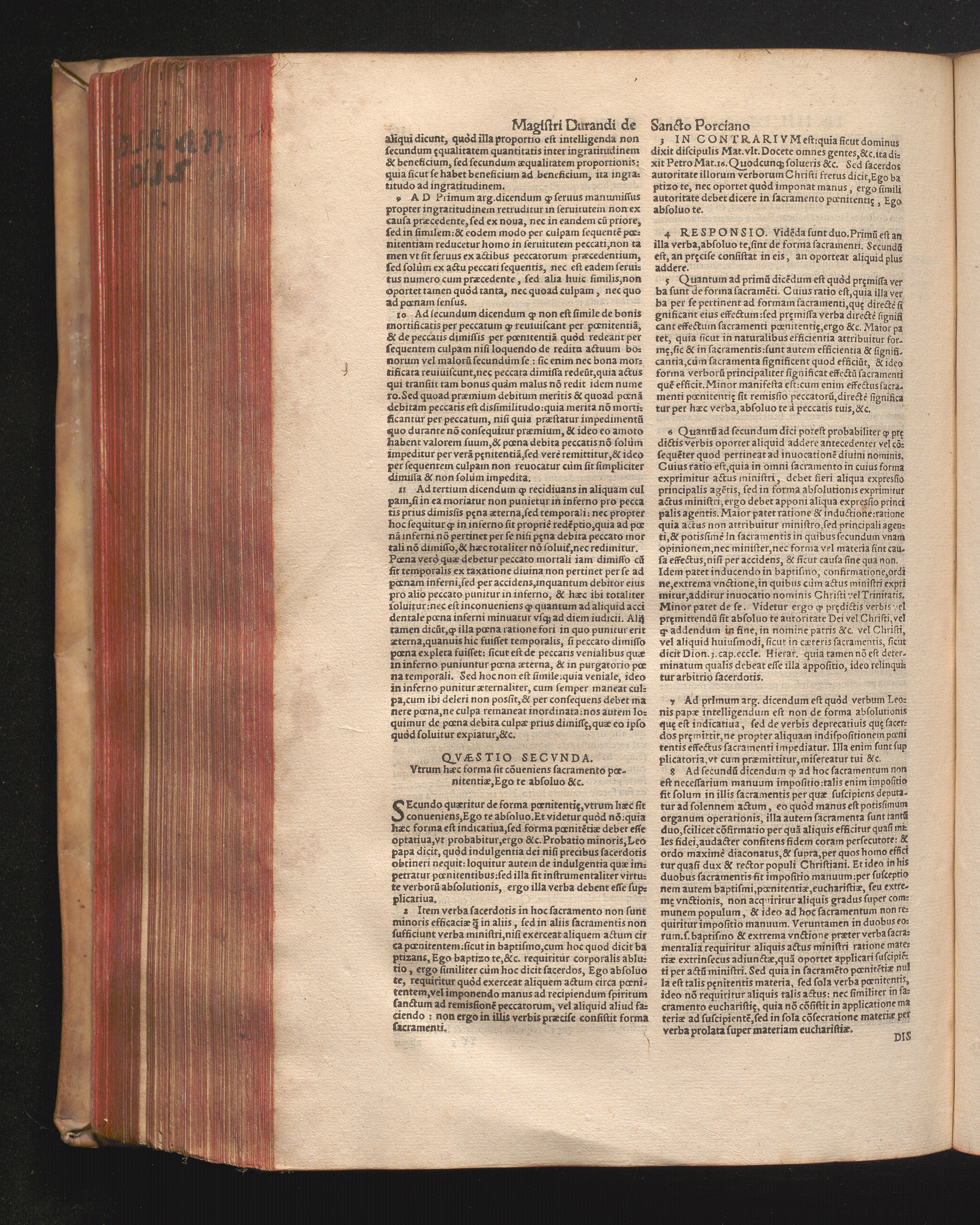 DN. DVRANDI|| à Sancto Portiano, in Senten=||tias Theologicas Petri Lombardi|| Commentariorum libri|| quatuor.|| / Primùm quidem per Nicolaum à Martimbos, eximium Nauarrensis|| Collegij Theologum, nunc verò denuo per alios quosdam|| non inferioris notæ Doctores quanta fieri po-||tuit cura diligentiáque emendati.|| Vná cum Auctoris Vita, & copiosissimo|| decisionum omnium|| Indice.||