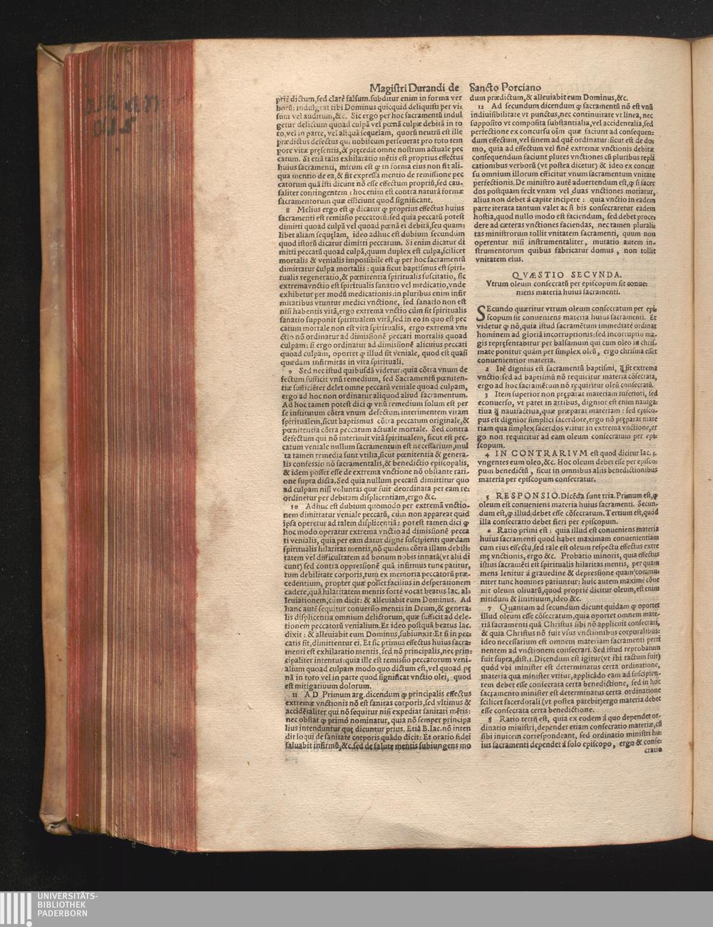 DN. DVRANDI|| à Sancto Portiano, in Senten=||tias Theologicas Petri Lombardi|| Commentariorum libri|| quatuor.|| / Primùm quidem per Nicolaum à Martimbos, eximium Nauarrensis|| Collegij Theologum, nunc verò denuo per alios quosdam|| non inferioris notæ Doctores quanta fieri po-||tuit cura diligentiáque emendati.|| Vná cum Auctoris Vita, & copiosissimo|| decisionum omnium|| Indice.||
