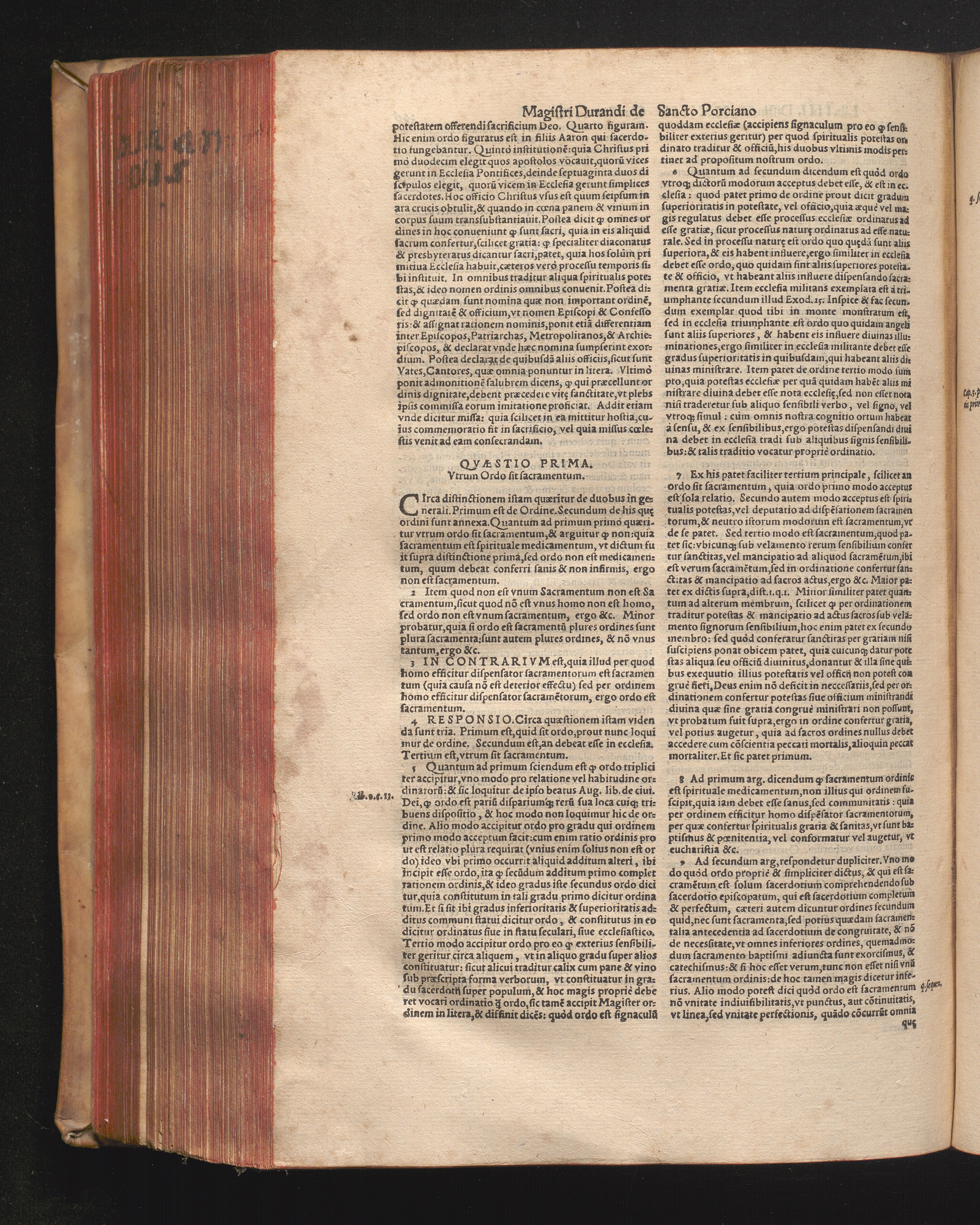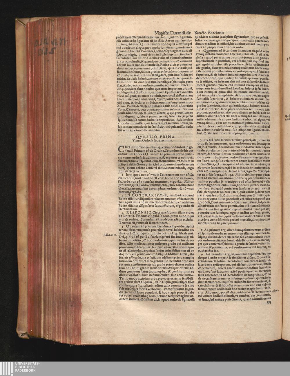 DN. DVRANDI|| à Sancto Portiano, in Senten=||tias Theologicas Petri Lombardi|| Commentariorum libri|| quatuor.|| / Primùm quidem per Nicolaum à Martimbos, eximium Nauarrensis|| Collegij Theologum, nunc verò denuo per alios quosdam|| non inferioris notæ Doctores quanta fieri po-||tuit cura diligentiáque emendati.|| Vná cum Auctoris Vita, & copiosissimo|| decisionum omnium|| Indice.||
