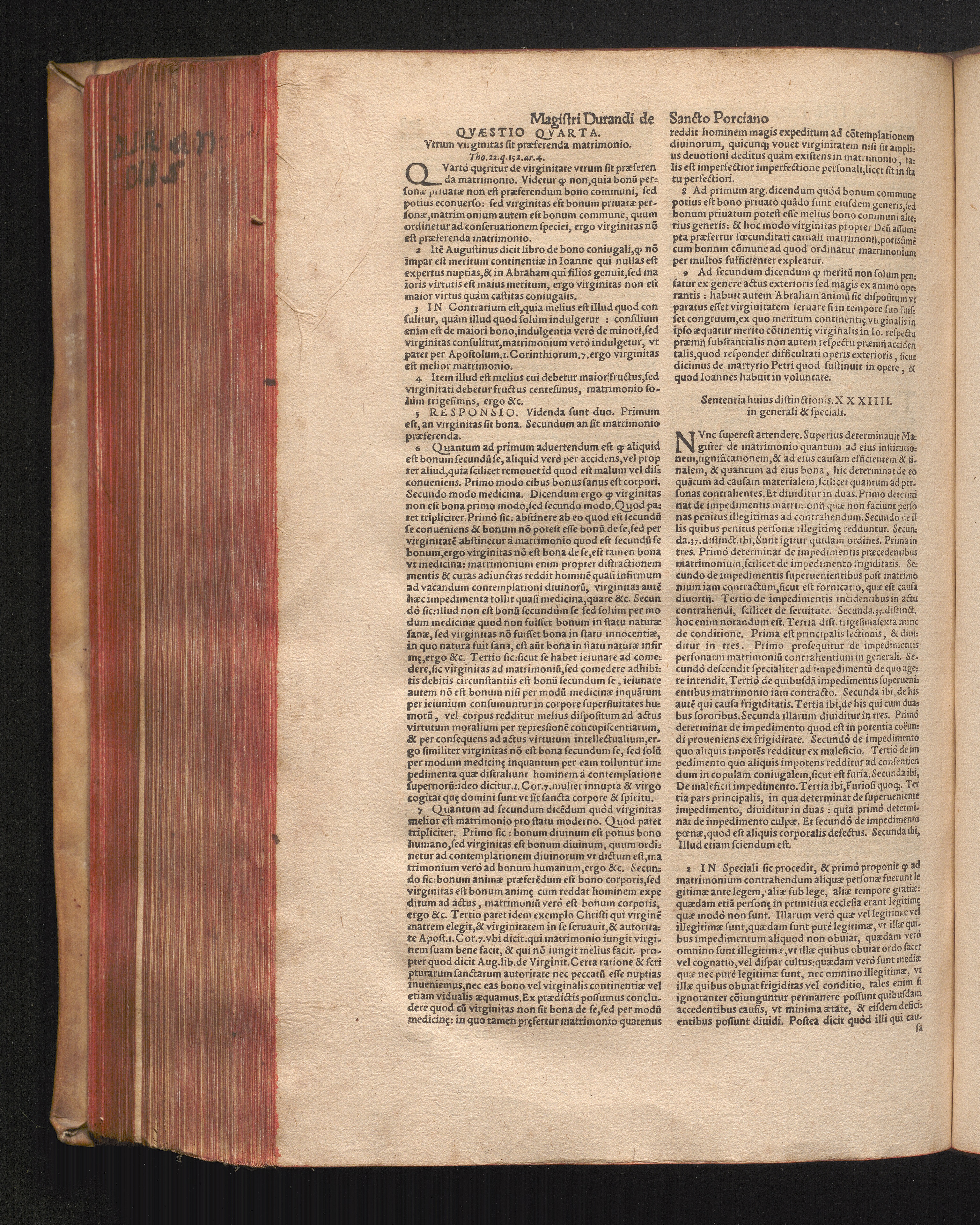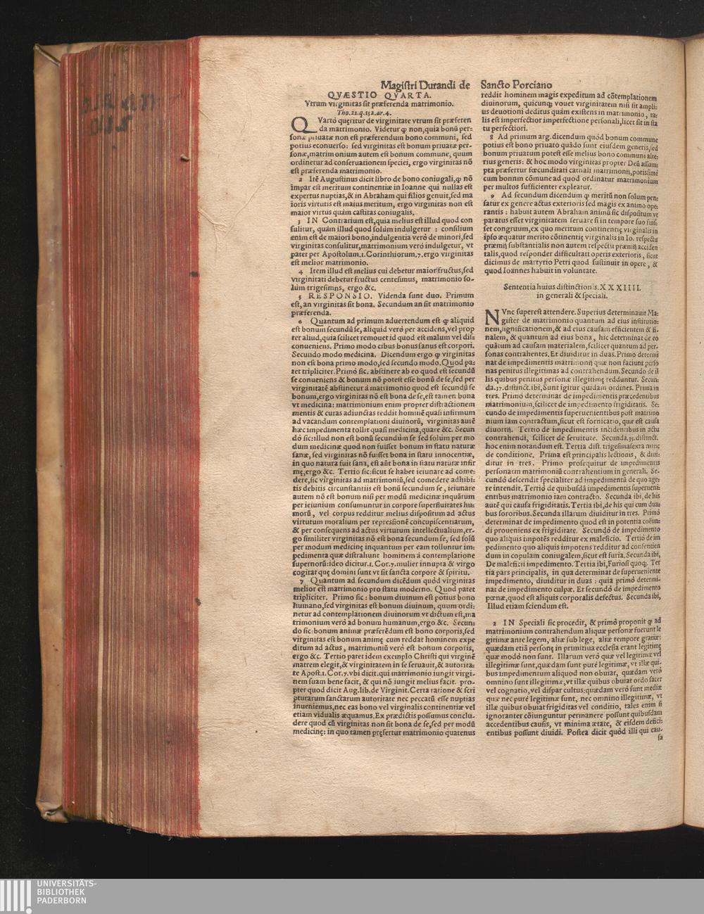 DN. DVRANDI|| à Sancto Portiano, in Senten=||tias Theologicas Petri Lombardi|| Commentariorum libri|| quatuor.|| / Primùm quidem per Nicolaum à Martimbos, eximium Nauarrensis|| Collegij Theologum, nunc verò denuo per alios quosdam|| non inferioris notæ Doctores quanta fieri po-||tuit cura diligentiáque emendati.|| Vná cum Auctoris Vita, & copiosissimo|| decisionum omnium|| Indice.||