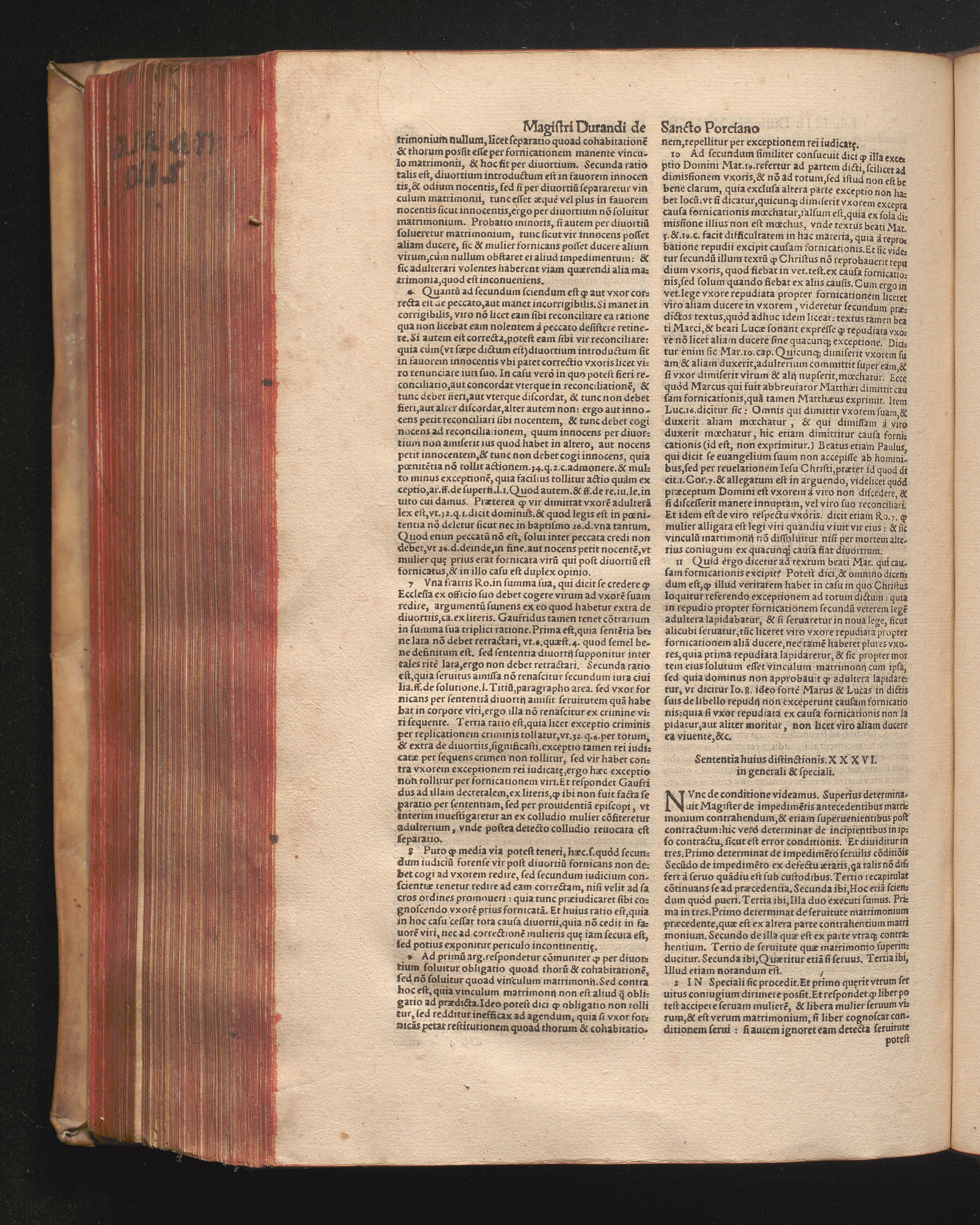 DN. DVRANDI|| à Sancto Portiano, in Senten=||tias Theologicas Petri Lombardi|| Commentariorum libri|| quatuor.|| / Primùm quidem per Nicolaum à Martimbos, eximium Nauarrensis|| Collegij Theologum, nunc verò denuo per alios quosdam|| non inferioris notæ Doctores quanta fieri po-||tuit cura diligentiáque emendati.|| Vná cum Auctoris Vita, & copiosissimo|| decisionum omnium|| Indice.||