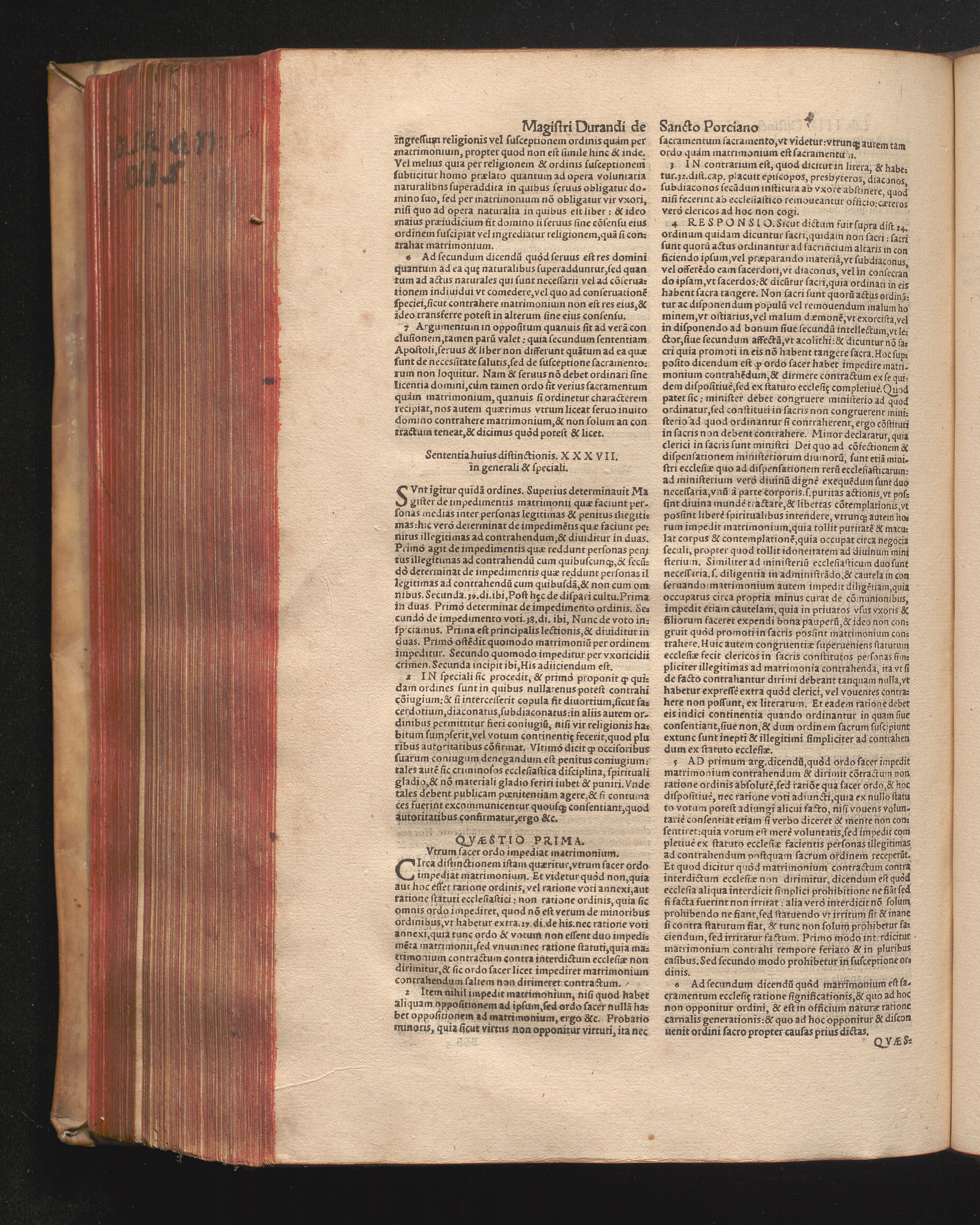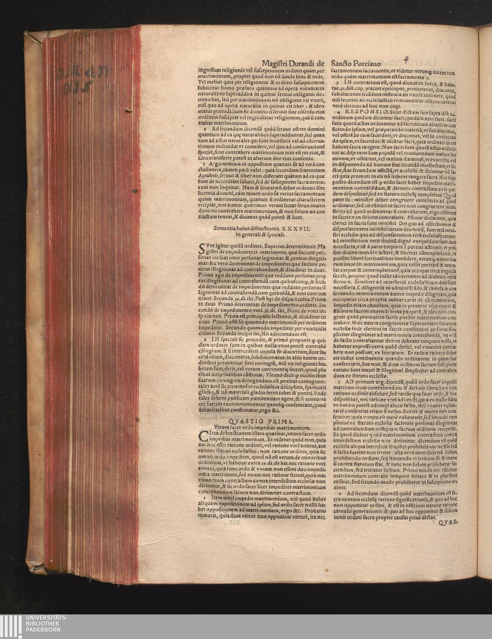DN. DVRANDI|| à Sancto Portiano, in Senten=||tias Theologicas Petri Lombardi|| Commentariorum libri|| quatuor.|| / Primùm quidem per Nicolaum à Martimbos, eximium Nauarrensis|| Collegij Theologum, nunc verò denuo per alios quosdam|| non inferioris notæ Doctores quanta fieri po-||tuit cura diligentiáque emendati.|| Vná cum Auctoris Vita, & copiosissimo|| decisionum omnium|| Indice.||