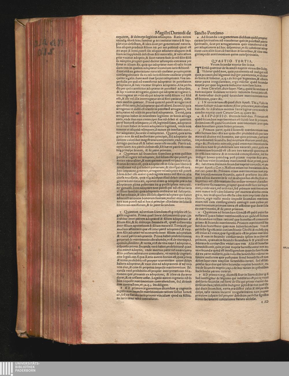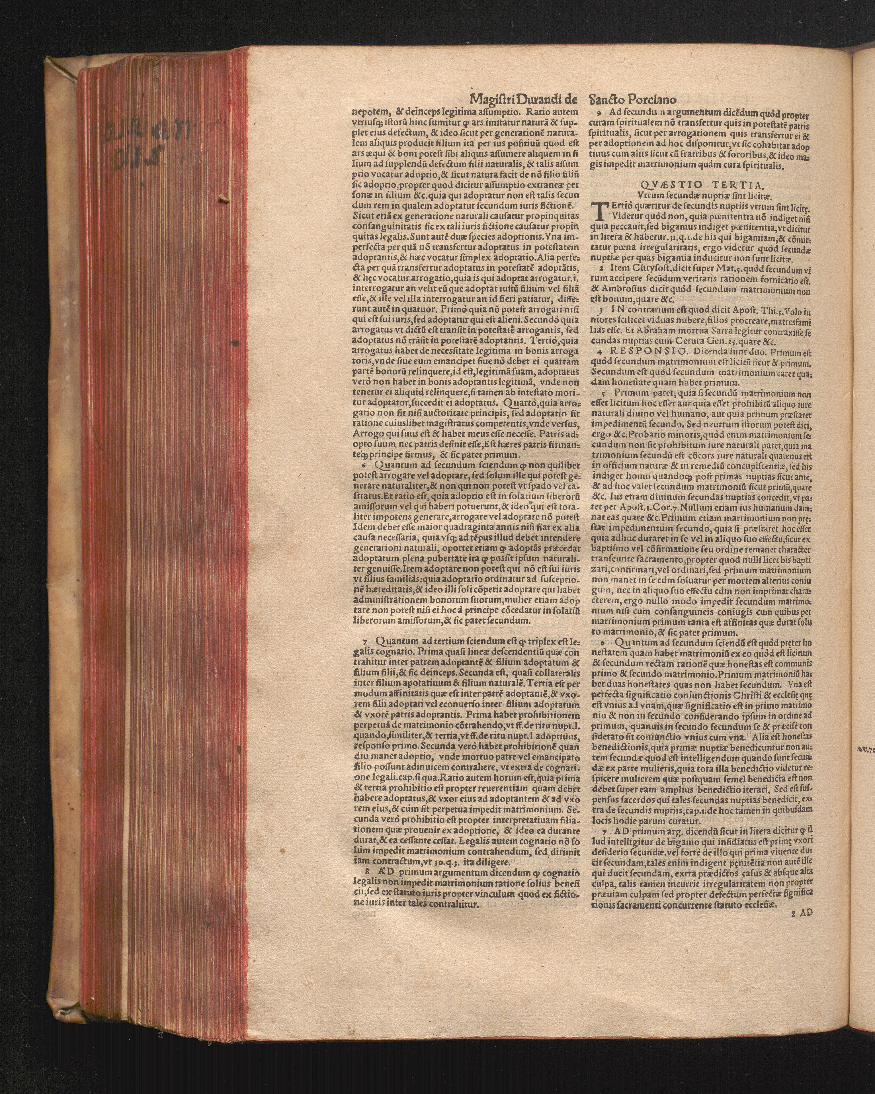 DN. DVRANDI|| à Sancto Portiano, in Senten=||tias Theologicas Petri Lombardi|| Commentariorum libri|| quatuor.|| / Primùm quidem per Nicolaum à Martimbos, eximium Nauarrensis|| Collegij Theologum, nunc verò denuo per alios quosdam|| non inferioris notæ Doctores quanta fieri po-||tuit cura diligentiáque emendati.|| Vná cum Auctoris Vita, & copiosissimo|| decisionum omnium|| Indice.||